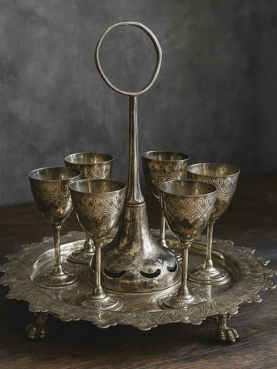 Погрузитесь в мир утонченного стиля и безупречного вкуса с нашим уникальным набором пашотниц для яиц на роскошной подставке. Этот круэт, покрытый благородным серебрением, станет не только функциональным аксессуаром для Вашего стола, но и настоящим произведением искусства. Созданный для тех, кто ценит качество в каждой детали, этот набор наполнит ваши утренние завтраки вдохновением и элегантностью.Каждая пашотница в наборе мастерски изготовлена из высококачественных материалов и покрыта слоем сияющего серебрения. Изящный узор, украшающий поверхность, делает эти небольшие чаши настоящими произведениями искусства. Пашотницы идеально подходят для подачи мягких, варёных яиц, сохраняя их тепло и улучшая эстетику вашей сервировки. Эргономичный дизайн позволяет легко и удобно разместить яйцо, гарантируя комфорт при использовании.Подставка, на которой размещены пашотницы, также не лишена внимания к деталям. Изящные узоры, изысканный рельеф и мелкие акценты создают ощущение роскоши и утончённости. Подставка оснащена удобной ручкой, что облегчает перенос всего набора. Её массивные ножки обеспечивают надёжную устойчивость, а общая композиция делает её центром притяжения любого стола.Этот круэт подходит не только для ежедневного использования, но и станет великолепным украшением праздничного стола. Тематика изысканной сервировки подчеркнёт значимость события и добавит волшебства в любую трапезу с семьёй или друзьями.Подчеркните свою индивидуальность и утонченный вкус, сделайте завтрак особенным моментом в начале каждодневного пути. Набор пашотниц с подставкой — это идеальный подарок для ценителей роскоши и изысканности. Преподнесите его как необычный и запоминающийся презент на новоселье, юбилей или другое важное событие.Сделайте свой дом отражением вашей изысканности и безупречного чувства стиля с нашим чудесным круэтом для яиц, который станет символом гостеприимства и любви к прекрасному.