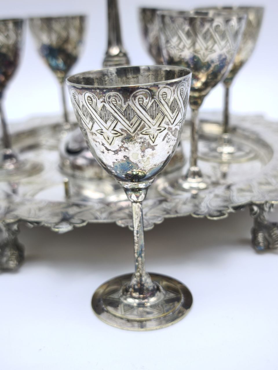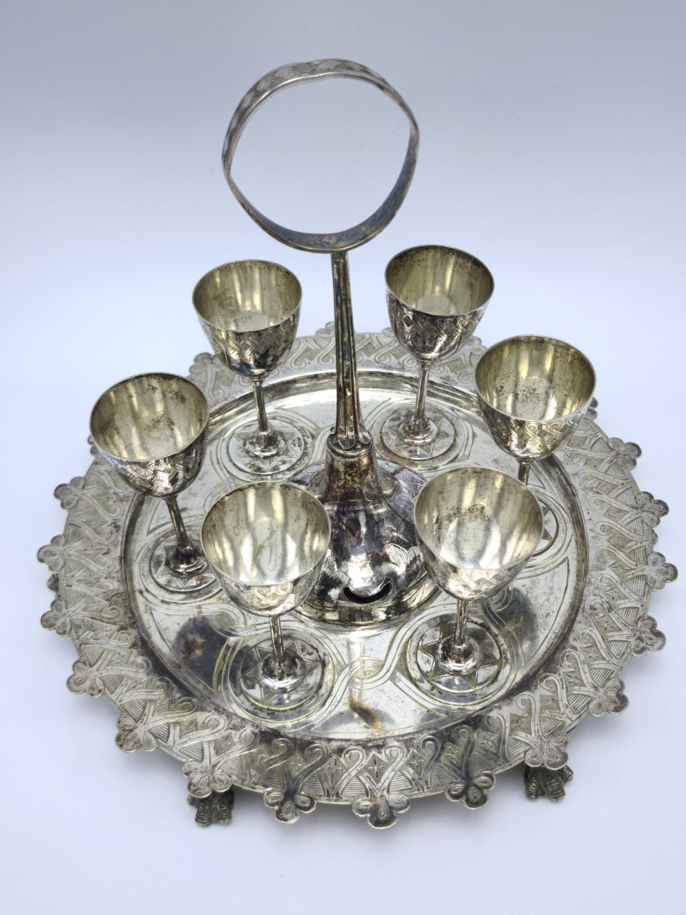 Серебряный круэт для яиц с наборами пашотниц на изысканной подставке