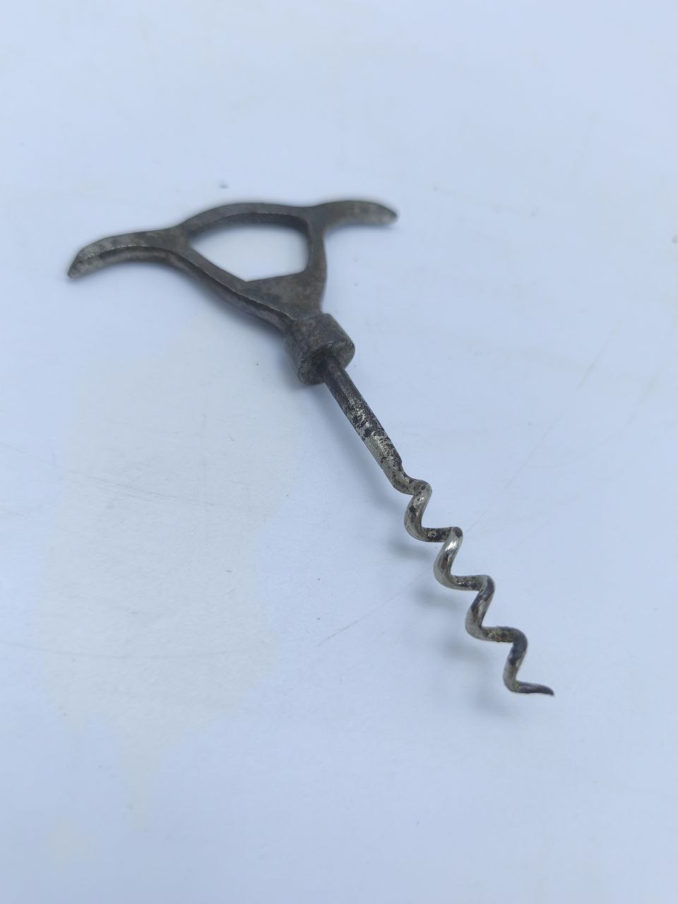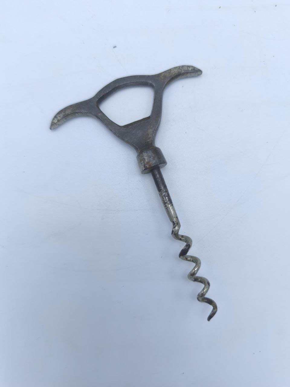 Этот старинный штопор хранит дыхание середины XX века — времени, когда вино открывали неторопливо, с уважением к ритуалу. Металлическая рукоять, изящно изогнутая, будто продолжает линии человеческой руки. Лёгкая патина придаёт ему особый шарм, превращая утилитарную вещь в артефакт. Предмет для тех, кто умеет ценить не только вкус вина, но и вкус истории.