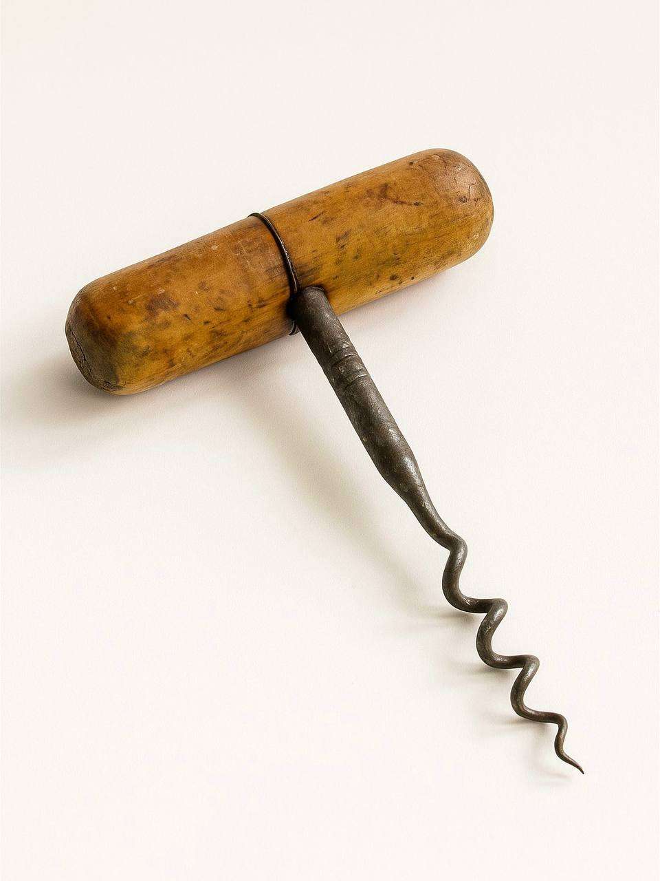Этот антикварный штопор из дерева и металла — истинное воплощение простоты и утонченности прошлого. Его дизайн отличается лаконичностью, а материалы — натуральное дерево и металл — наполняют предмет теплом и долговечностью. Это не просто винный аксессуар, а элемент истории, который способен стать частью вашей коллекции или добавить нотку винтажного шарма вашему интерьеру.Деревянная ручка штопора имеет гладкую, мягко обработанную поверхность с естественной текстурой, которая сохраняет следы времени. Этот штрих придает аксессуару индивидуальность и напоминает об уходящих временах, когда вещи создавались с любовью и вниманием к деталям. Металлическая часть штопора — спираль — обладает естественной патиной, которая появилась естественно за годы его существования. Эта деталь делает каждый штопор уникальным и подчеркивает его антикварный статус.Штопор выполнен в классическом дизайне, который идеально подходит для ценителей вина, чтобы насладиться изысканностью процесса открывания бутылки. Уникальная форма ручки обеспечивает комфортный захват, делая использование простым и удобным. Металлическая спираль проникает в пробку легко и быстро, а её мощная конструкция гарантирует долговечность аксессуара.Этот штопор идеально впишется в интерьер, оформленный в деревенском стиле, ретро или классическом стиле. Он может стать фантастическим дополнением вашей коллекции антикварных аксессуаров и показать вашим гостям утонченный вкус владельца. Также предмет прекрасно подойдет для тематической вечеринки, посвященной виноделию и традициям.Подарите себе удовольствие прикоснуться к частичке прошлого и добавьте к своей жизни этот функциональный и эстетичный аксессуар, который будет радовать вас не только своим качеством, но и историческим шармом. Такой штопор также станет уникальным подарком для коллекционера, гурмана или ценителя простой, но элегантной красоты.