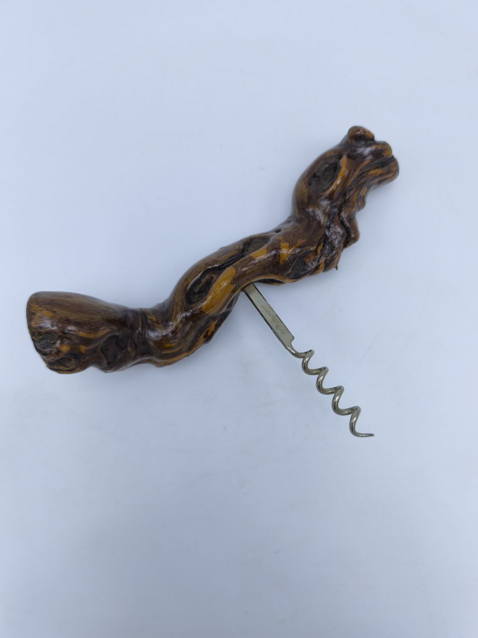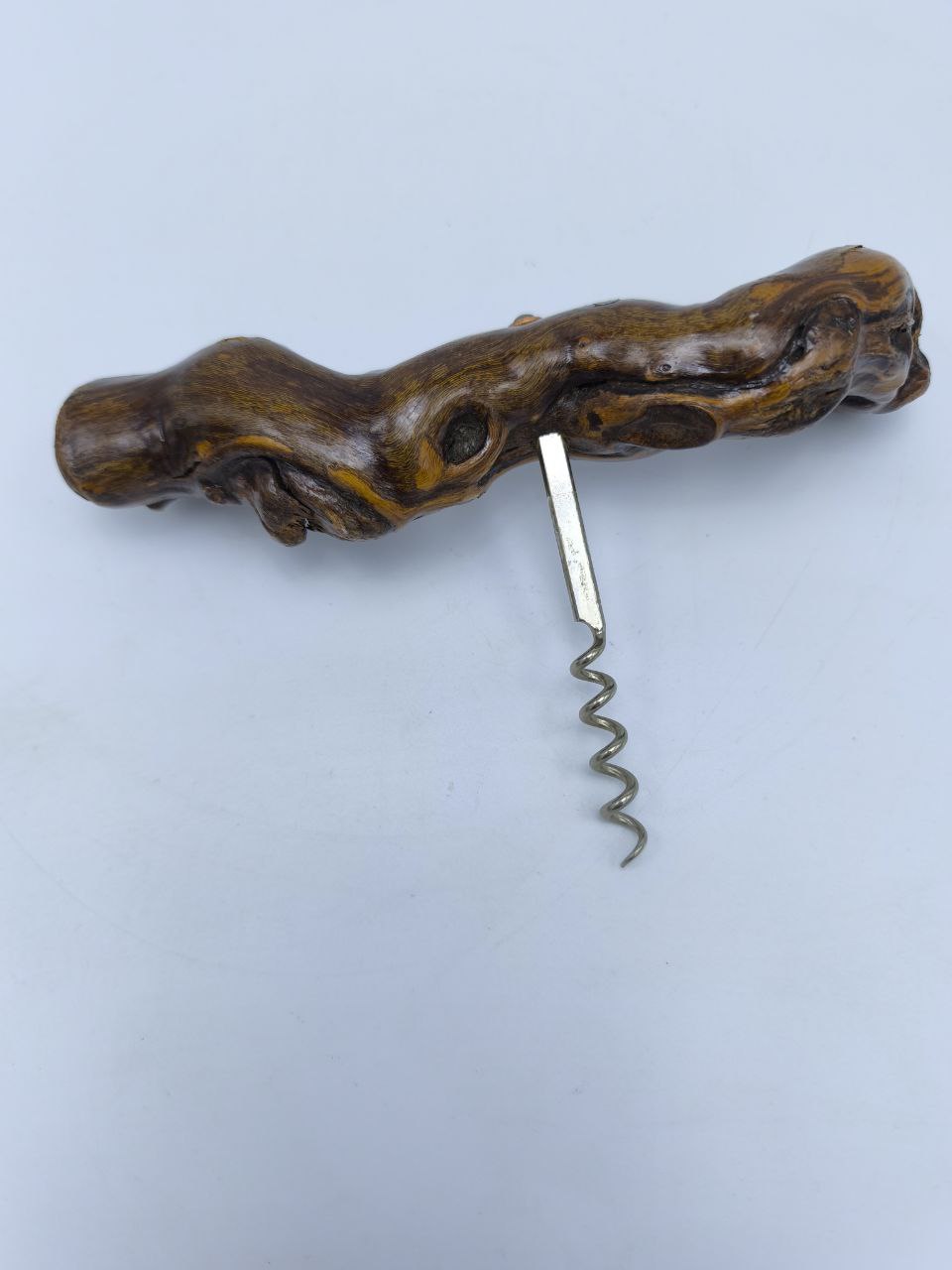 Редкий винтажный штопор с ручкой из цельного древесного корня — не просто утилитарный предмет, а настоящий арт-объект. Его уникальная форма и природная текстура подчеркивают ручную работу и органичную эстетику. Такой аксессуар станет изысканным дополнением к интерьеру винного погреба или коллекции винтажной утвари. Прекрасный подарок для знатоков вина и антикваров.