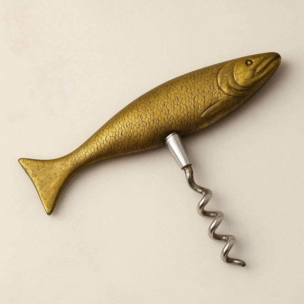 Встречайте штопор, который сам по себе уже история. Латунная «рыбка» с изящными чешуйками и плавными линиями родилась в Германии 1950-х годов — эпохи стиля и практичности. Этот аксессуар превращает открытие бутылки вина в маленький ритуал, а в интерьере становится выразительным акцентом. Подчеркните вкус к редким деталям — владейте предметом с душой.
