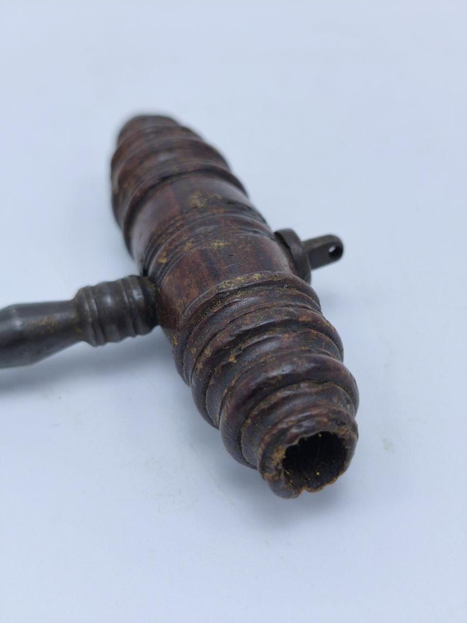 Погрузитесь в атмосферу прошлого века с этим старинным штопором. Его выразительный винтажный дизайн выгодно отличает его от современных аналогов. Деревянная ручка выполнена из качественного натурального материала, обработанного особым образом. Рельефные детали, украшающие рукоятку, не только придают дополнительную эстетику, но и делают использование инструмента невероятно удобным. Такой дизайн обеспечивает идеальный захват — штопор не выскользнет из рук и позволит быстро справиться с любой пробкой.Металлическая часть штопора — это настоящее произведение искусства, созданное для долговечной службы. Уникальная спиральная конструкция позволяет без труда извлекать пробки из вина, не повреждая материал и не оставляя крошек. Металл имеет привлекательную патину, которая подчеркивает его антикварный статус. Благодаря качеству сплава этот штопор все еще остается функциональным инструментом, готовым служить своему владельцу многие годы.Этот штопор станет настоящей находкой не только для коллекционеров, но и для тех, кто стремится окружить себя вещами с историей. Он станет изысканной деталью интерьера, будь то кухня, домашний бар или винный погреб. Он также может стать оригинальным подарком для ценителей вина и знатоков антиквариата. Каждая деталь этого изделия несет в себе память прошлых эпох, что делает его по-настоящему уникальным.