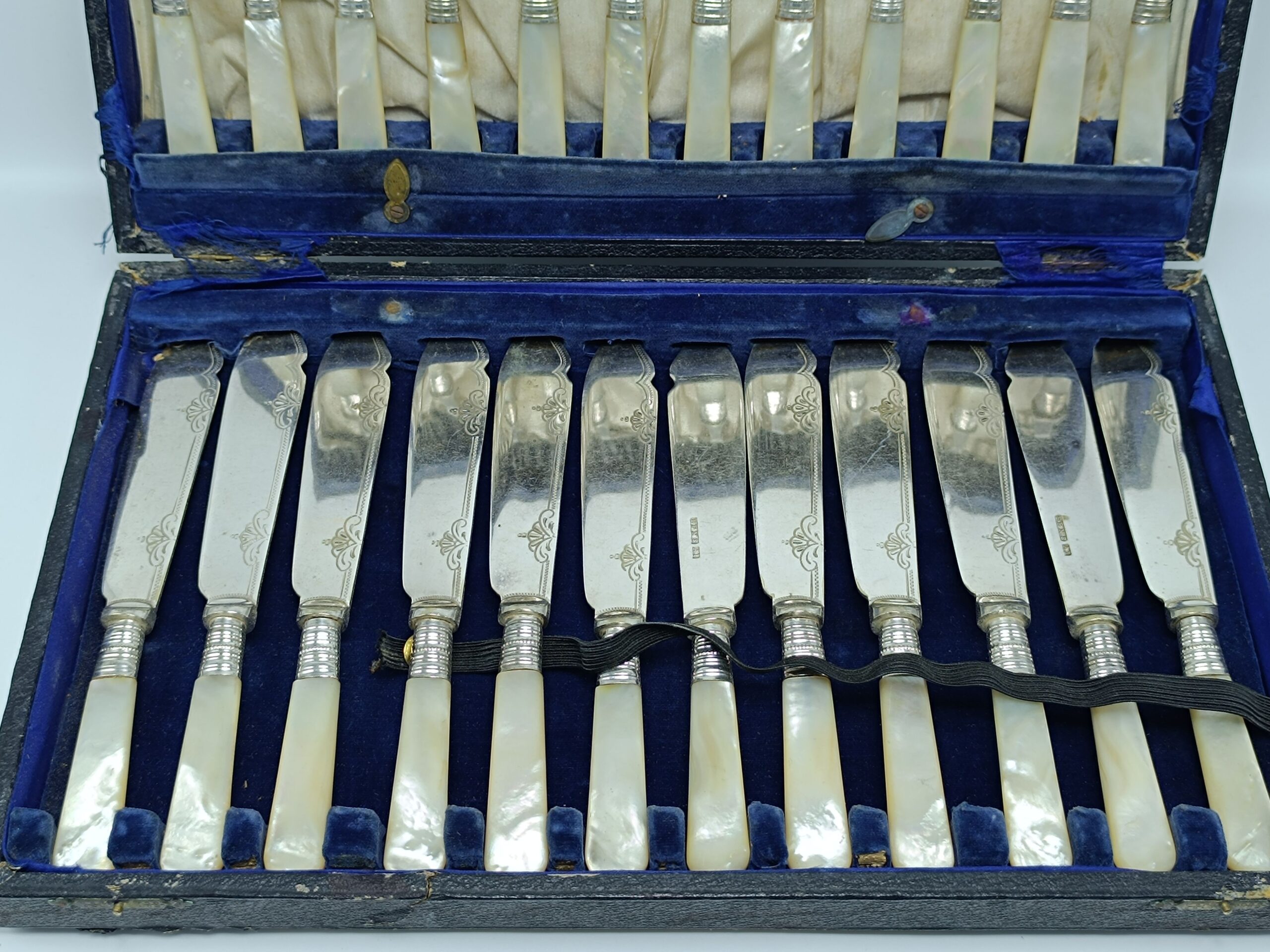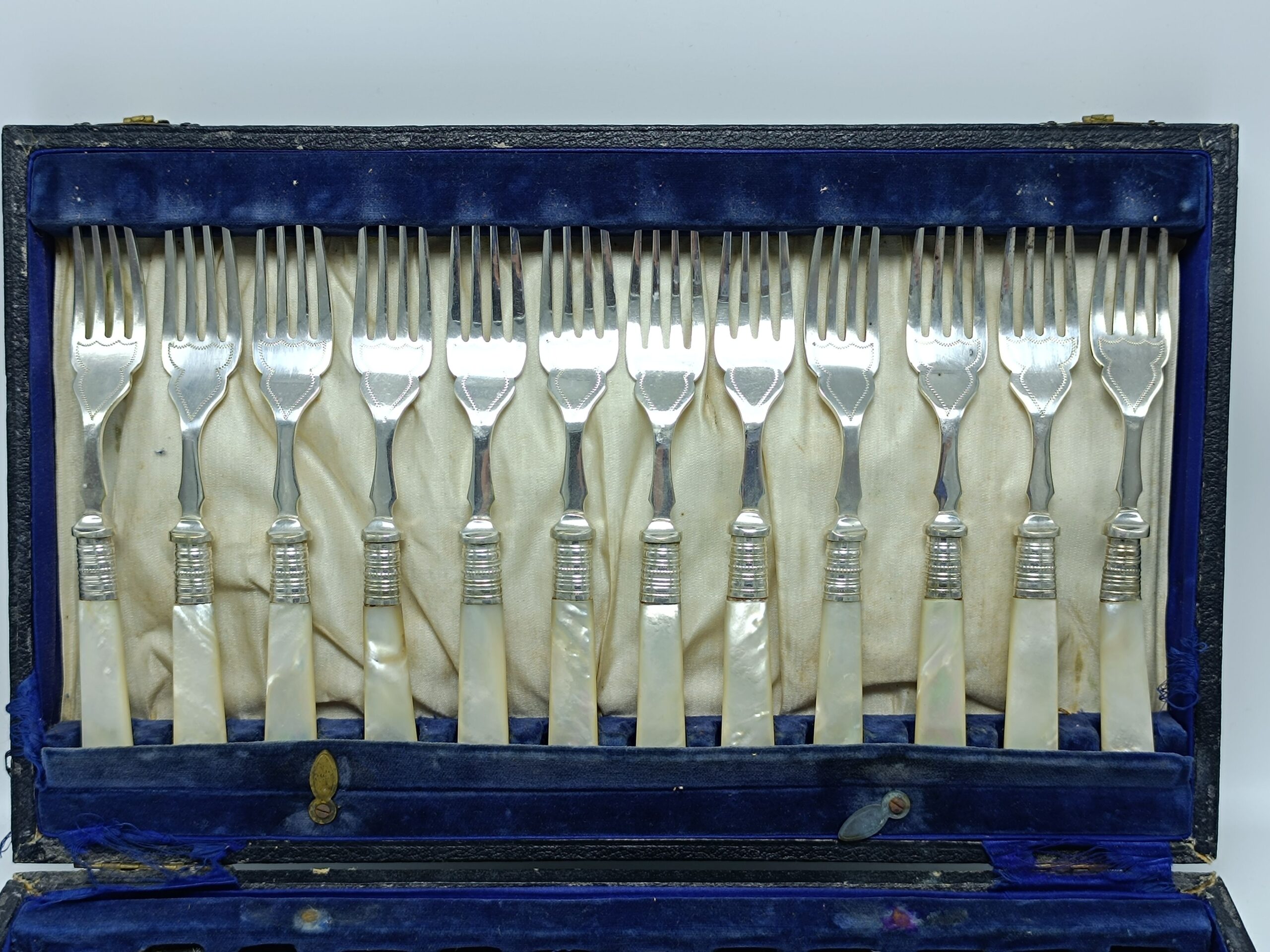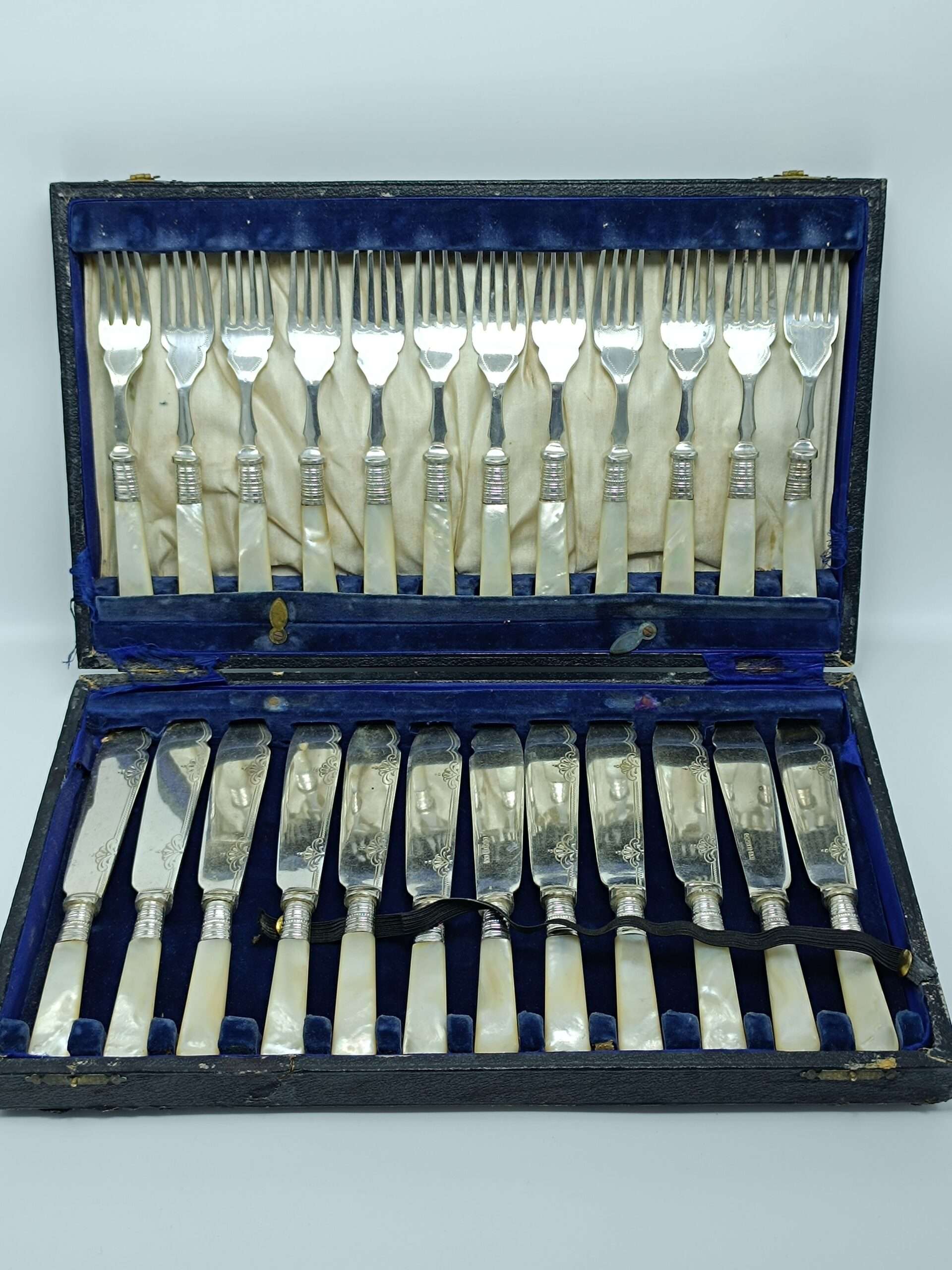 Старинный сервировочный набор. Металл, серебрение, перламутр. Англия. Кейс.