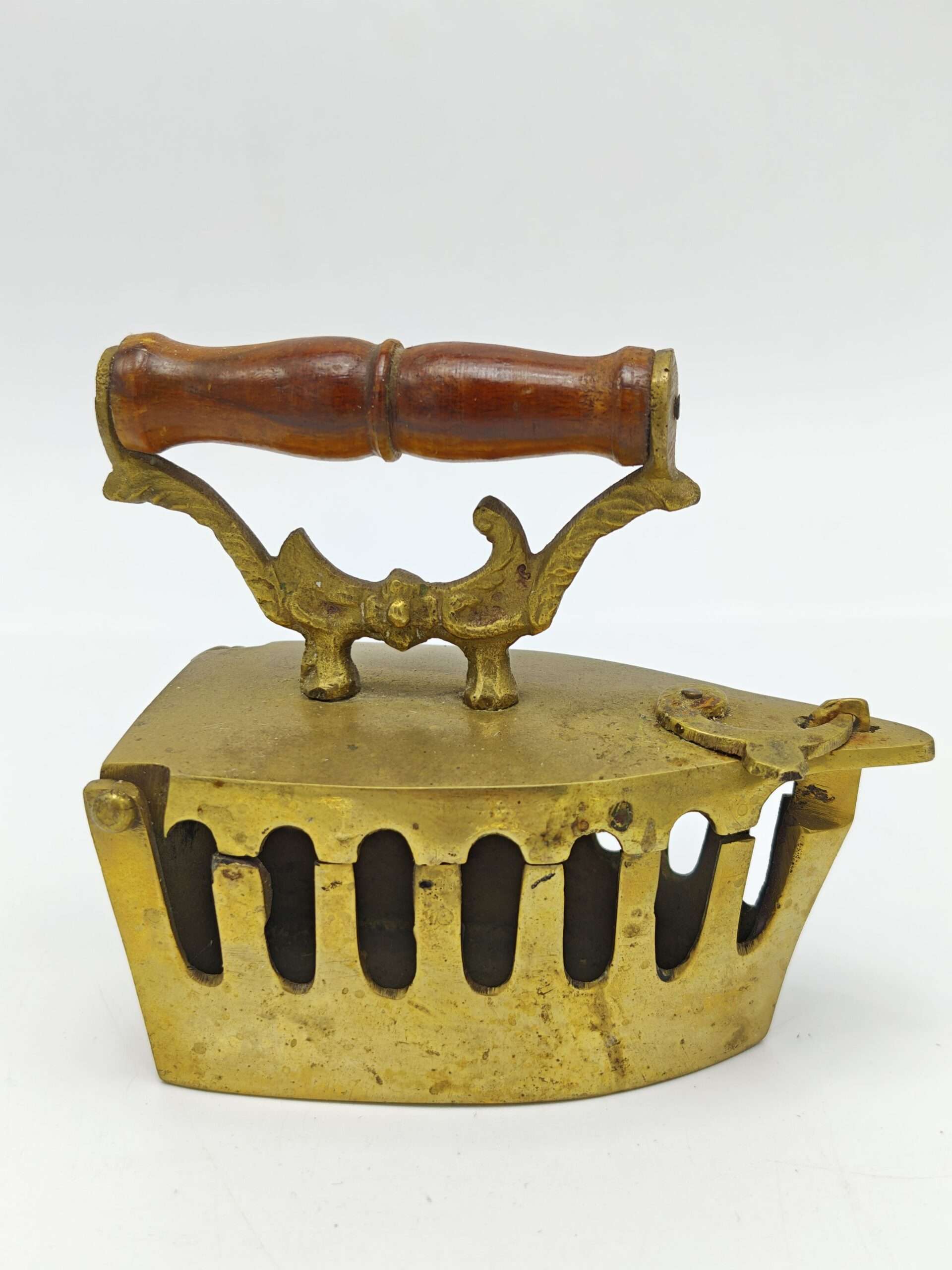 Шикарный манжетный малый утюг, старинный, ручной работы. Деревянная ручка.