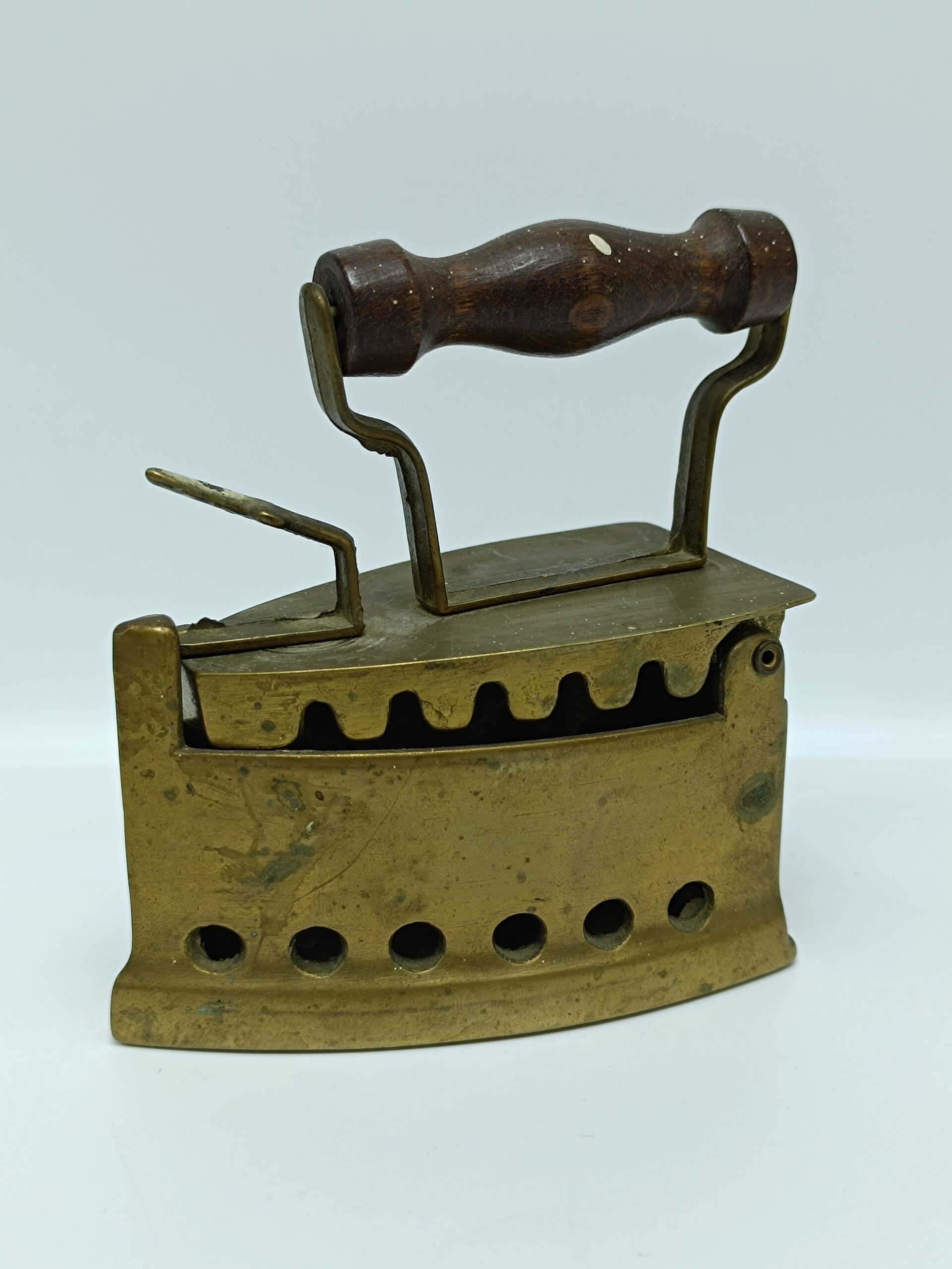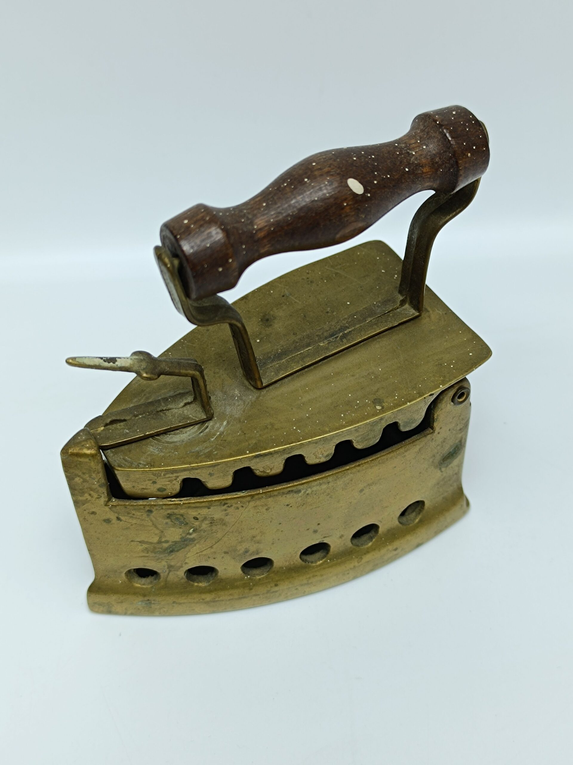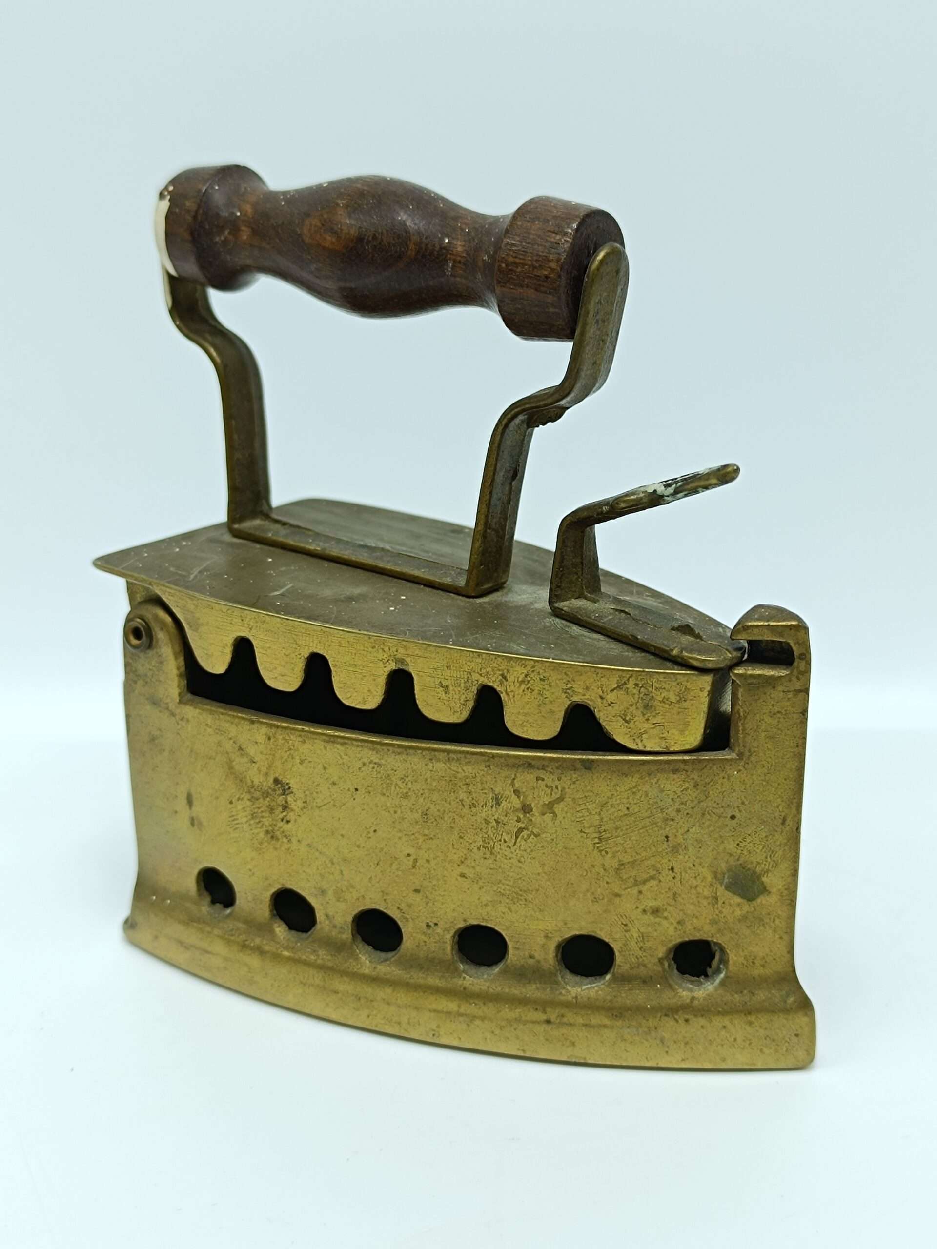 Старинный утюг угольный. Деревянная ручка. Англия первая половина 20 века Размер 11.5х10 см