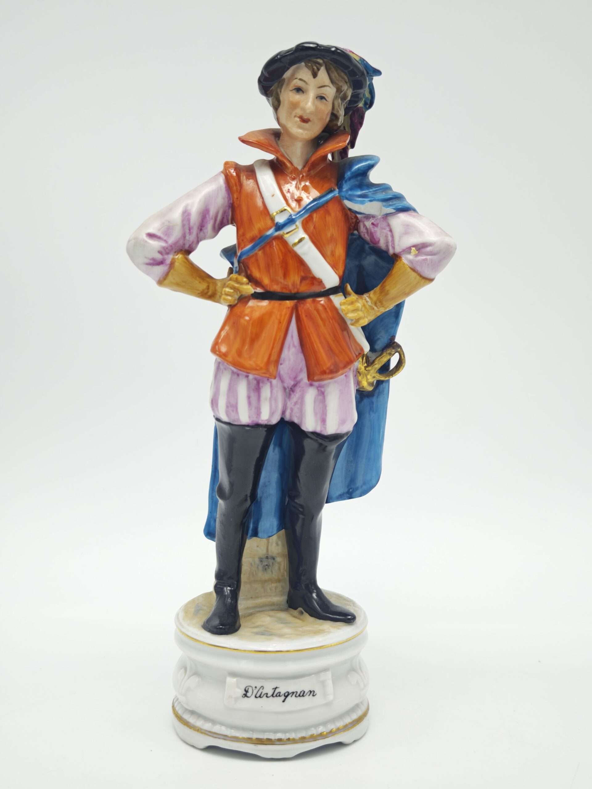 Статуэтка винтажная “Мушкетёр Д’Артаньян” из романа Три мушкетера. Фарфор, роспись, золочение. Западная Европа 1970 гг.