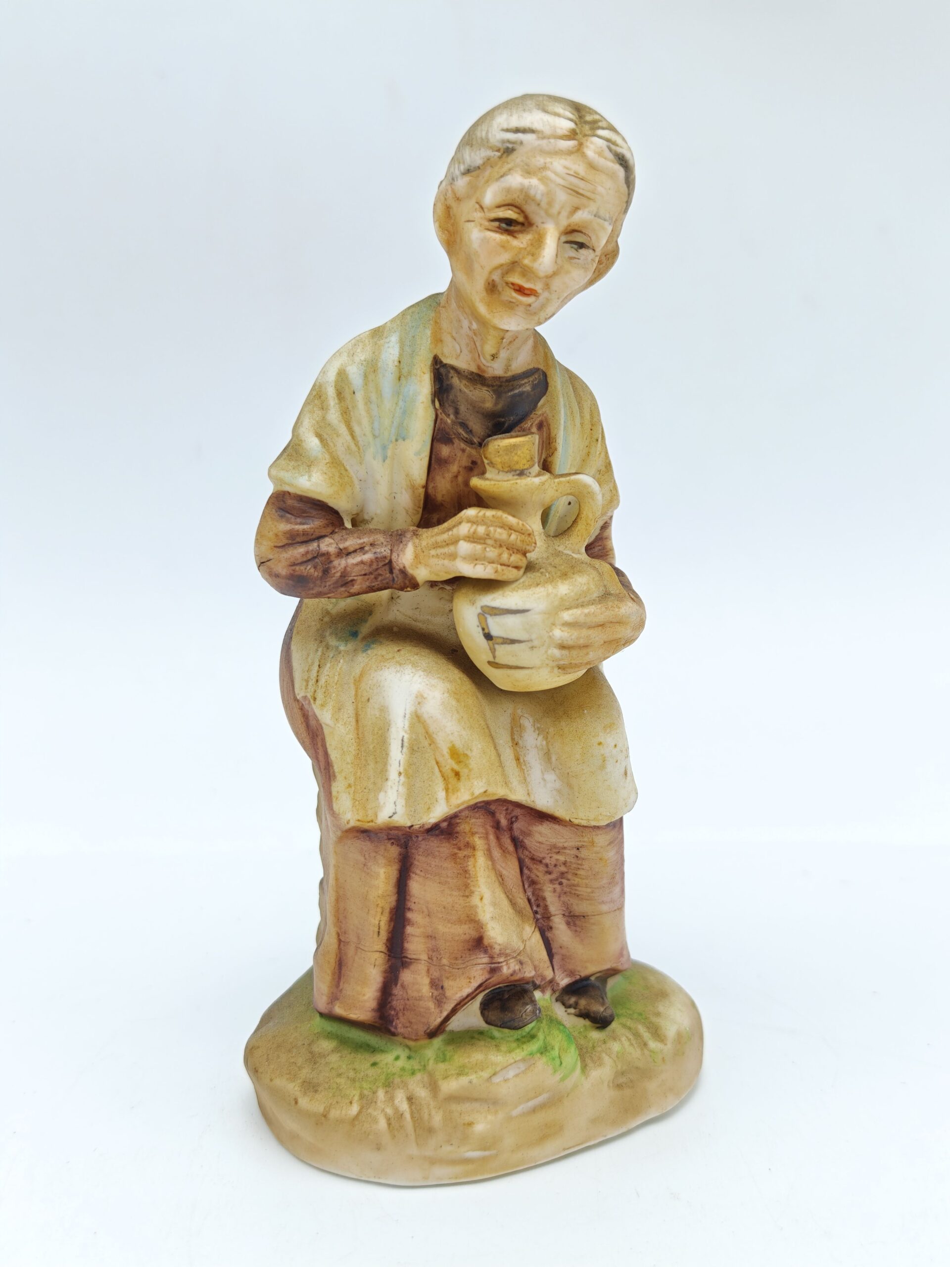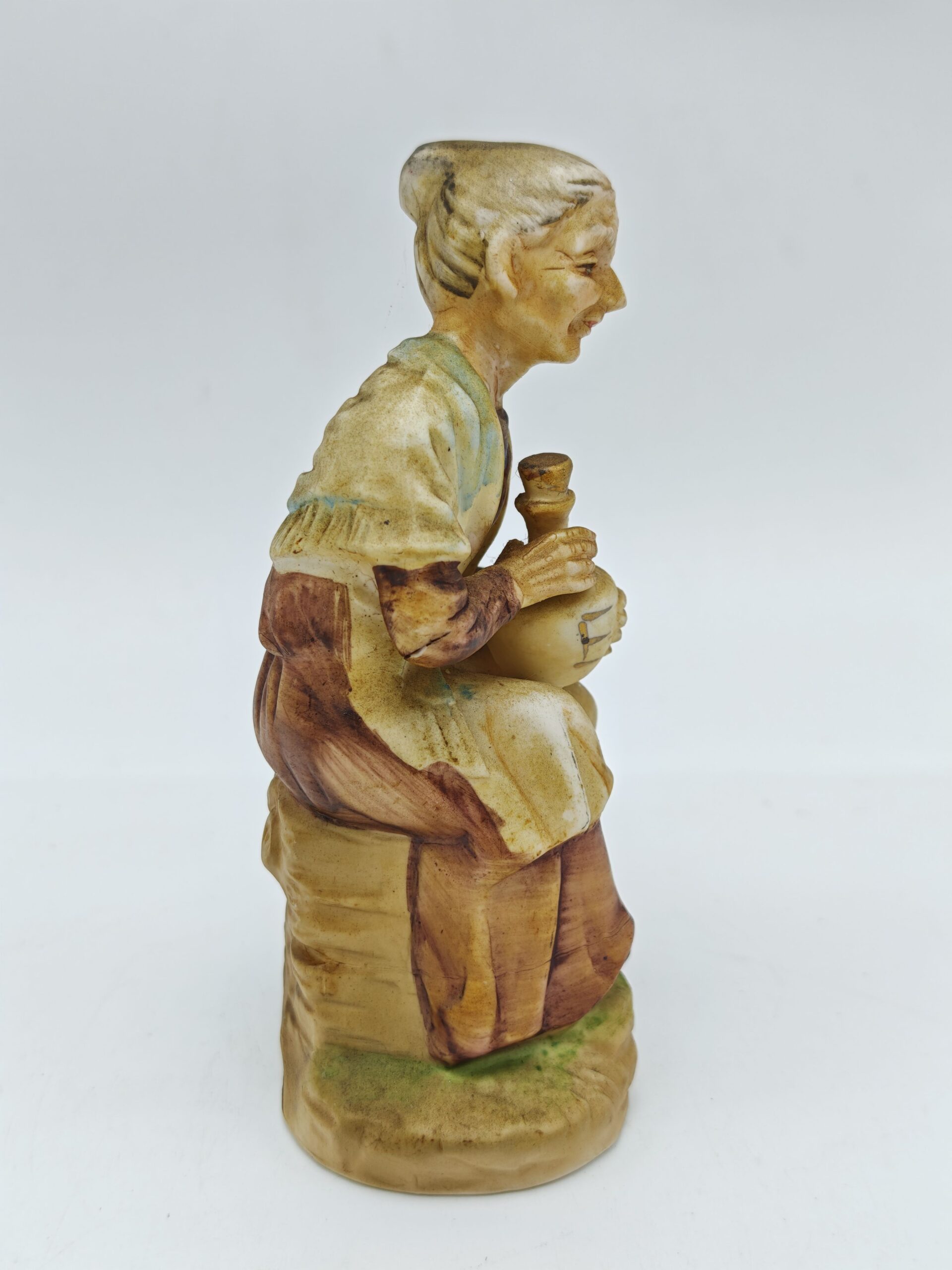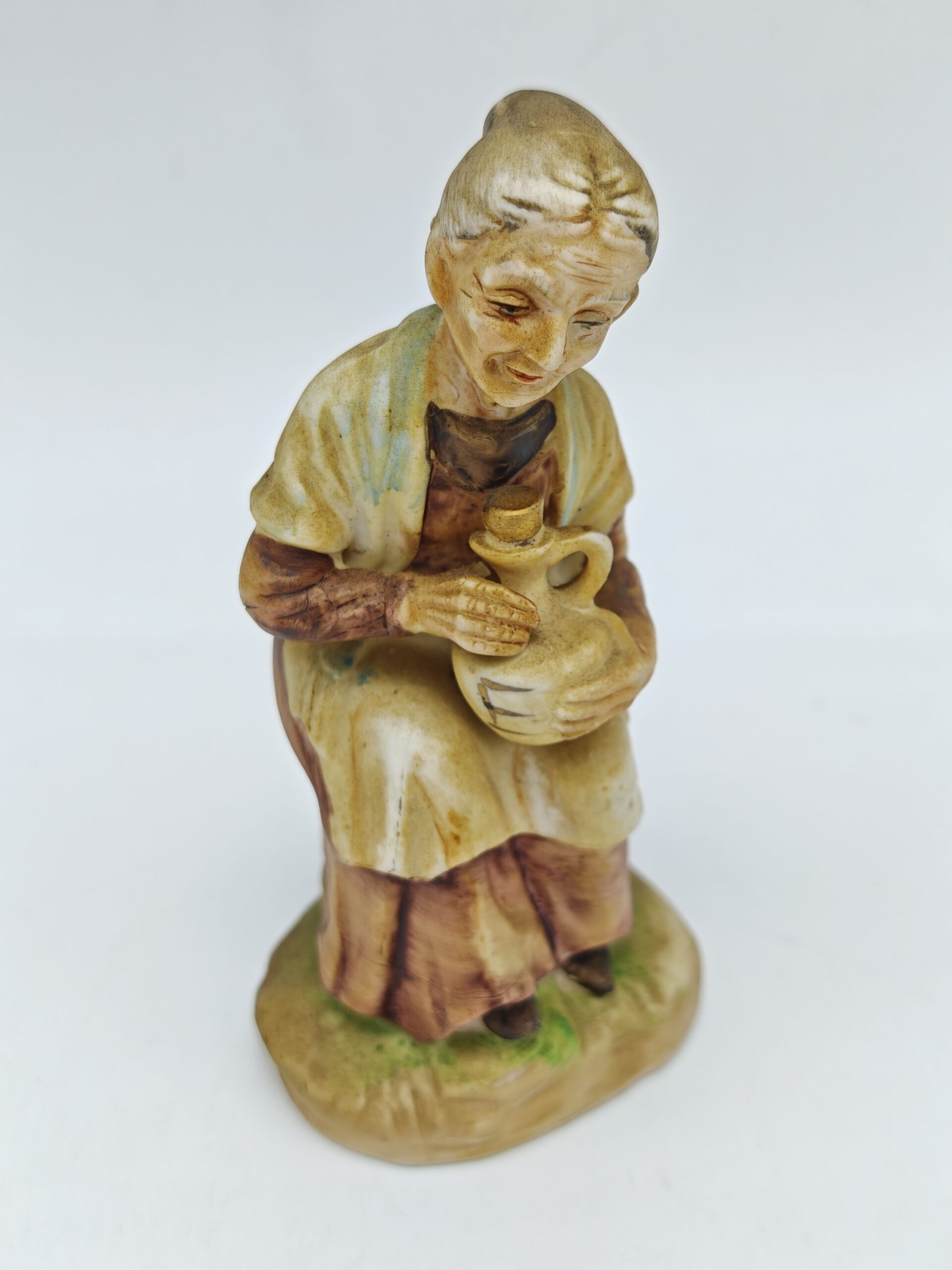 Статуэтка винтажная «Старушка с кувшином». Роспись, бисквитный фарфор, Западная Европа 1970 гг.