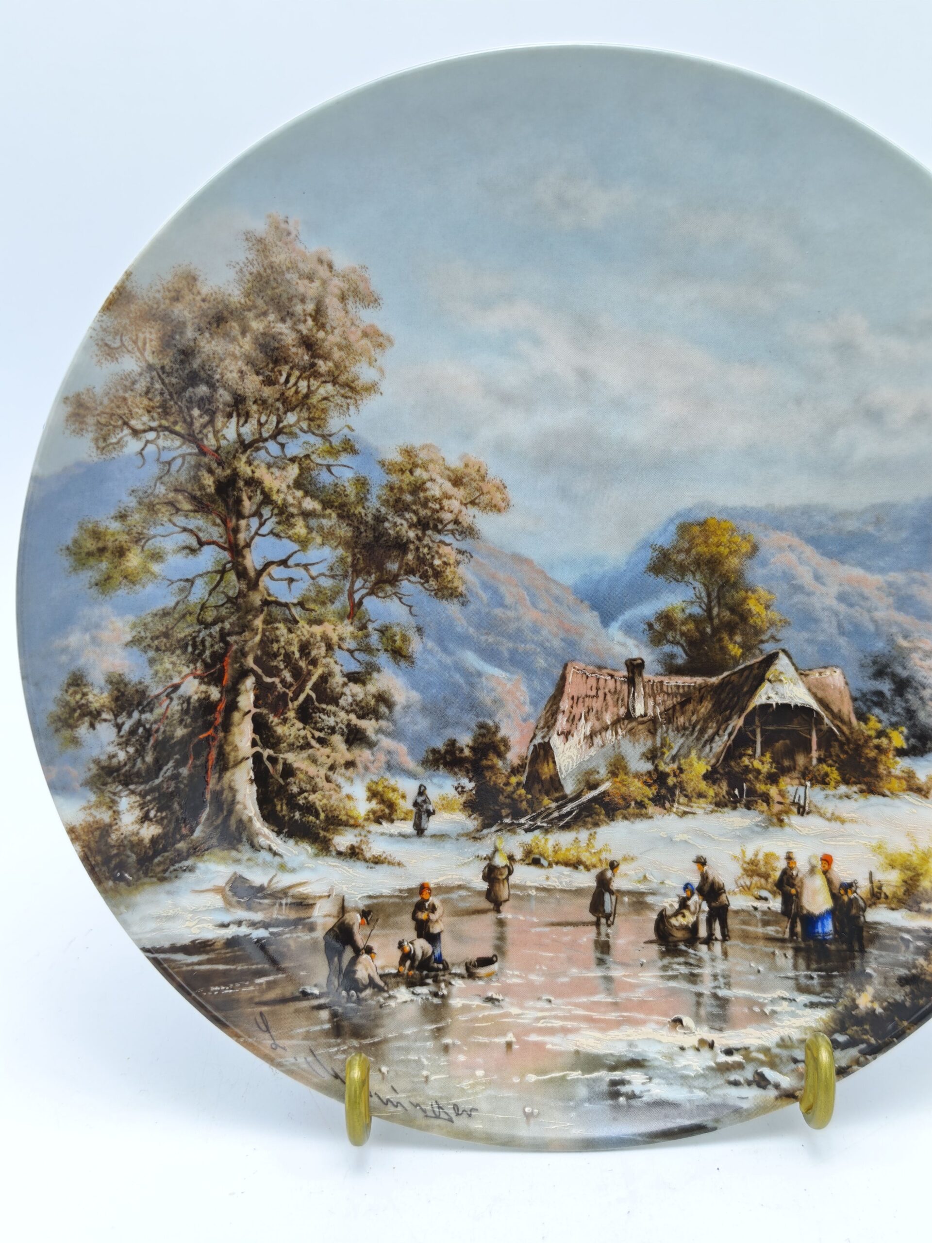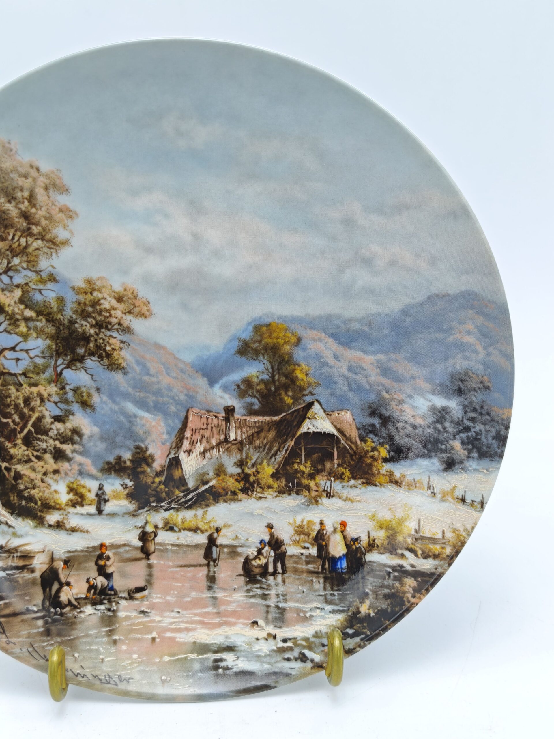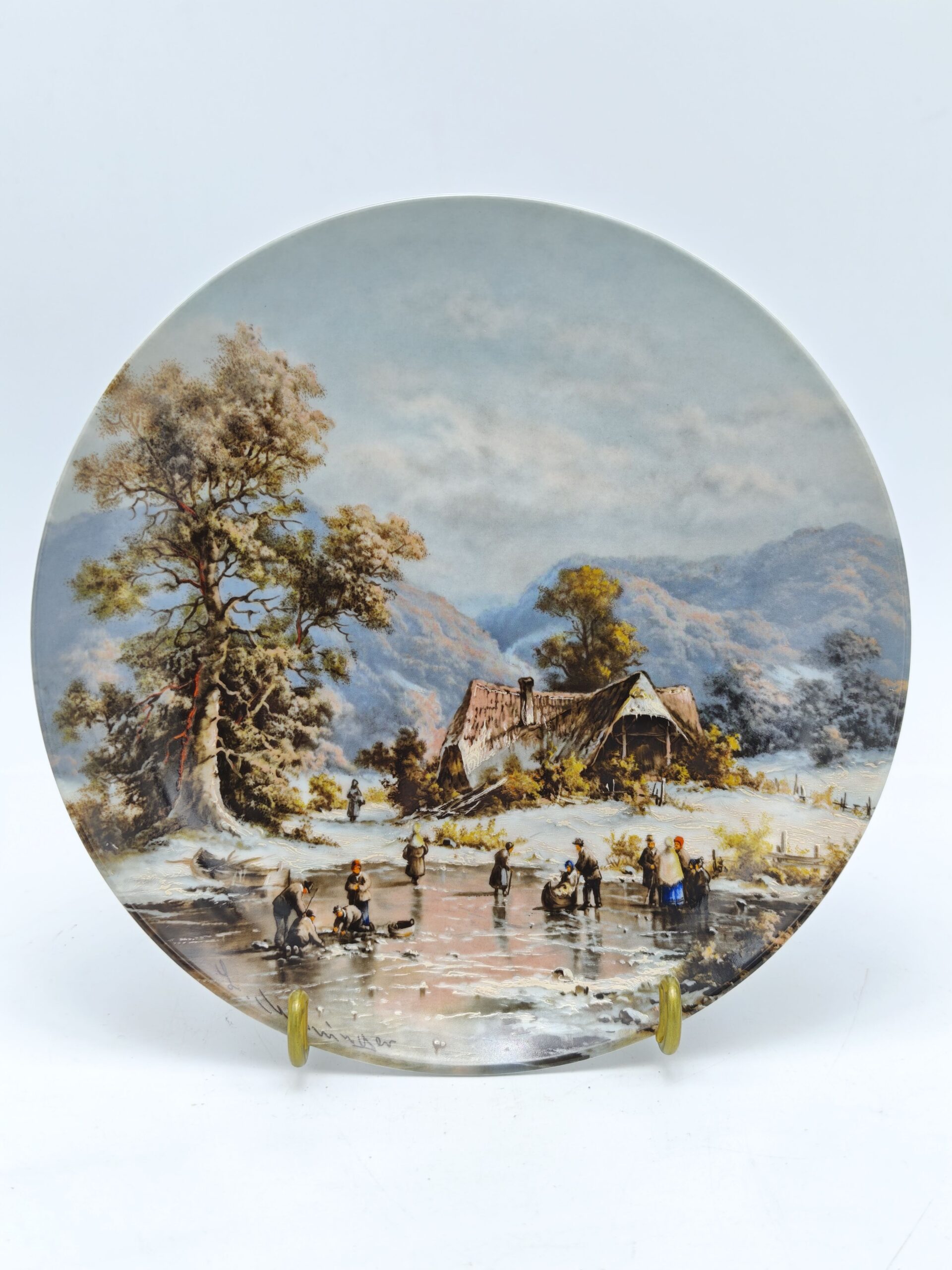 Тарелка фарфоровая настенная декоративная «Рыбаки на деревенском пруду».