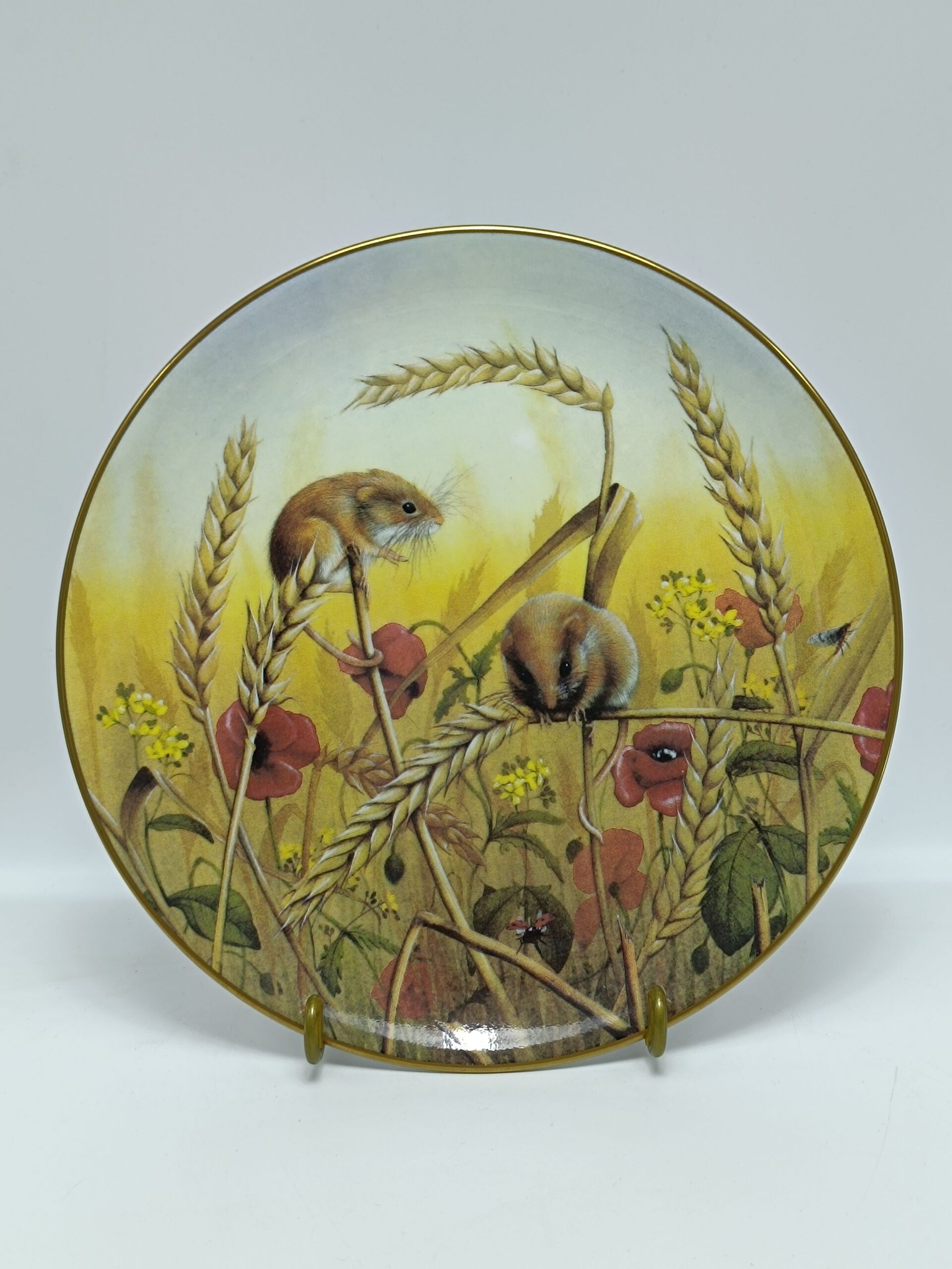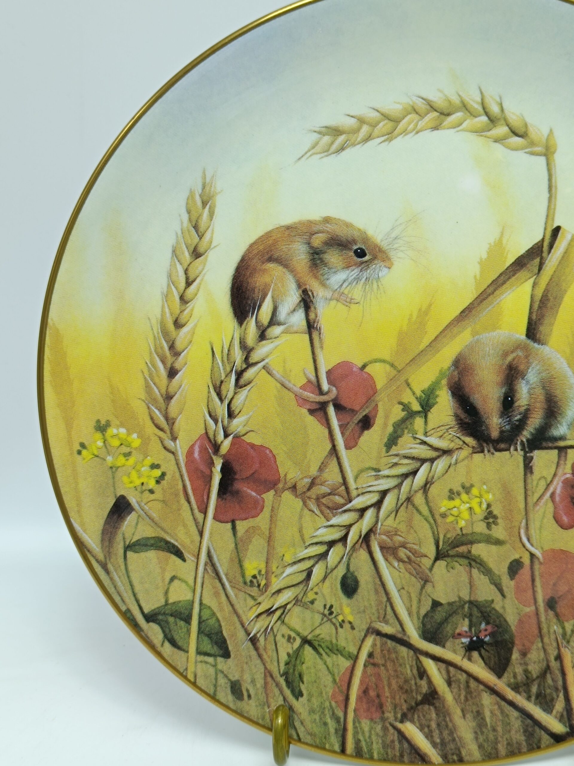 Тарелка винтажная декоративная из серии «Дикая природа. Полевая мышь» от английской компании Spode. Фарфор. Золочение