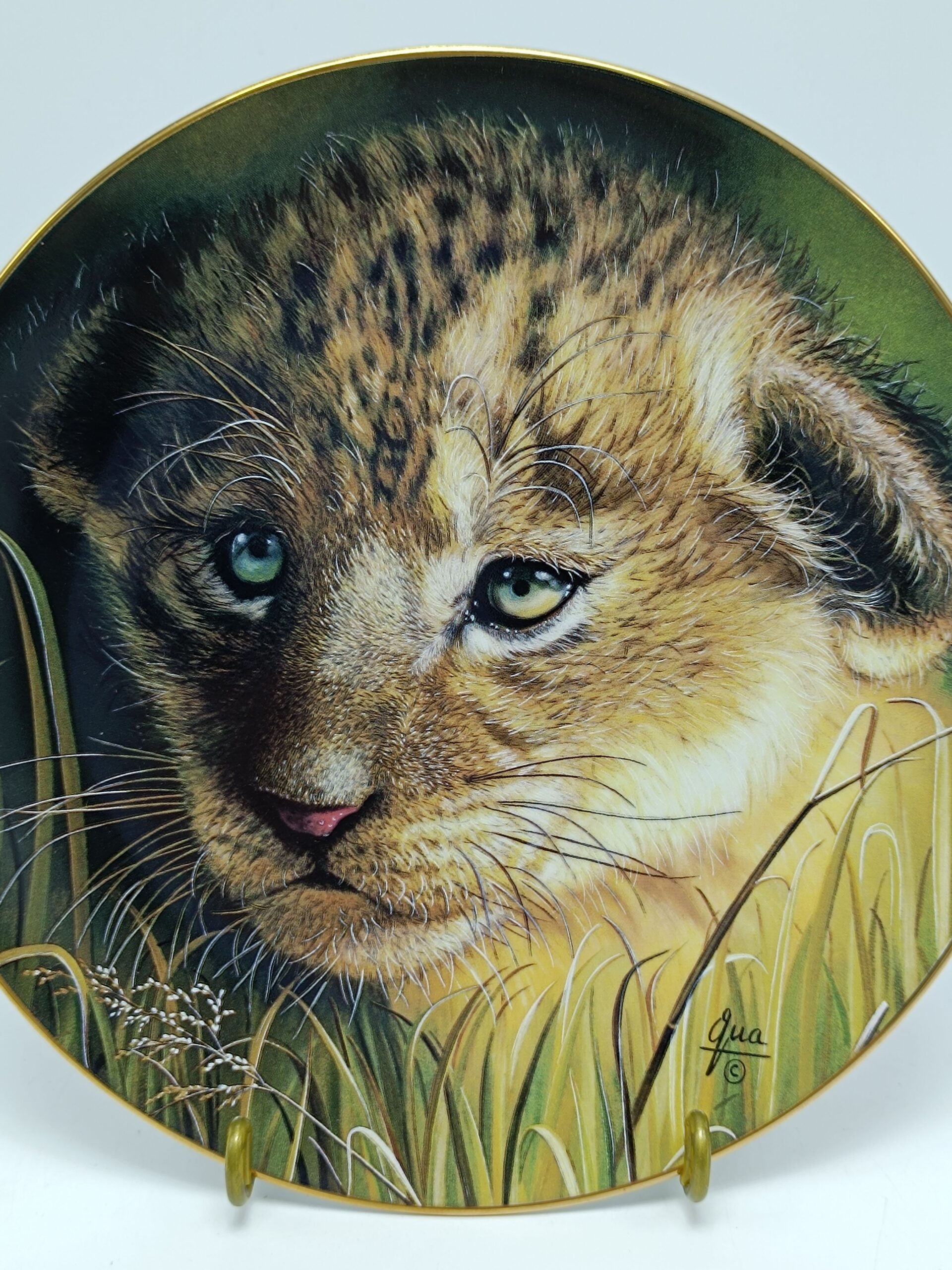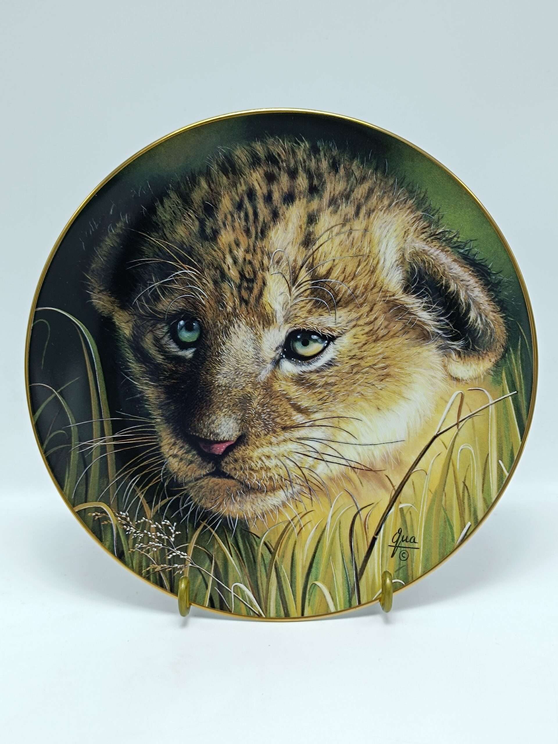 Тарелка винтажная декоративная настенная «Львёнок Большие кошки». Лимитированная серия «Cubs of the Big Cats» Детёныши больших кошек.