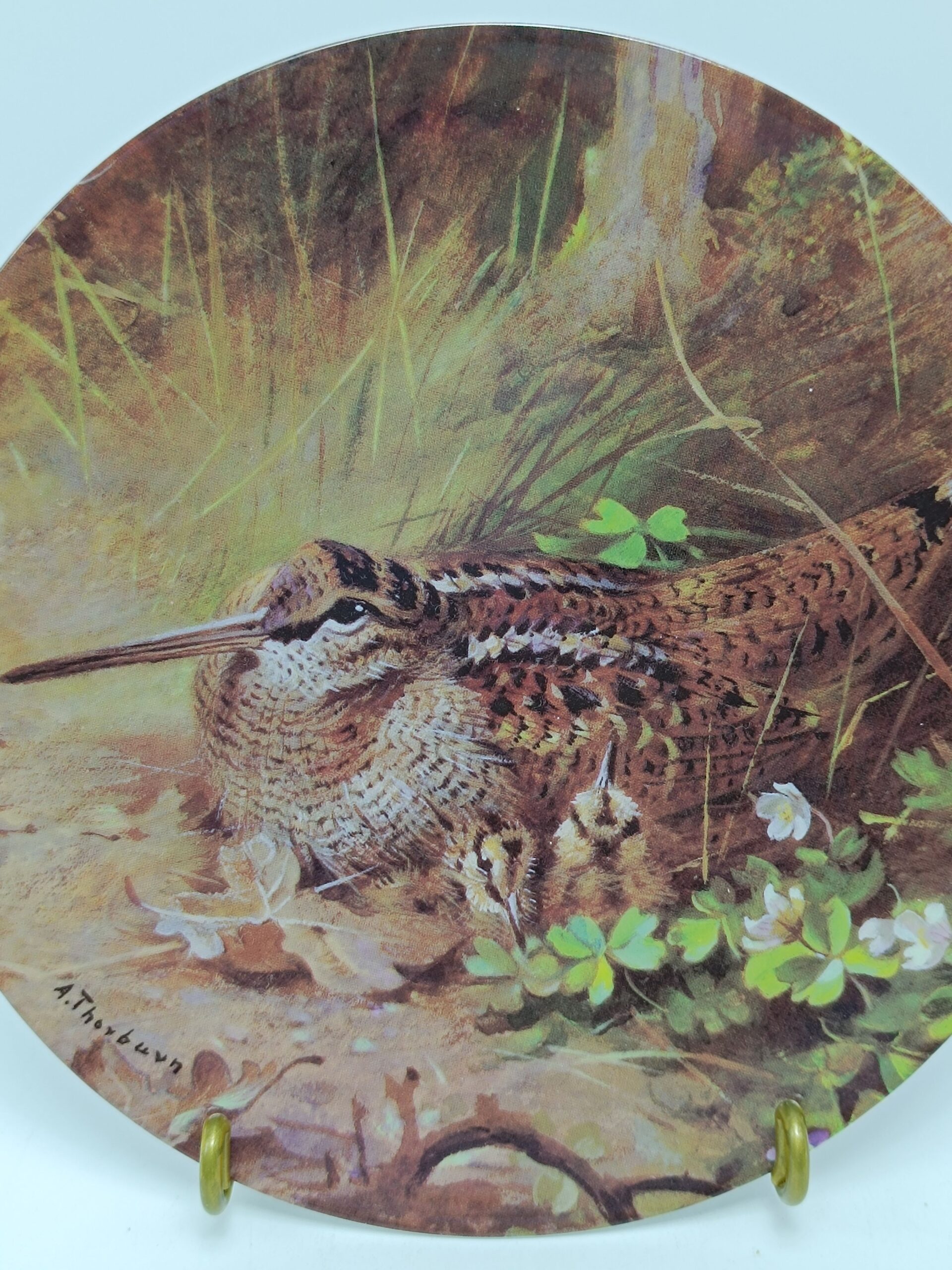Тарелка винтажная декоративная настенная.Фарфор. «Птицы.Охота. Вальдшнеп».