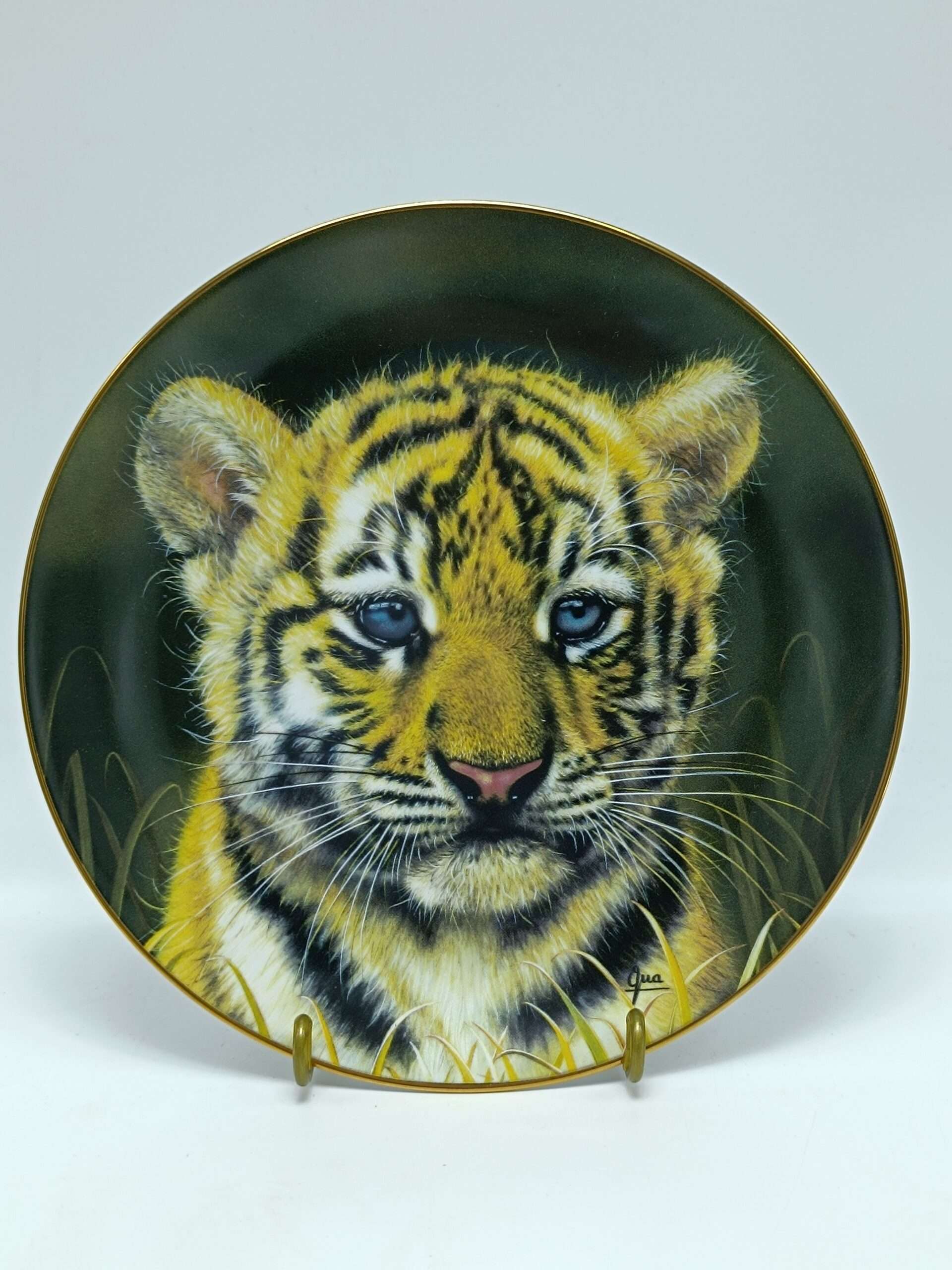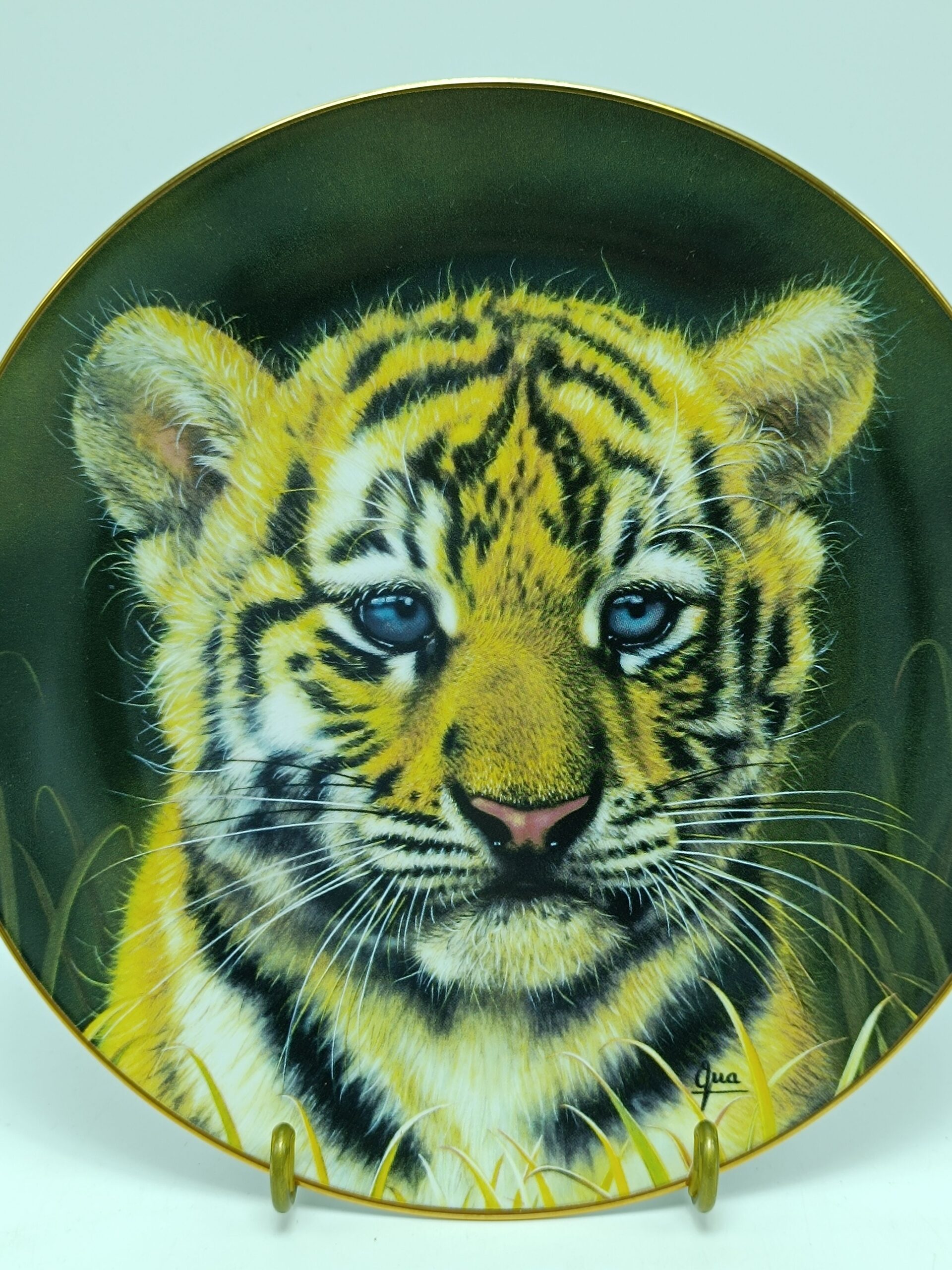 Тарелка винтажная декоративная настенная Фарфор «Тигренок. Большие кошки».
