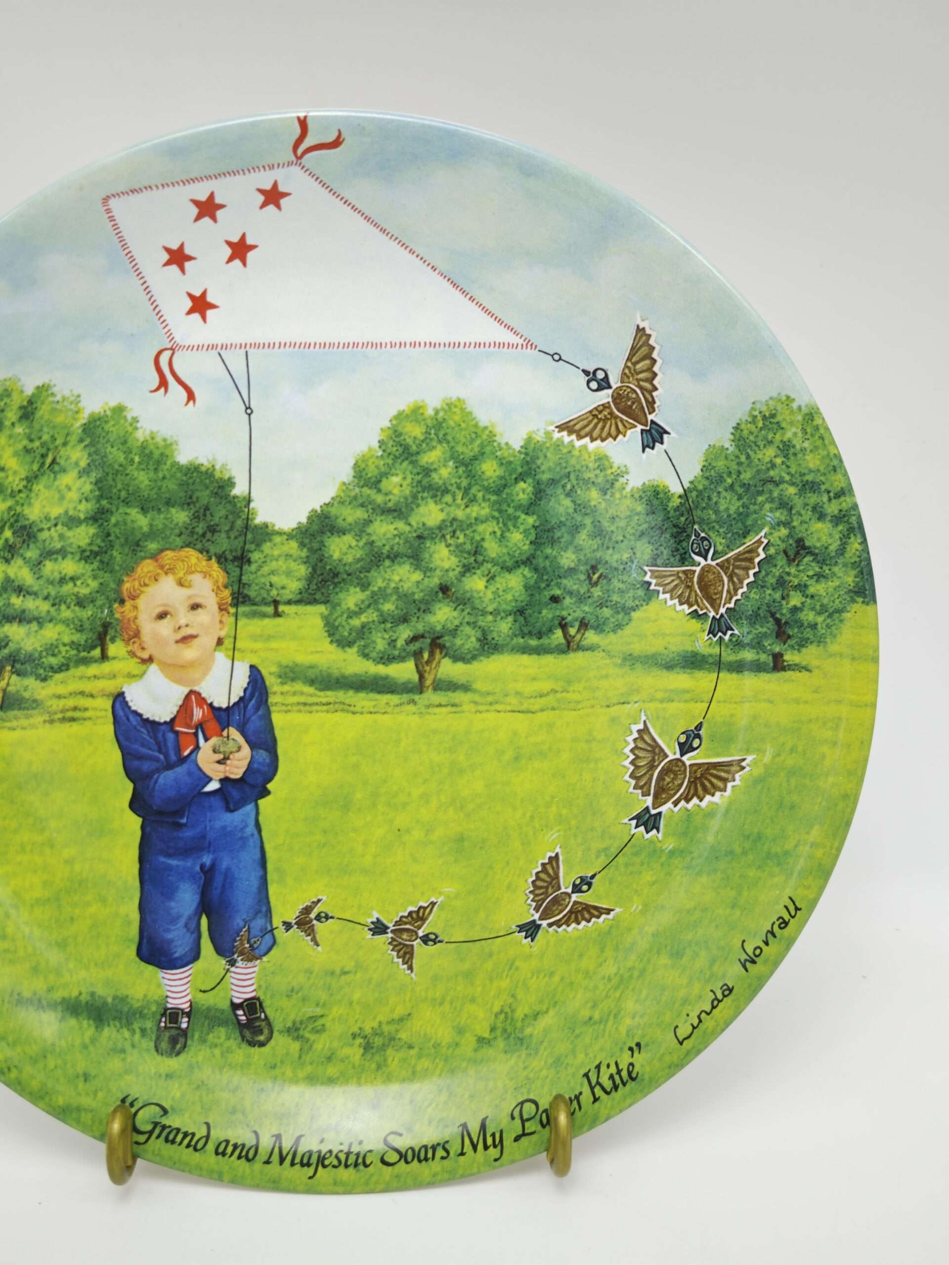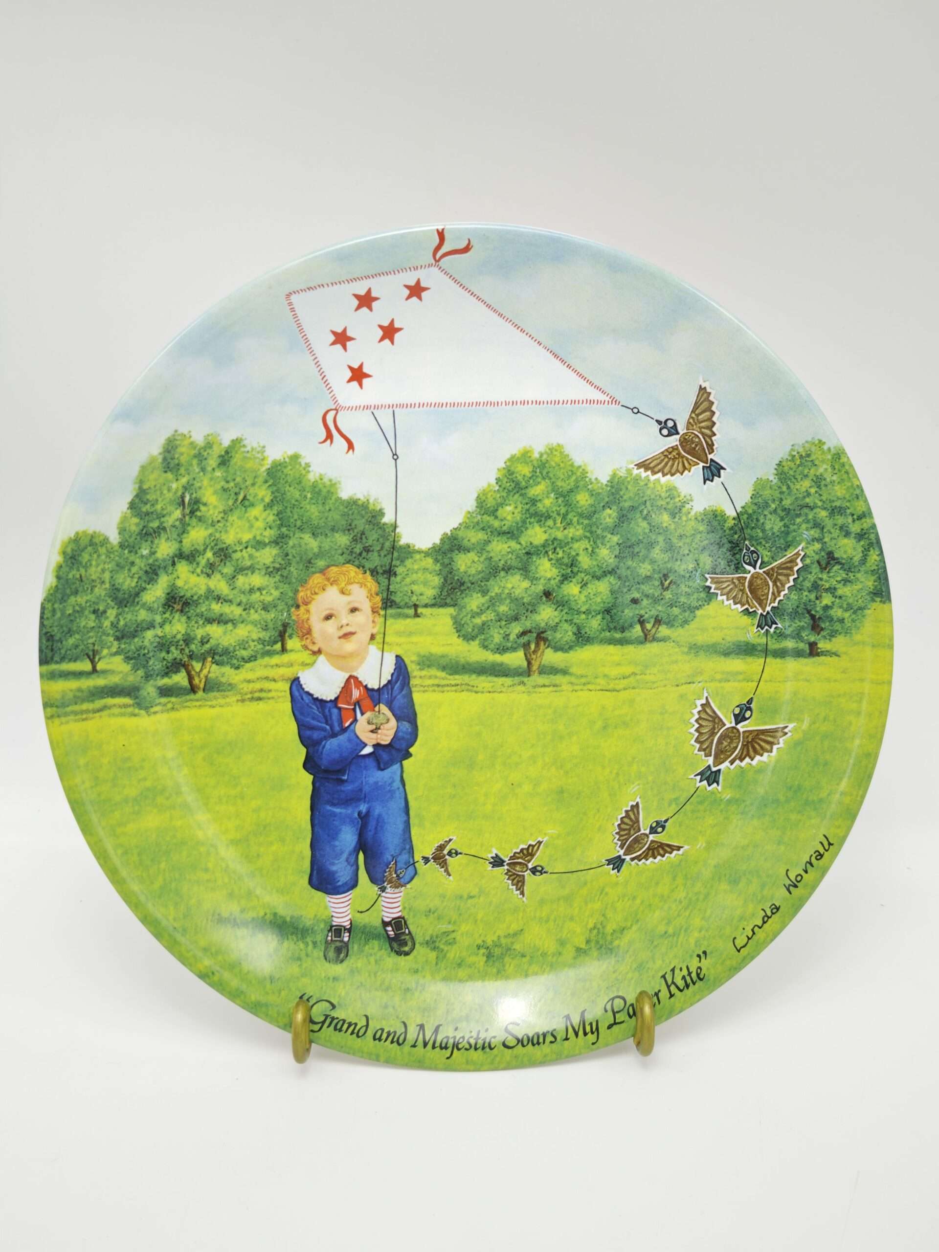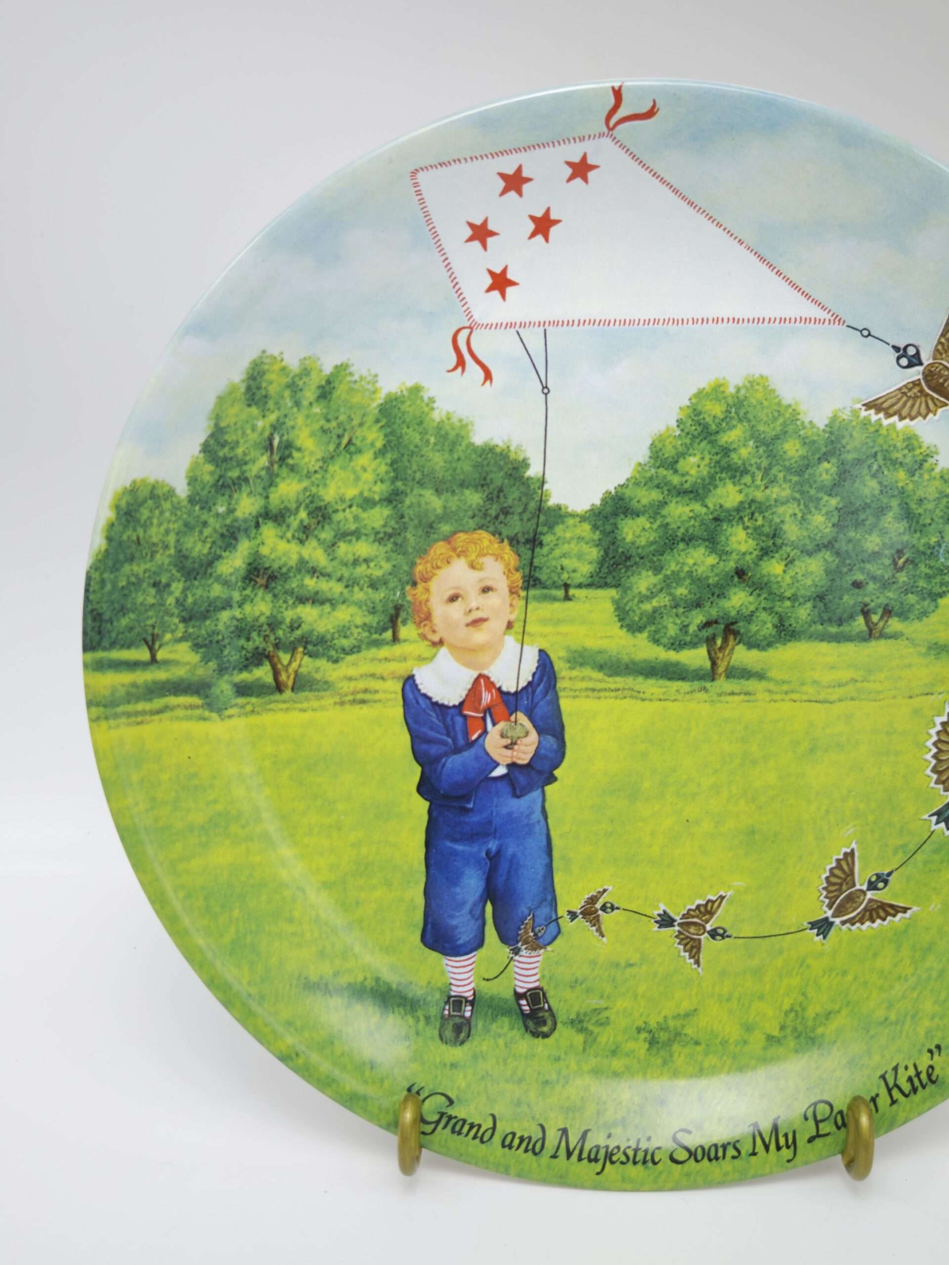 Тарелка винтажная декоративная настенная «Мальчик с воздушным змеем». Фарфор. Деколь. Англия 1988 год, Davenport