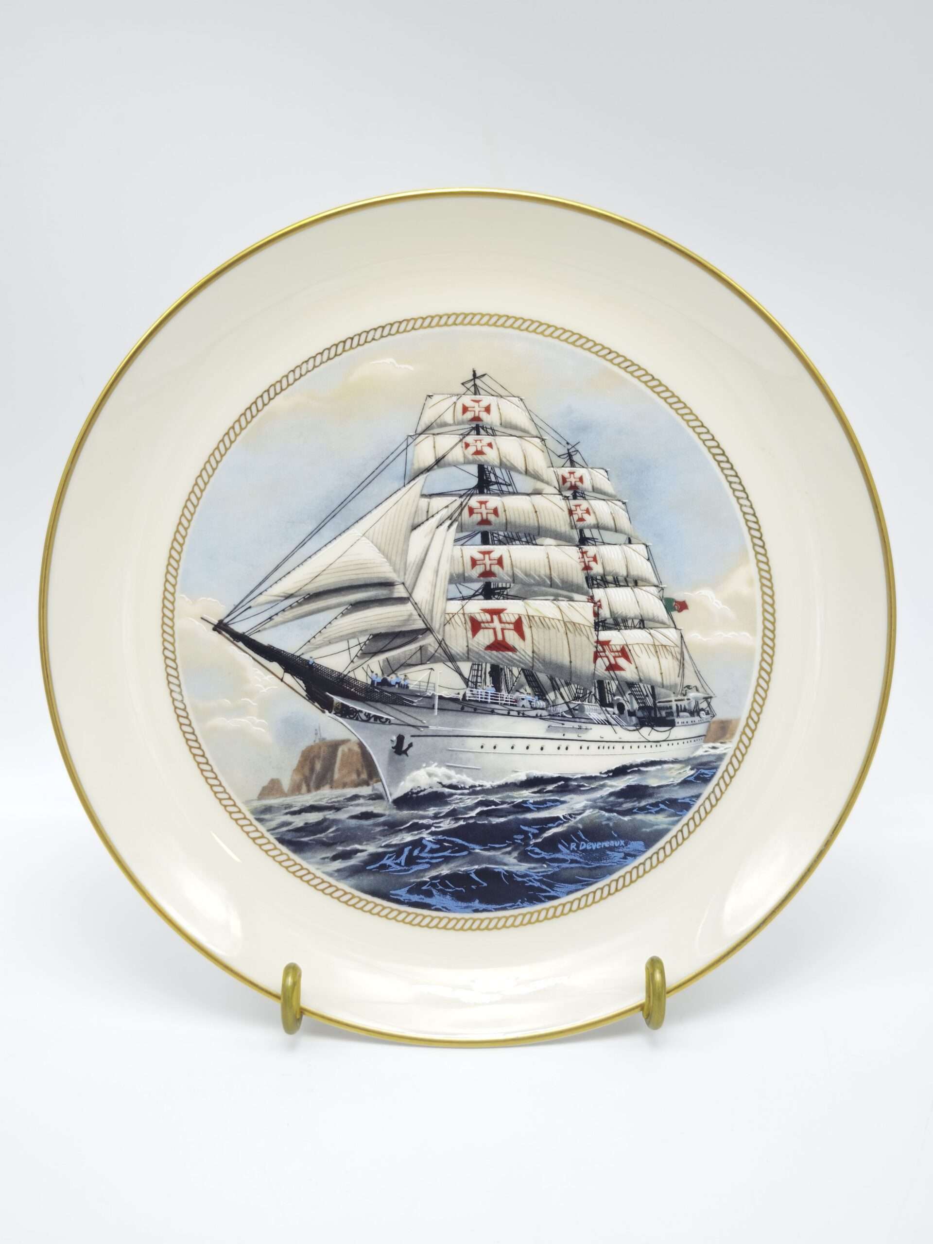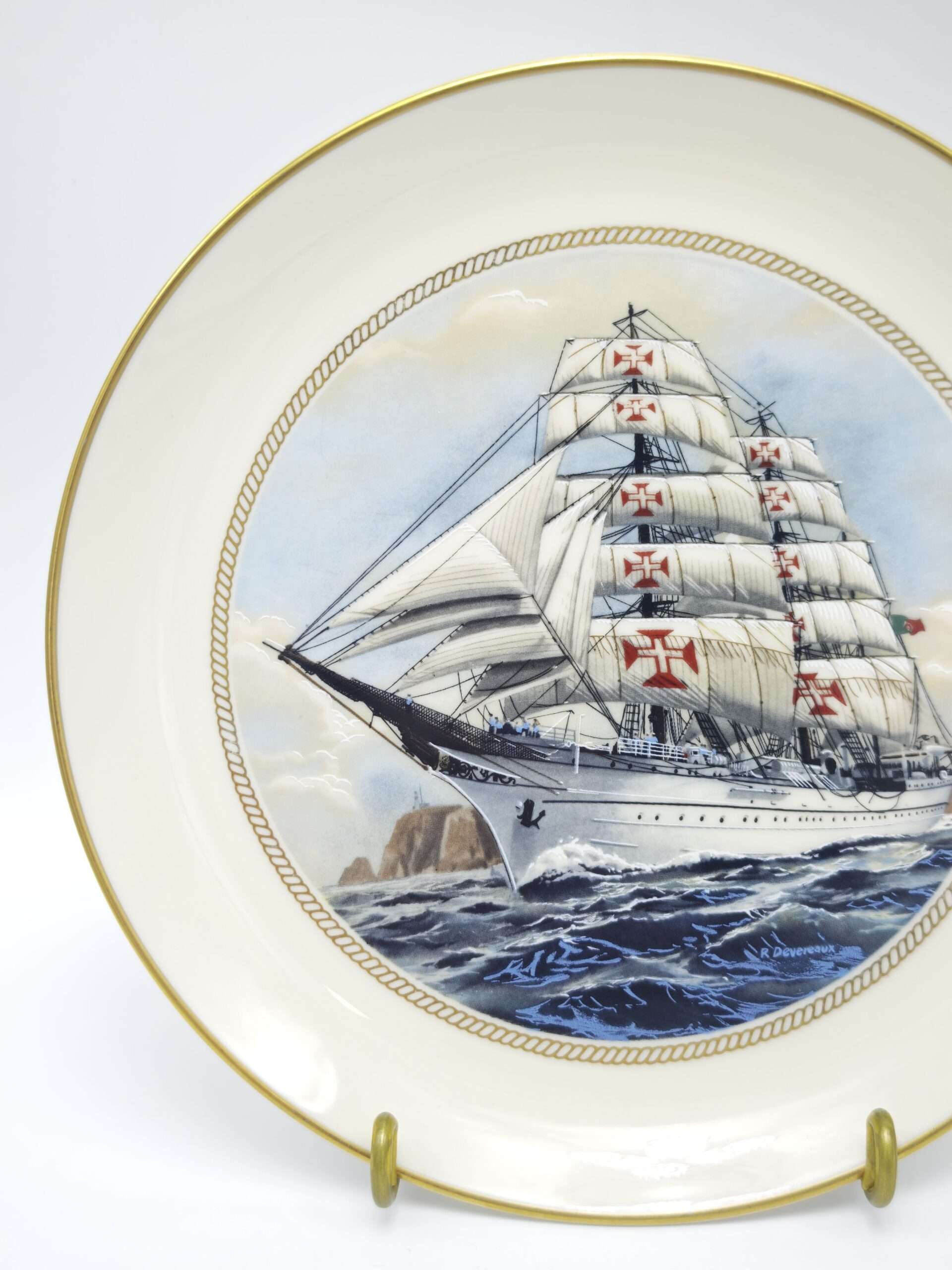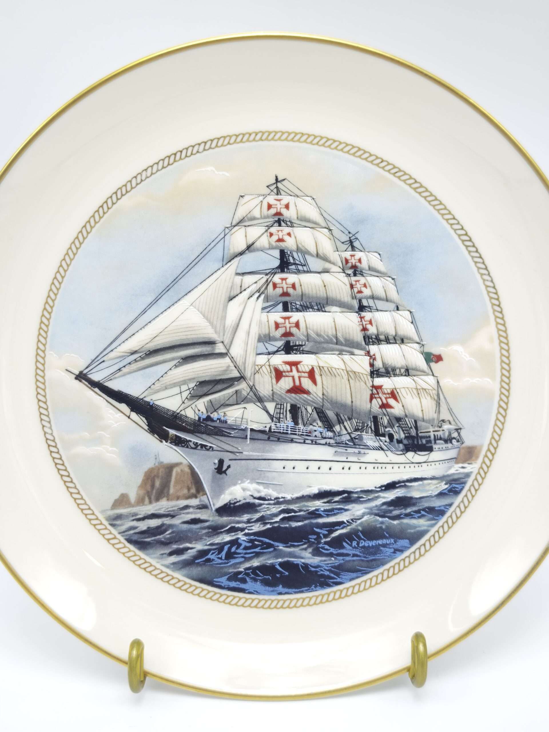 Тарелка винтажная декоративная настенная «Парусники» из коллекции «Эпоха Великих географических открытия». Фарфор, деколь, золочение. США, Danbury Mint.