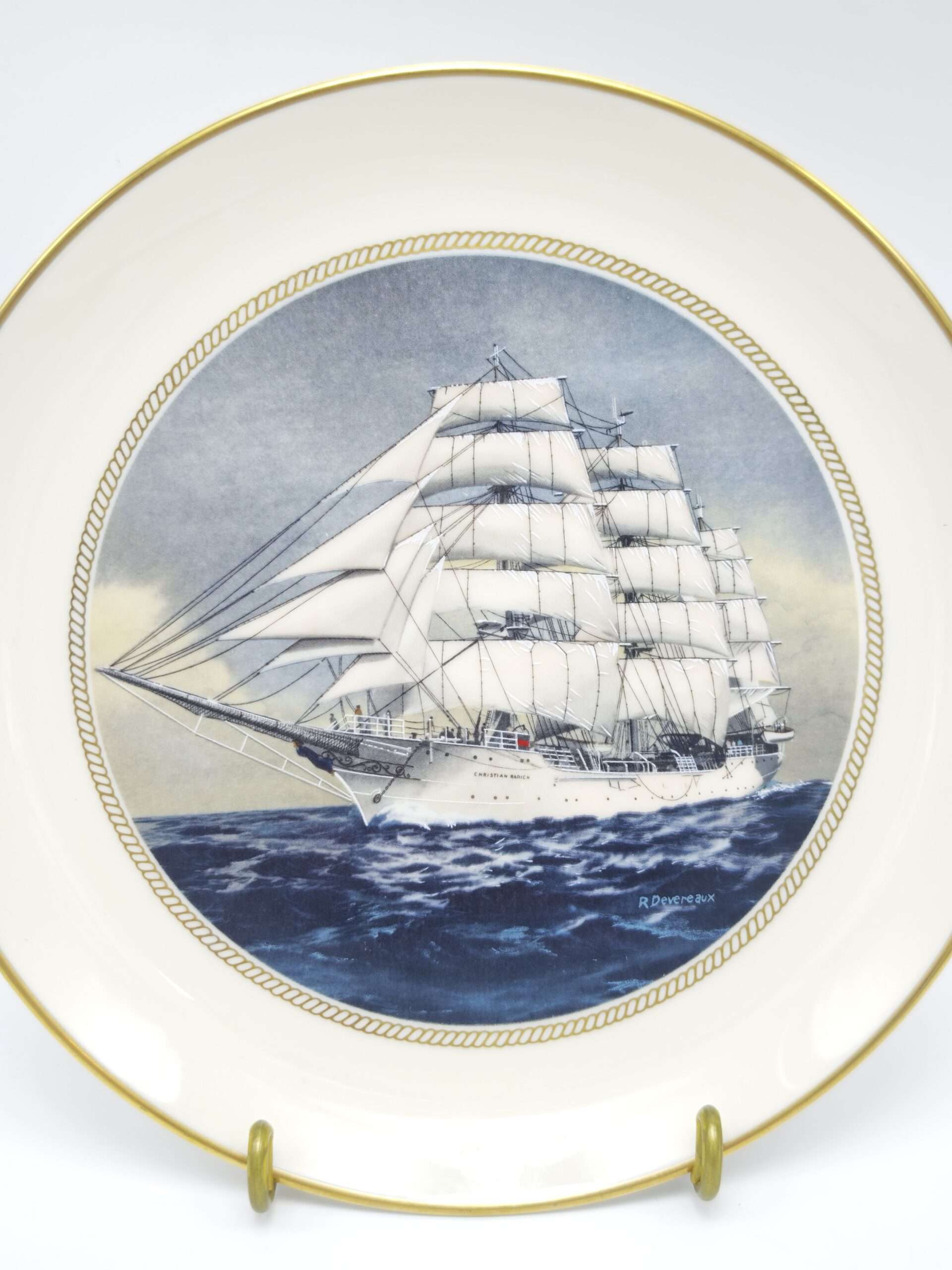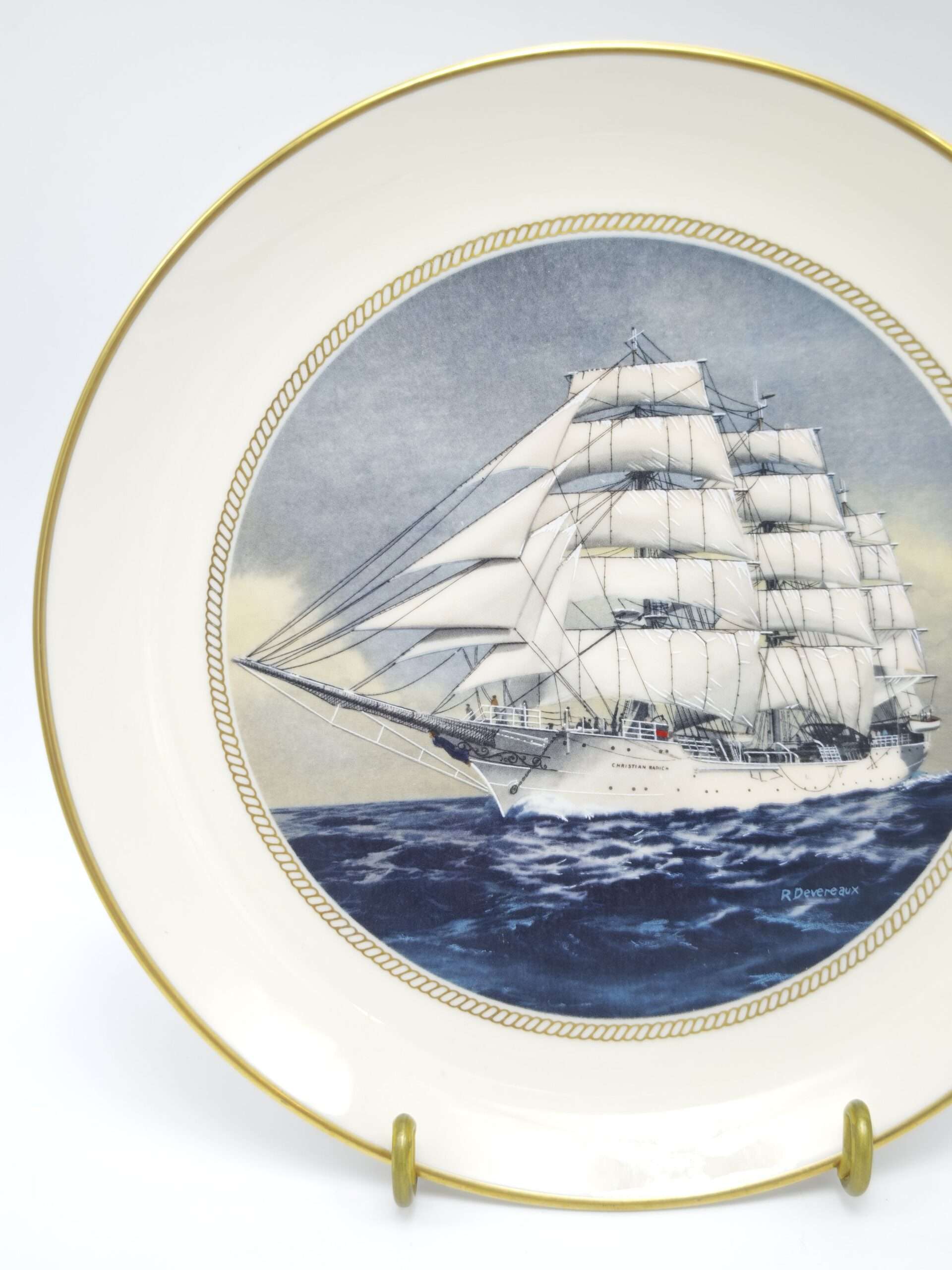 Тарелка винтажная декоративная настенная «Парусники» из коллекции «Эпоха Великих географических открытия». Фарфор, деколь, золочение. США, Danbury Mint.