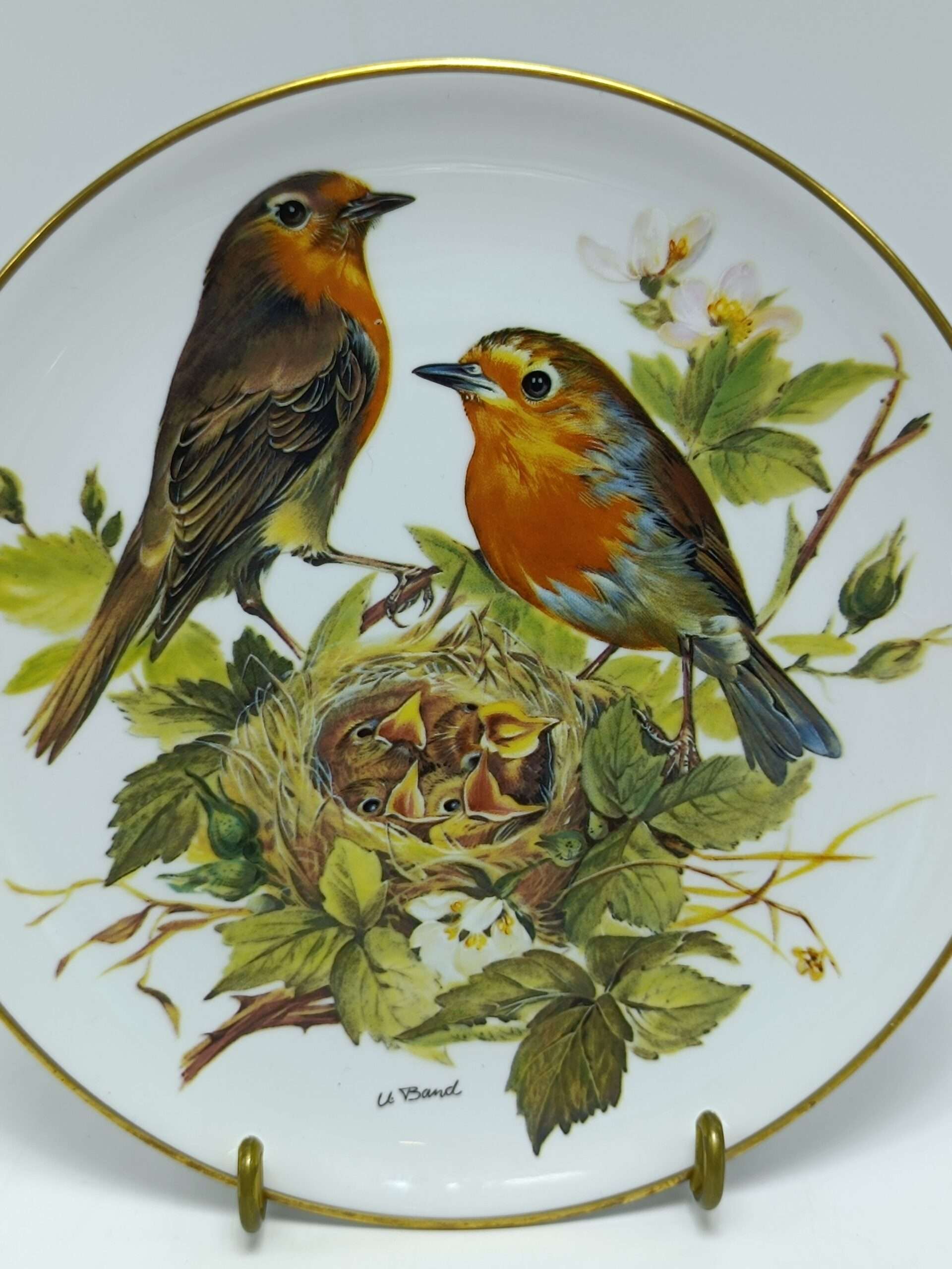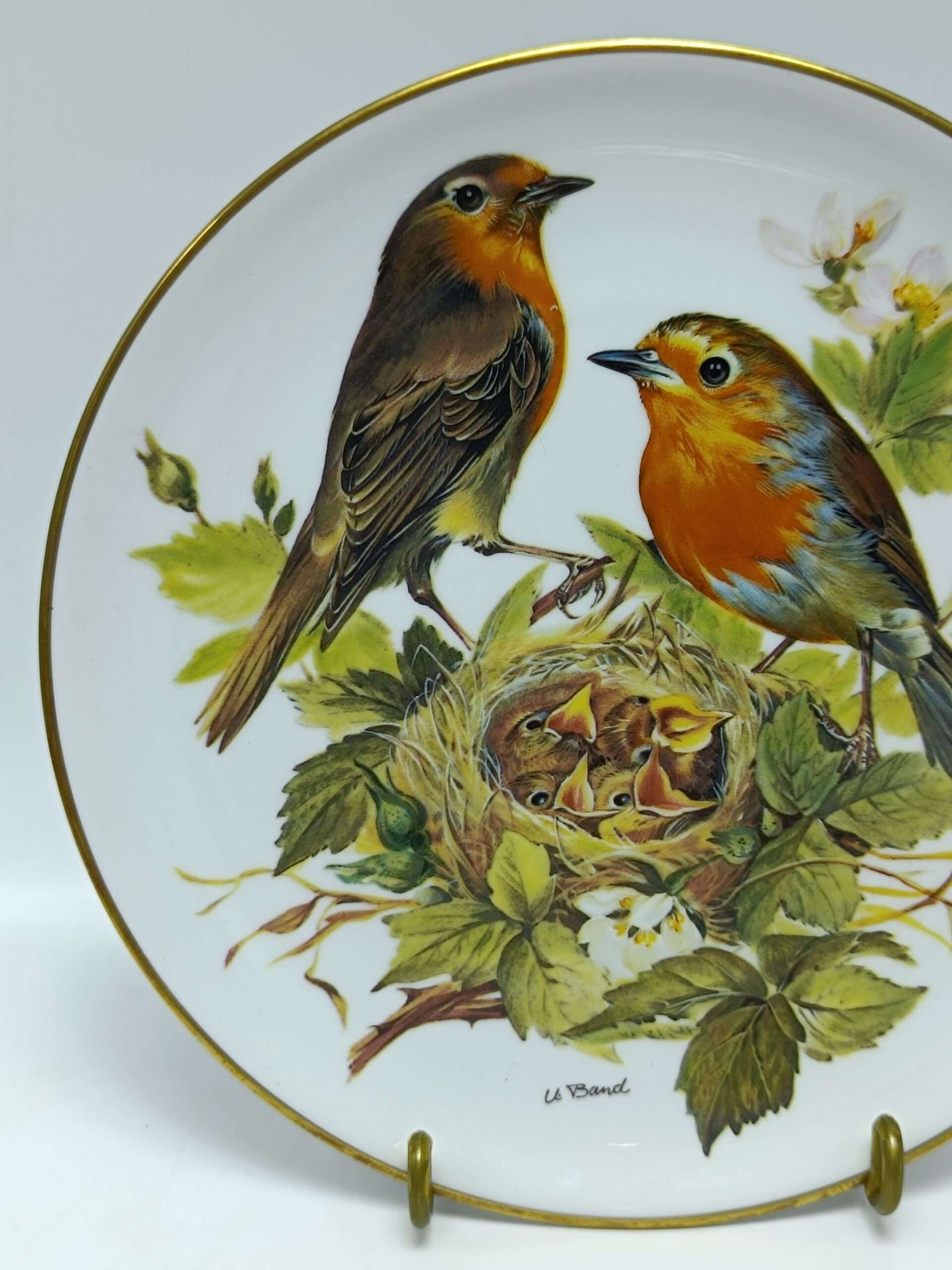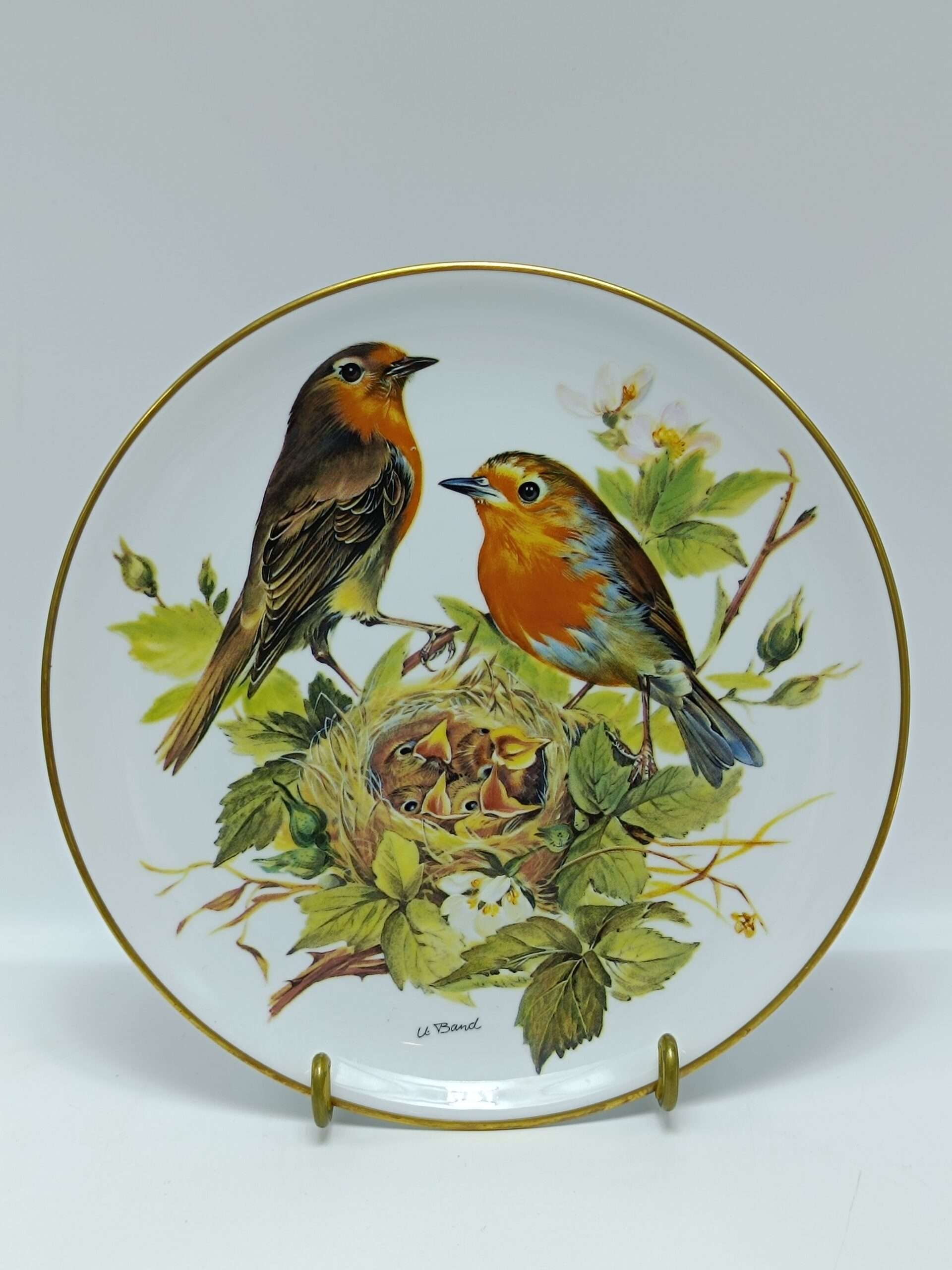 Тарелка винтажная декоративная настенная «Певчие птицы Малиновки». Tirschenreuth Ursula Band, Германия 1986 год Размер 19.5 см