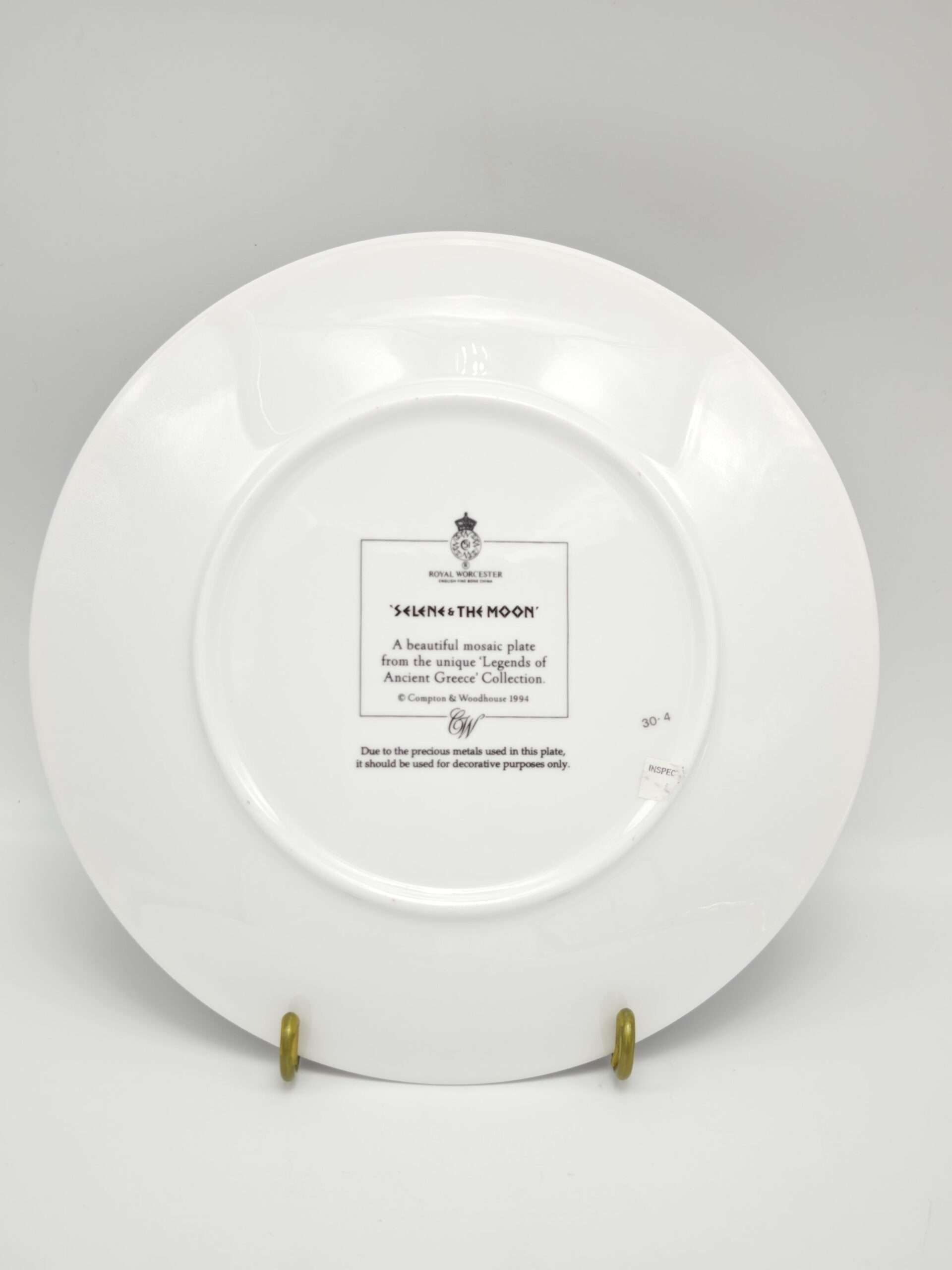 Тарелка винтажная декоративная настенная «Селена и луна». Фарфор, деколь, золочение 22 К. Royal Worcester, Англия 1994 год