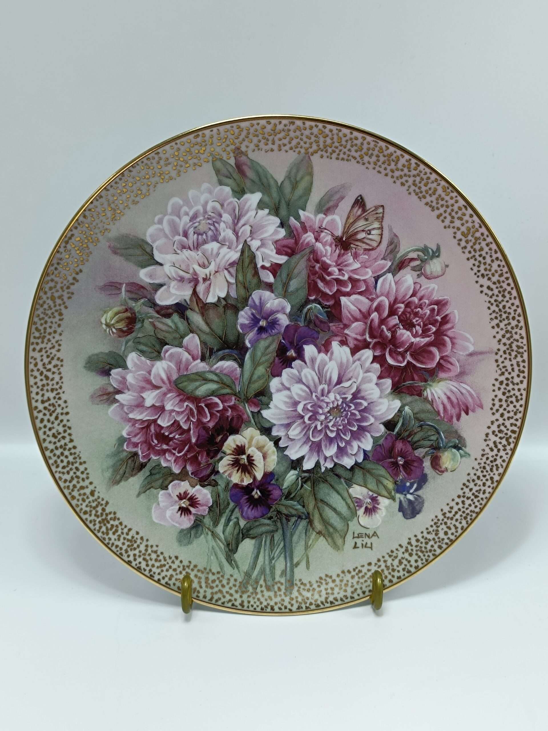 Тарелка винтажная декоративная цветы «Мелодия Георгин». Лена Лю.