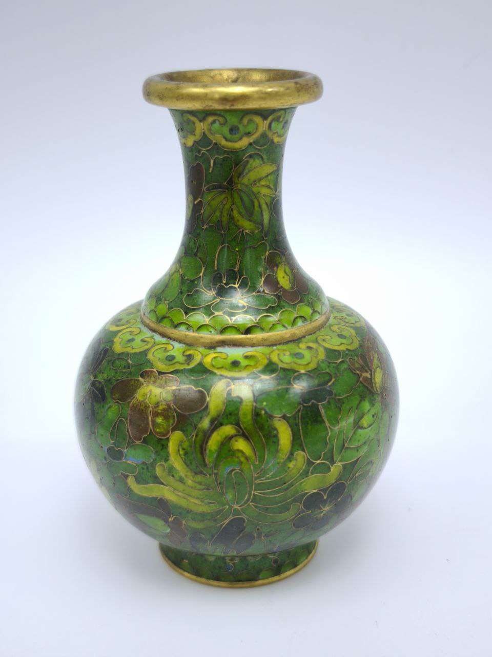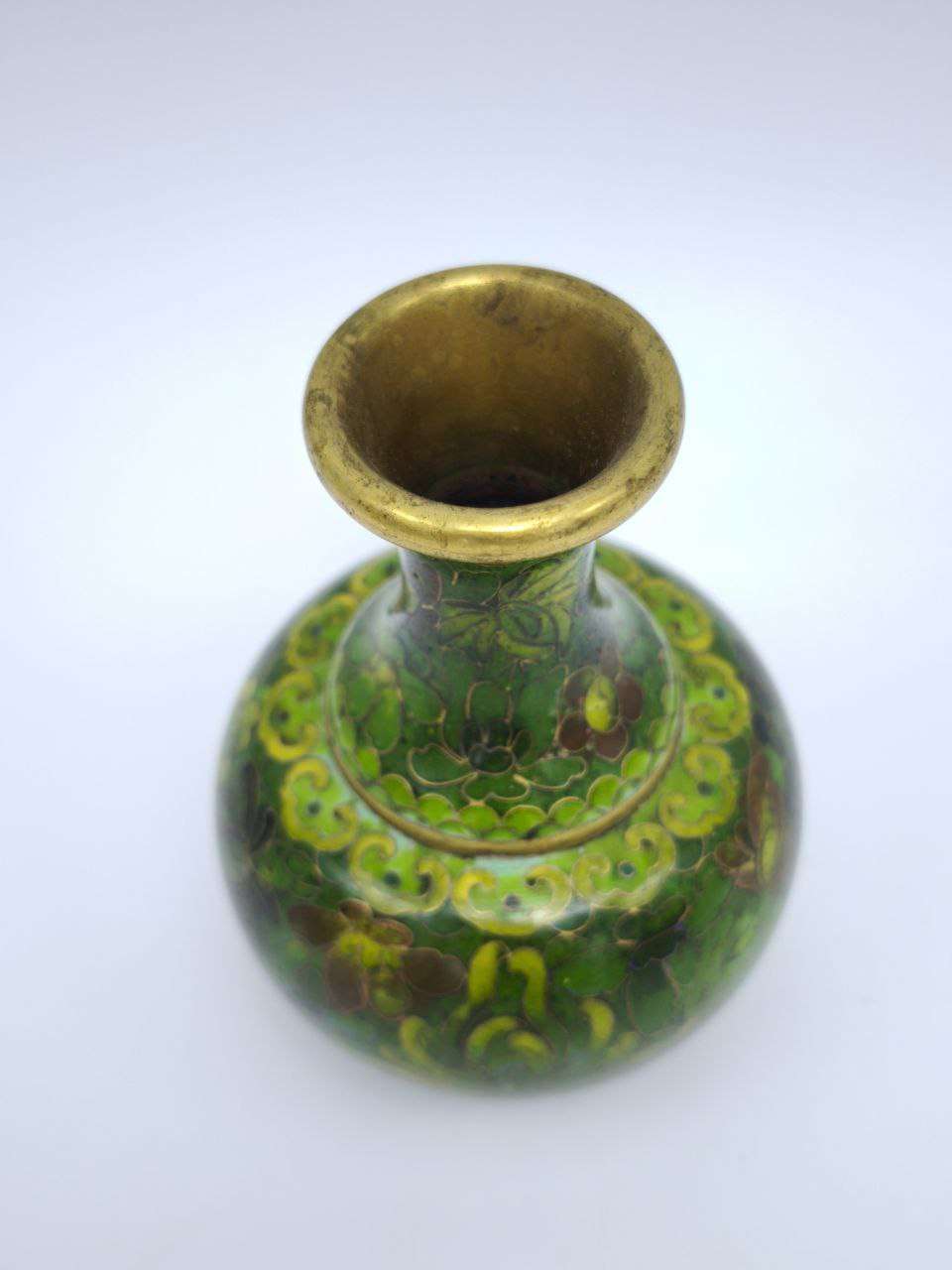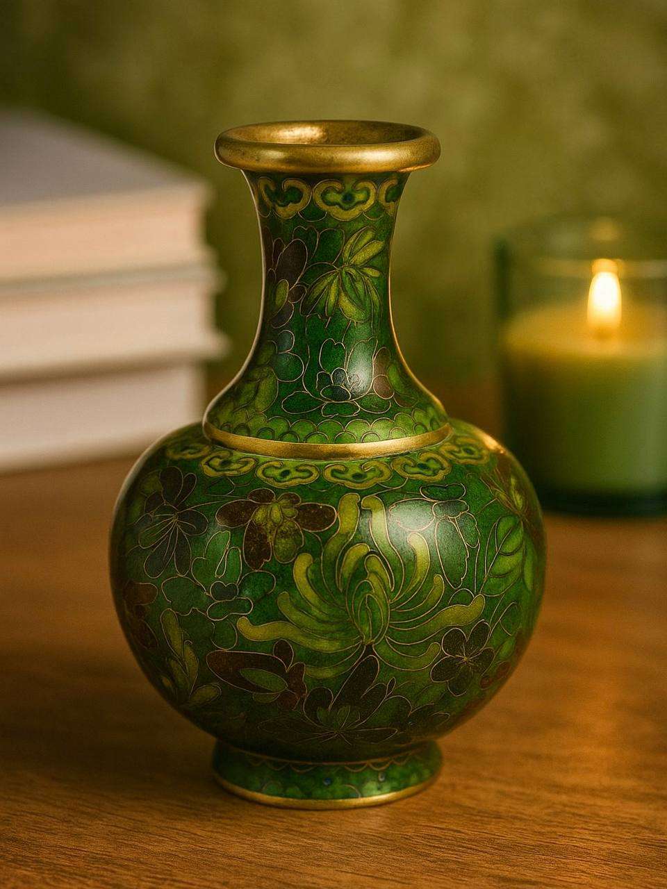 Встречайте воплощение роскоши и искусства в виде уникальной винтажной вазы, выполненной в технике клуазоне. Это невероятное изделие, насыщенное зелеными оттенками, станет не только стильным акцентом в вашем доме, но и частью вашего личного пространства, подчеркивая вашу любовь к искусству и традициям.Ваза украшена сложными вьющимися узорами и цветочными мотивами, выполненными в богатой палитре зеленых тонов. Эти цвета не просто привлекают взгляд, они создают гармоничную атмосферу, наполняя жилище природным спокойствием и красотой. Нежные линии и тонкая отделка придают вазе изящество, дополняя её золотистой обводкой, которая элегантно и аккуратно обрамляет всю композицию.Зелёные оттенки символизируют жизненную силу, обновление и природу, привнося в ваш дом атмосферу свежести и покоя. Эта удивительная ручная работа мастеров направлена на то, чтобы сделать ваш интерьер не только уникальным, но и добавить в него нотку древности, подчеркивая высокое качество исполнения и сложность техники.Клуазоне – это не только техника, а истинное искусство создания шедевров. Эта ваза является ярким представителем древнего мастерства, где каждый элемент продуман до мелочей. Она способна как украсить пространство, так и стать основой для создания уникальных композиций из живых цветов, подчеркивая их естественную красоту.Прикоснитесь к культурному наследию сквозь детали, словно созданные самой природой и завершенные человеческой рукой. Не упустите возможность добавить в вашу коллекцию этот неповторимый элемент искусства. Ваза станет неотъемлемой частью вашей жизни, возможно, даже переданной будущим поколениям как символ утонченного вкуса и культурного наследия.