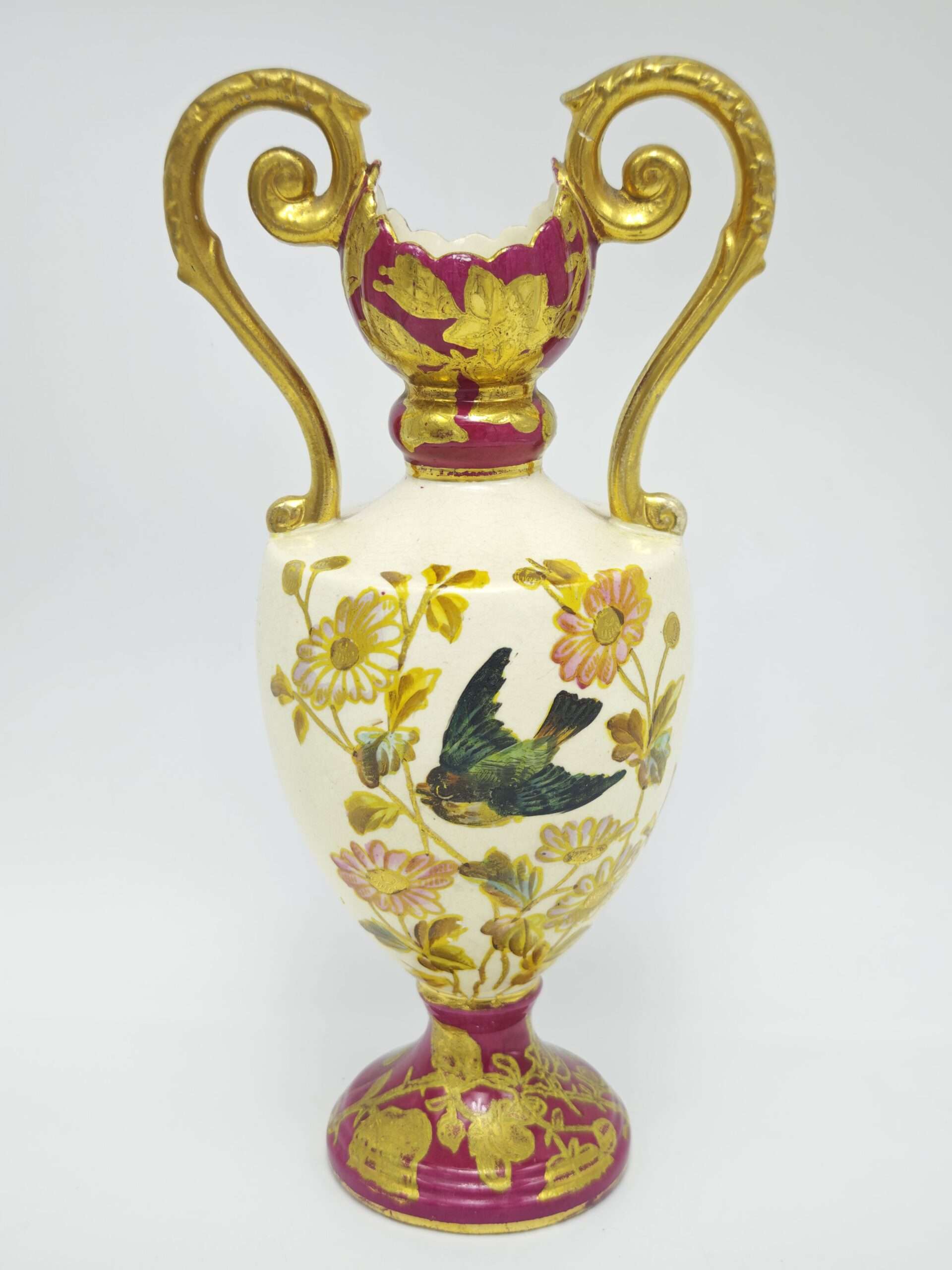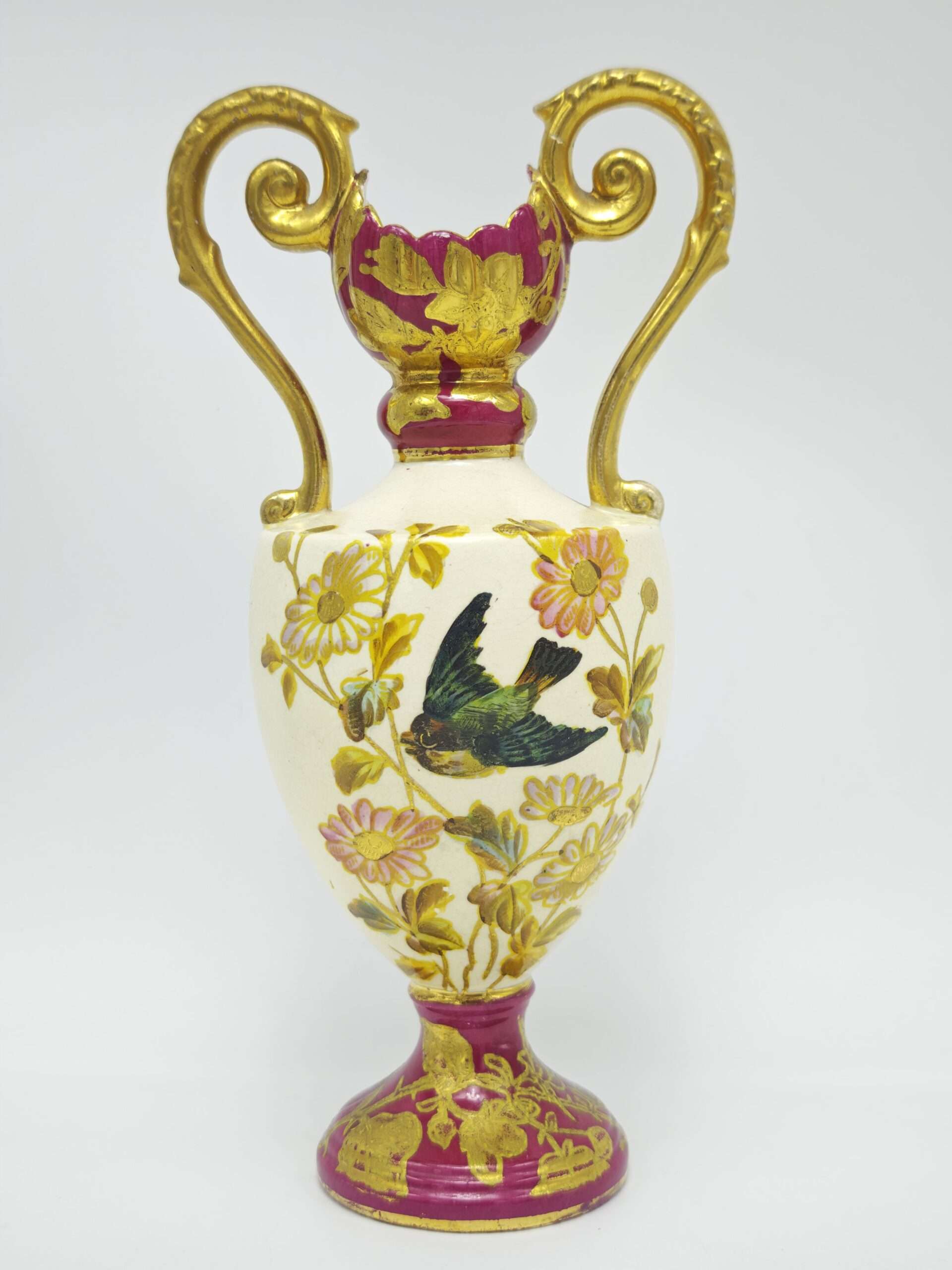 Ваза с фигурными ручками, фарфор, роспись, золочение. Англия втора половина 20 века