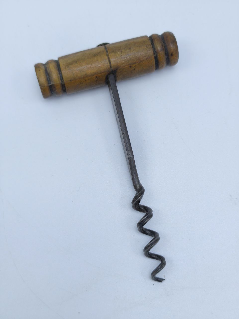 Перед вами изысканный антикварный штопор с массивной рукоятью из натурального дерева и прочной стальной спиралью. Изготовленный в Европе в начале XX века, он сохранил свой первозданный шарм и аутентичность. Такой предмет станет достойным украшением коллекции винтажной утвари и эффектным акцентом в интерьере, наполненном историей и вкусом.