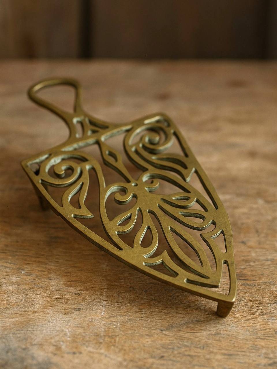 Бронзовая винтажная подставка под горячее — стильная деталь с богатой историей, дополняющая уют вашего дома. Добавьте шарм и роскошь ретро-эпохи в интерьер с этой изысканной подставкой в форме утюга. Изготовленная из благородной бронзы и выполненная в винтажном стиле, она станет не только функциональным аксессуаром, но и выразительным элементом декора. Форма старинного утюга привлекает внимание и делает подставку настоящей находкой для ценителей антикварных вещей. Бронза отличается долговечностью, устойчивостью к высоким температурам и элегантным внешним видом, который только совершенствуется со временем. Идеальна для защиты столешницы от горячей посуды, чайников или сервировочных блюд. Кроме того, подойдет как декоративный акцент — стильный элемент на полке, каминной полке или обеденном столе. Каждая подставка обладает своей небольшими индивидуальными особенностями, что делает ее по-настоящему особенной. Эта подставка станет отличным выбором для ценителей редких вещей и элегантности! Позвольте вашему дому заиграть нотами ретро-утонченности.