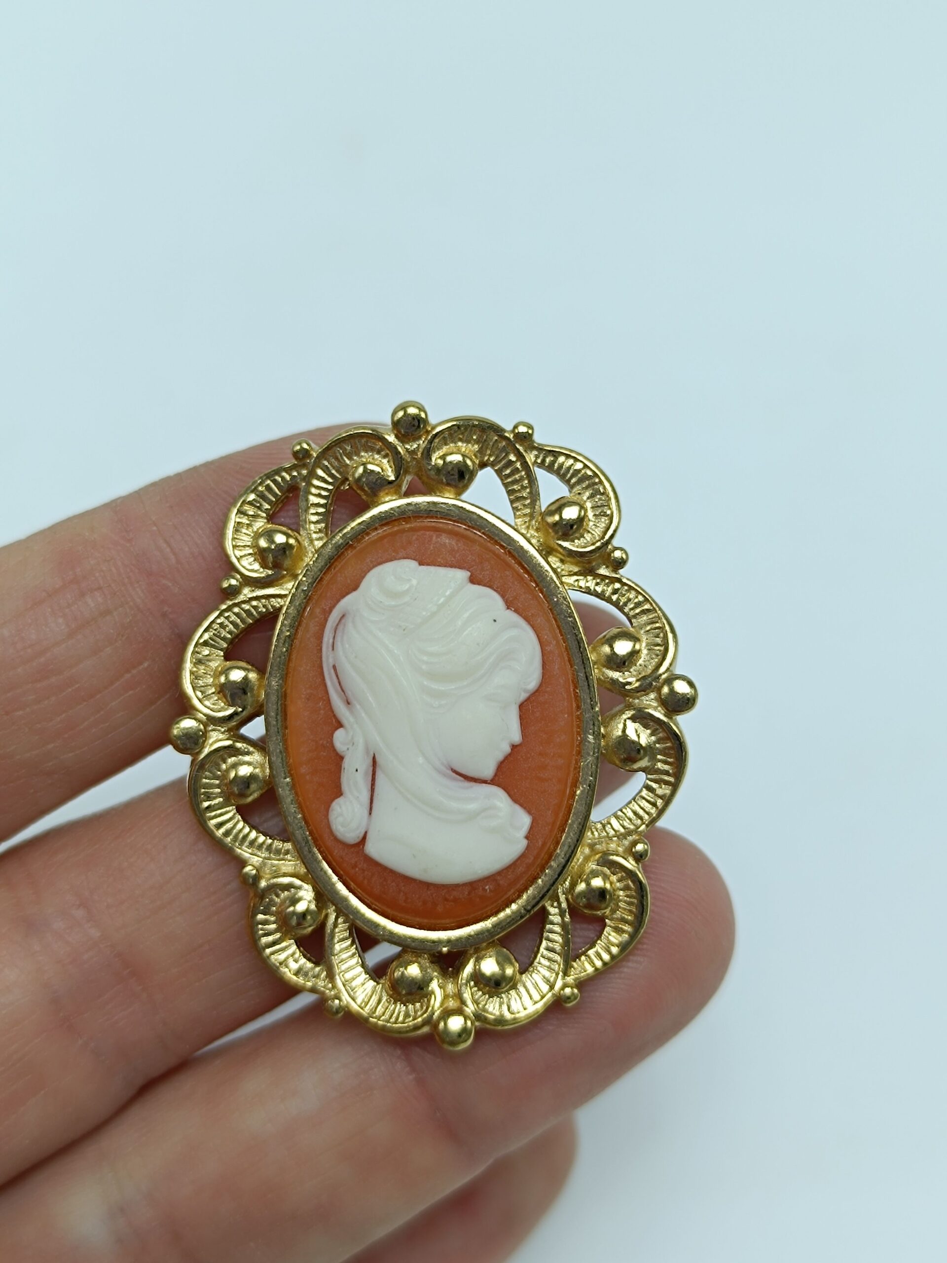 Винтажная брошь-камея, ювелирный сплав, смола. Европа вторая половина 20 века Размер 4х3 см Состояние отличное