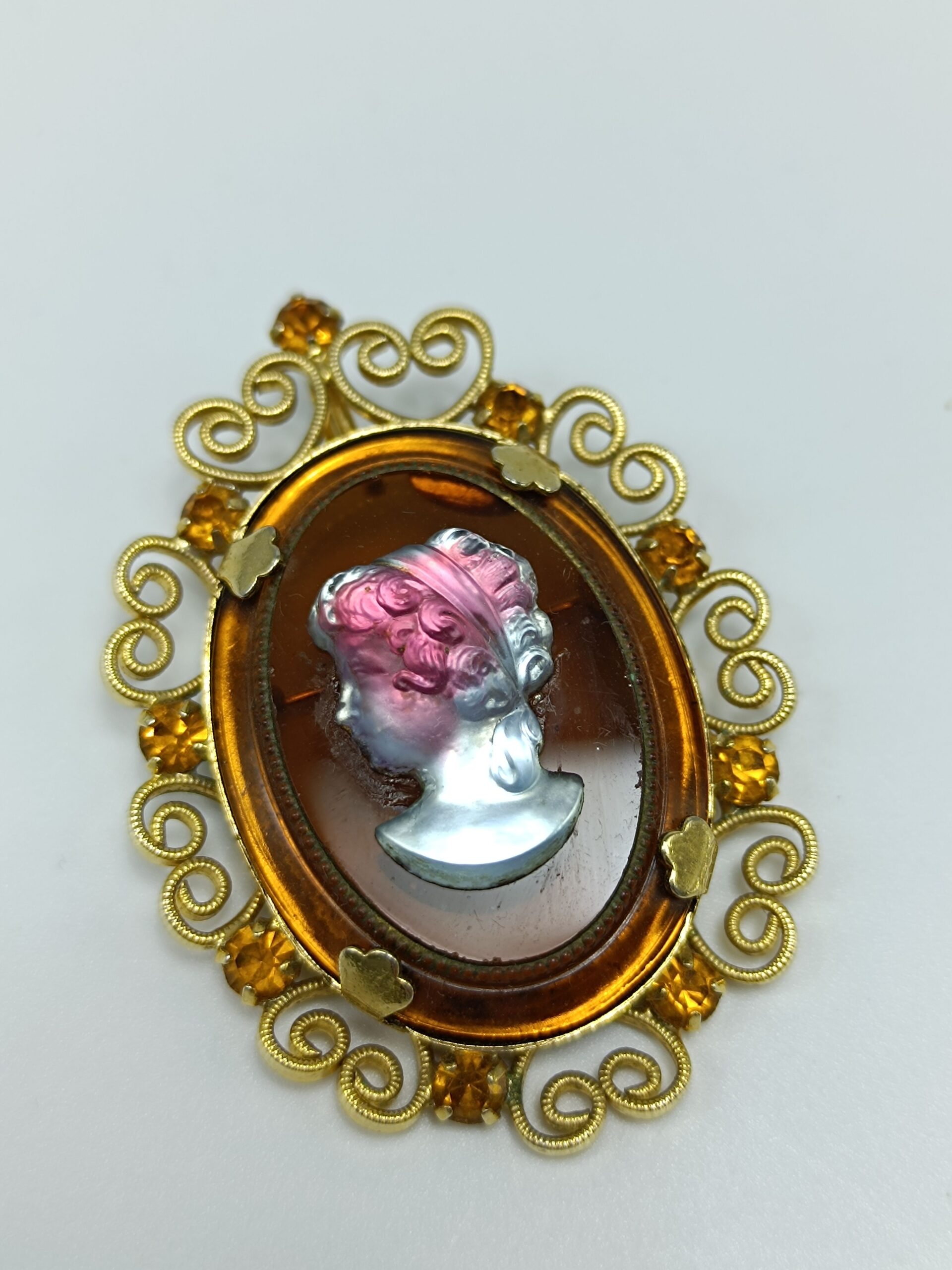 Винтажная брошь-камея, ювелирный сплав, Западная Европа вторая половина 20 века