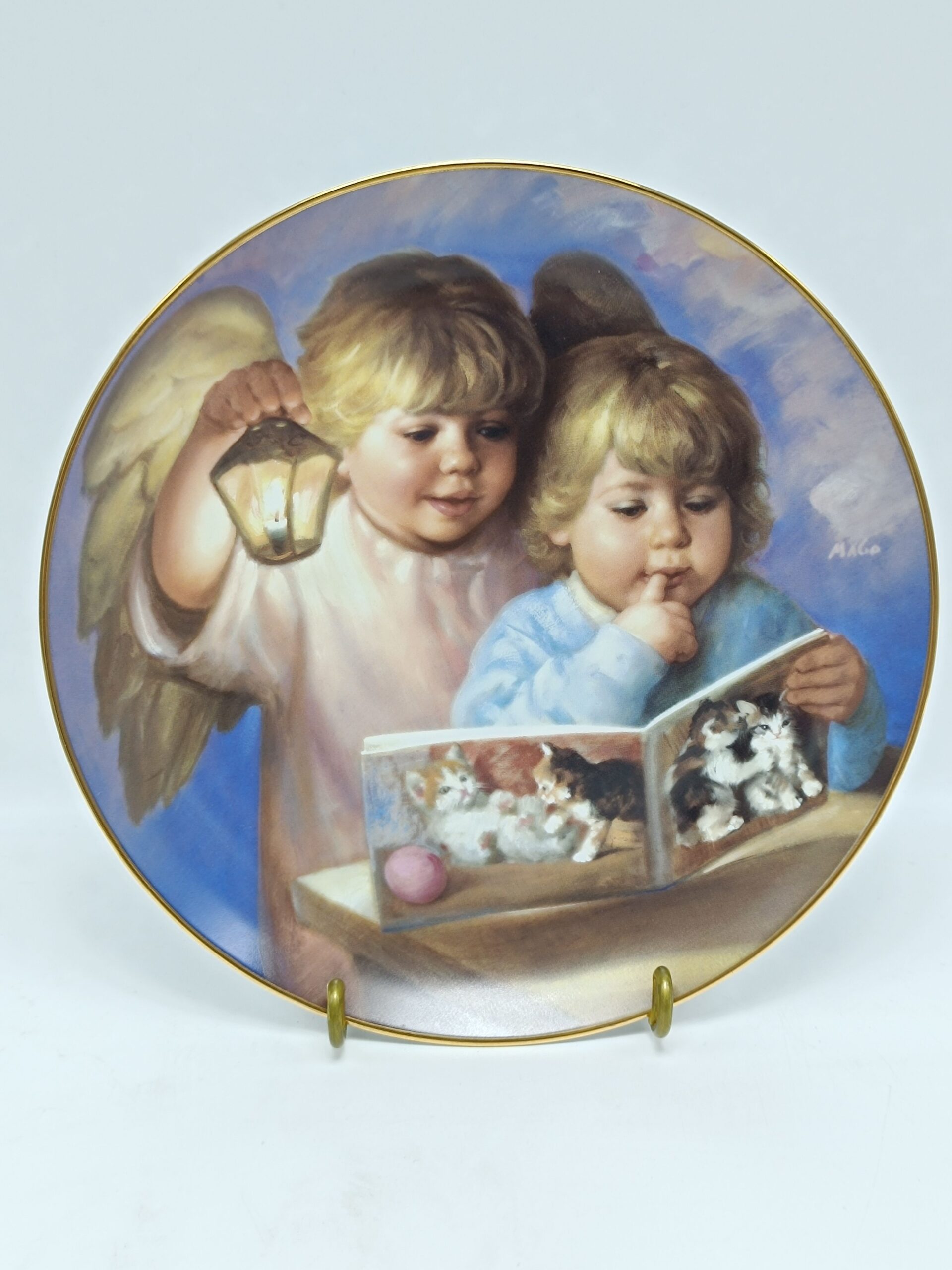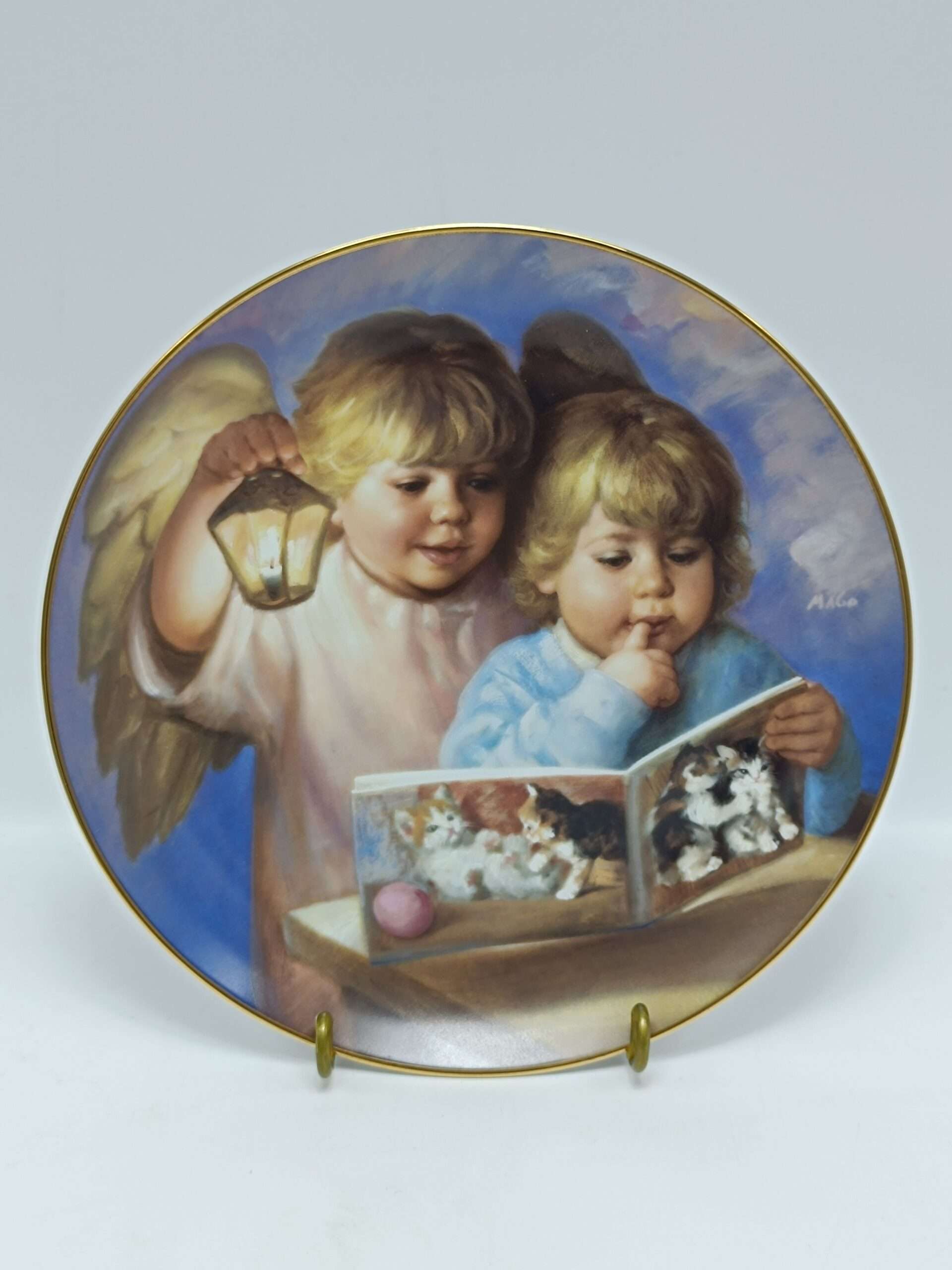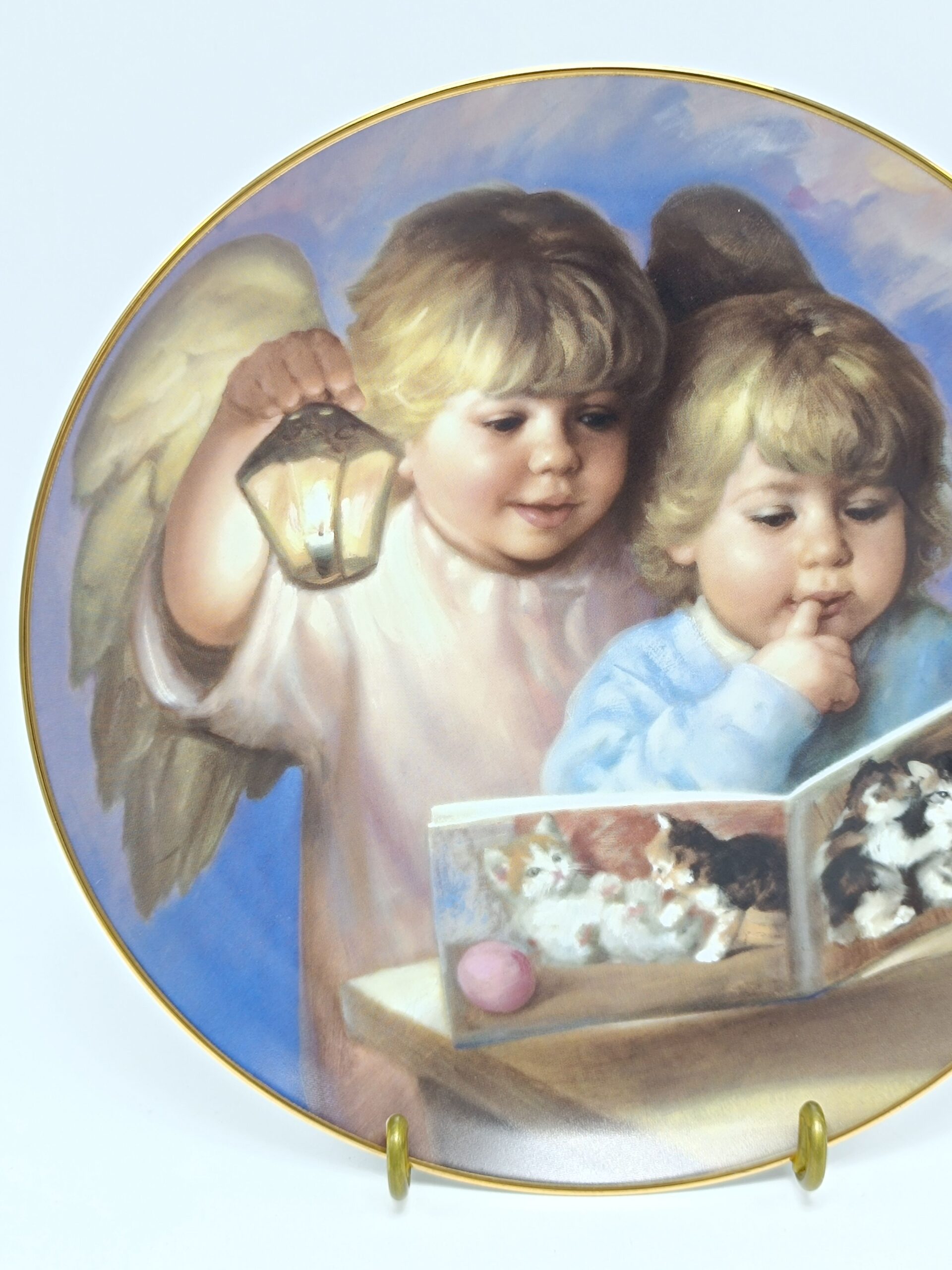 Винтажная декоративная коллекционная тарелка «Дети с ангелами хранителями».