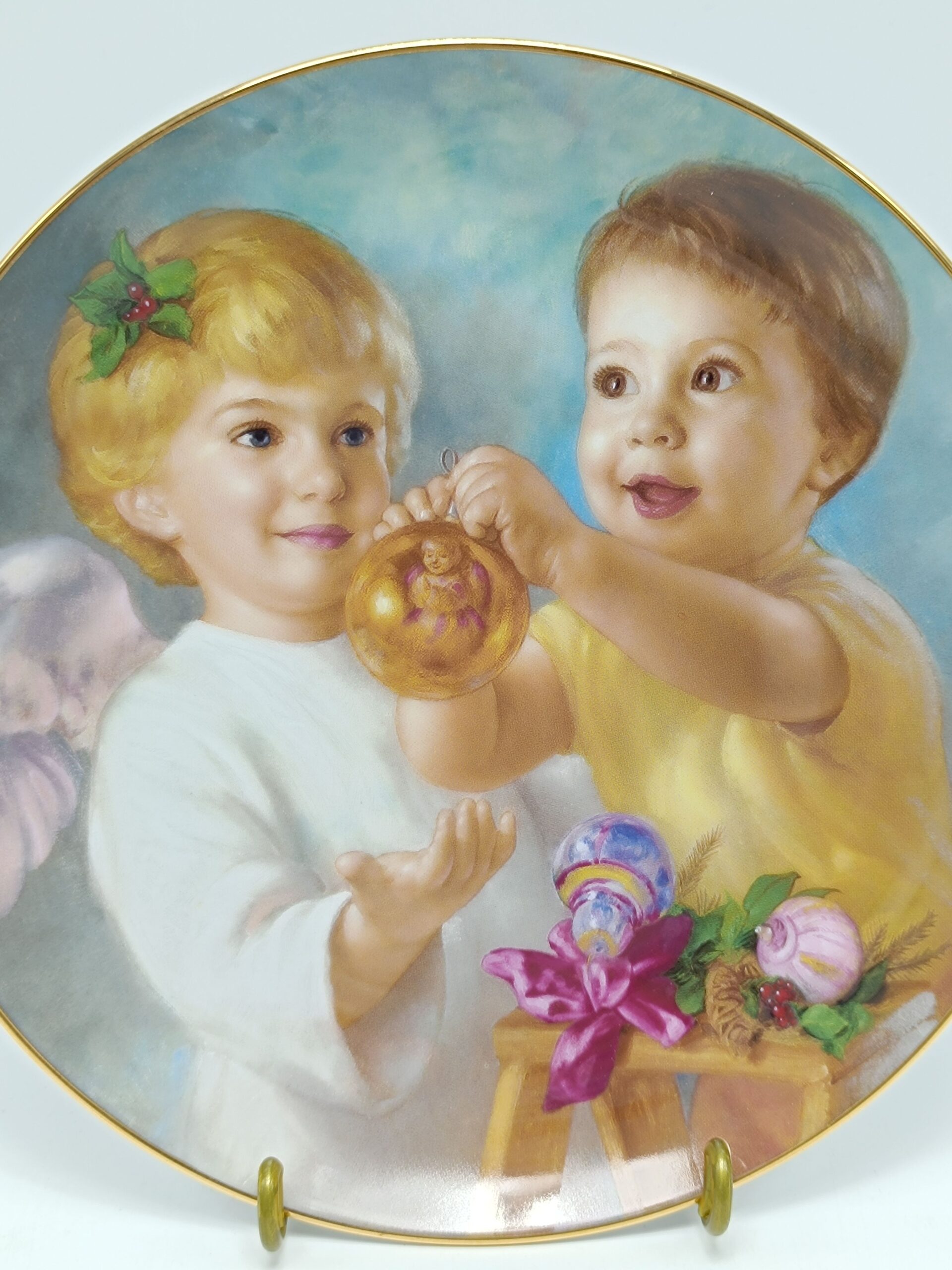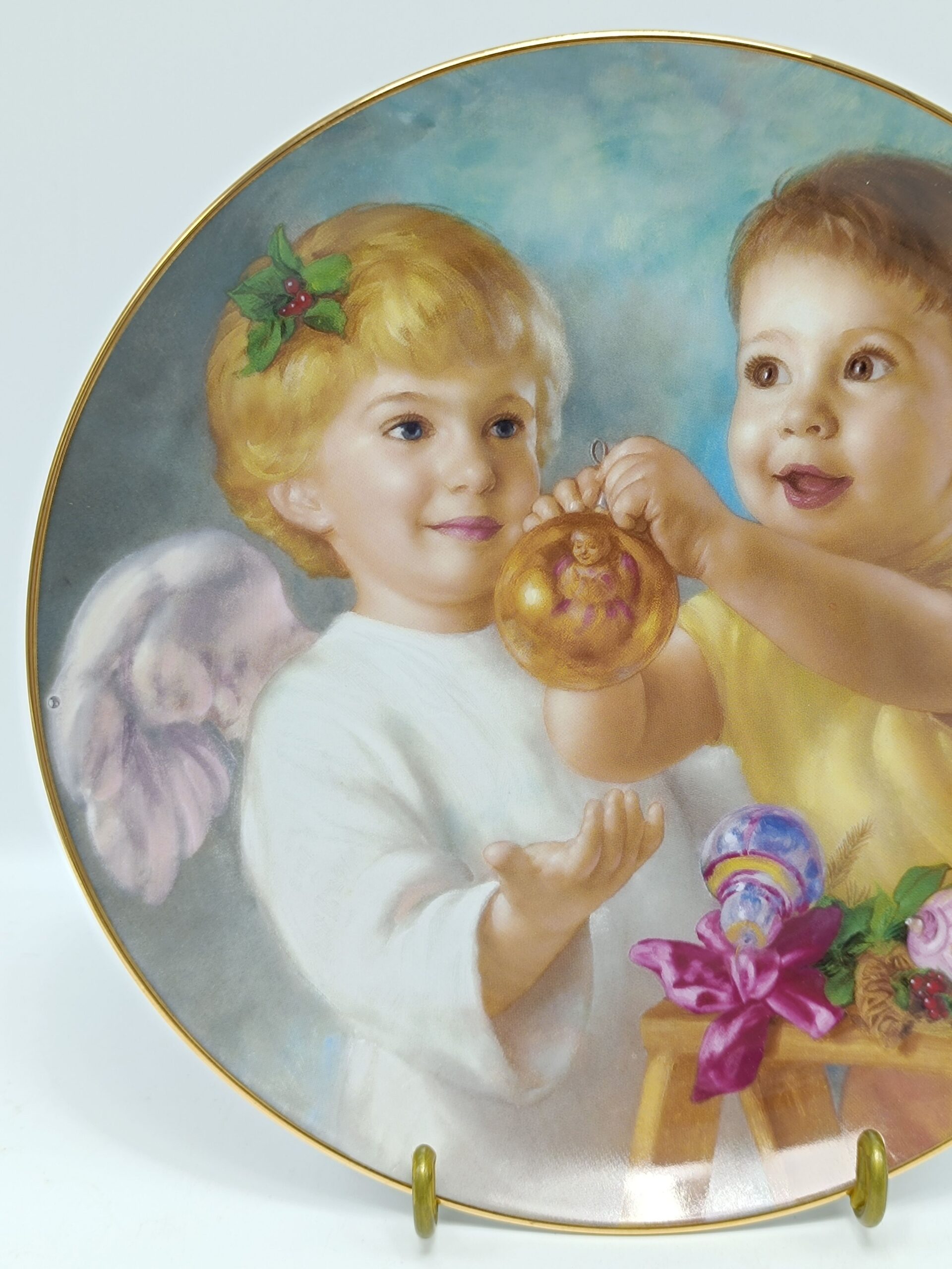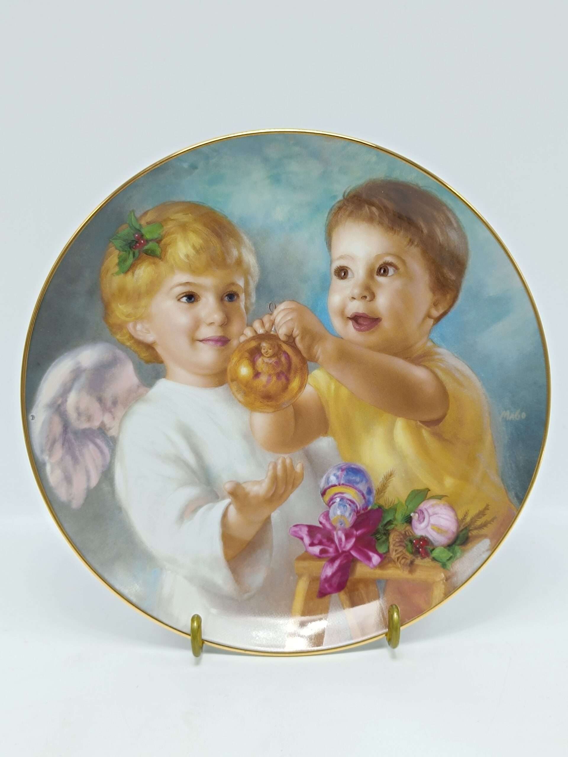 Винтажная декоративная коллекционная тарелка «Дети с ангелами хранителями».