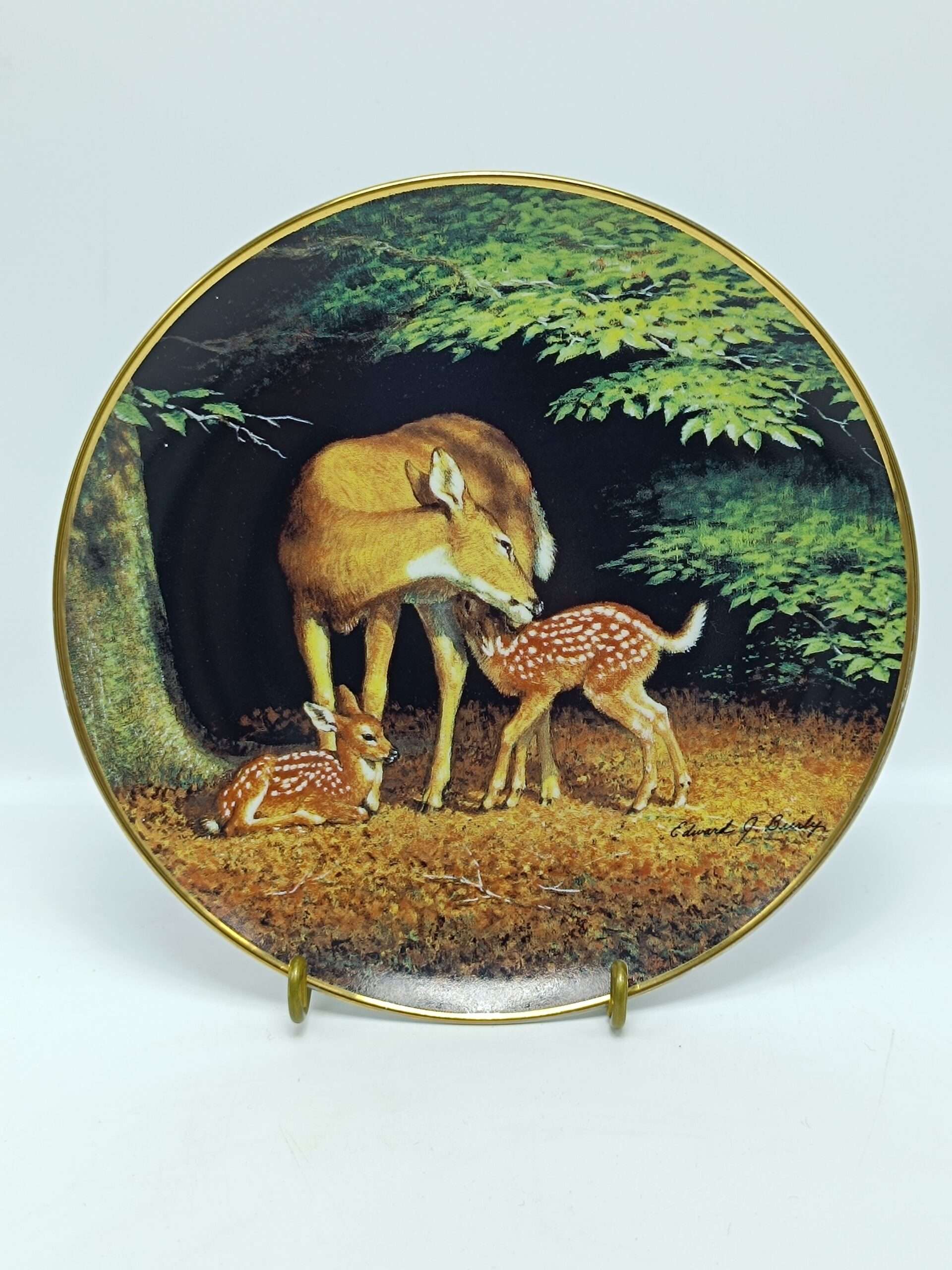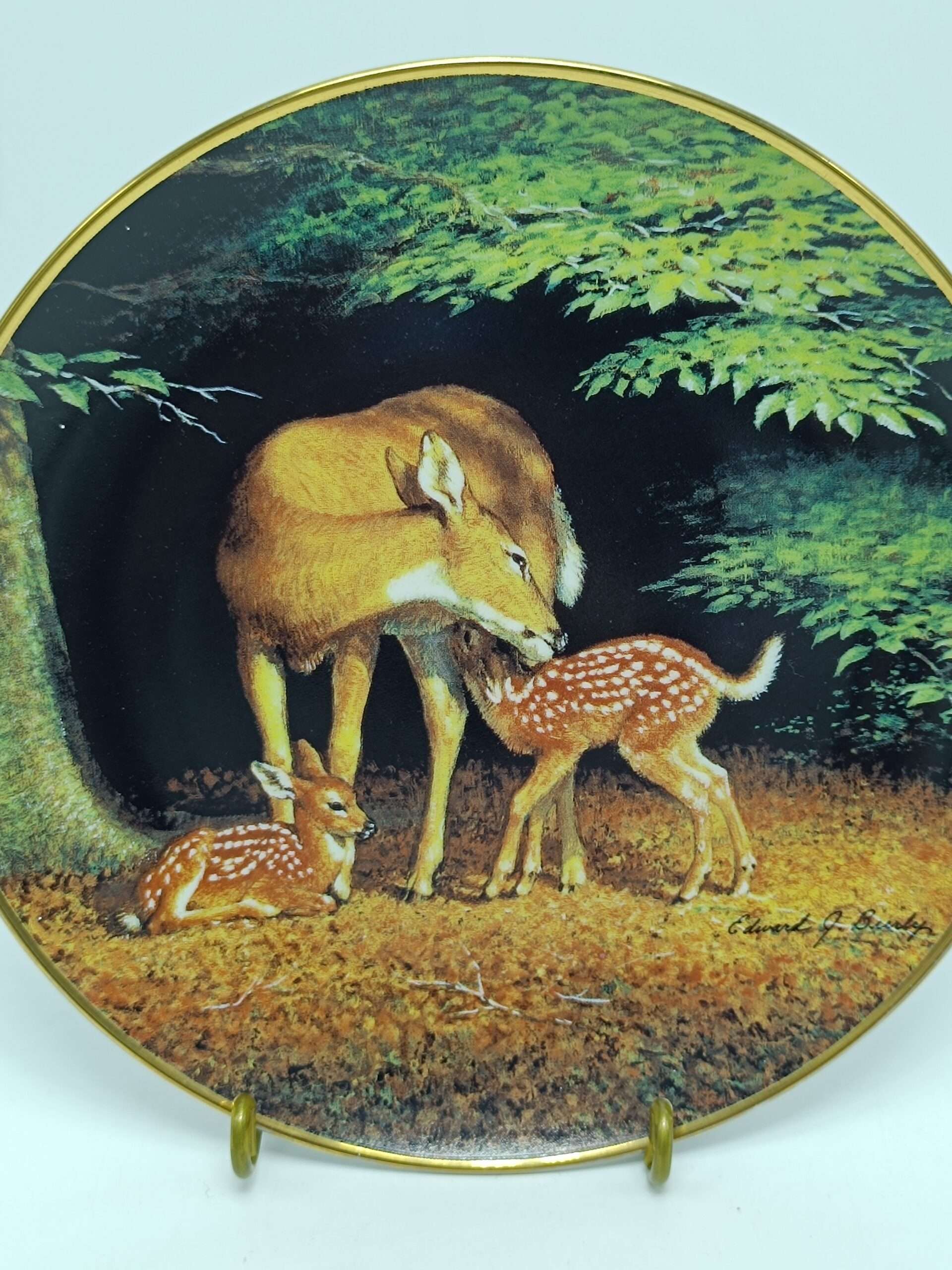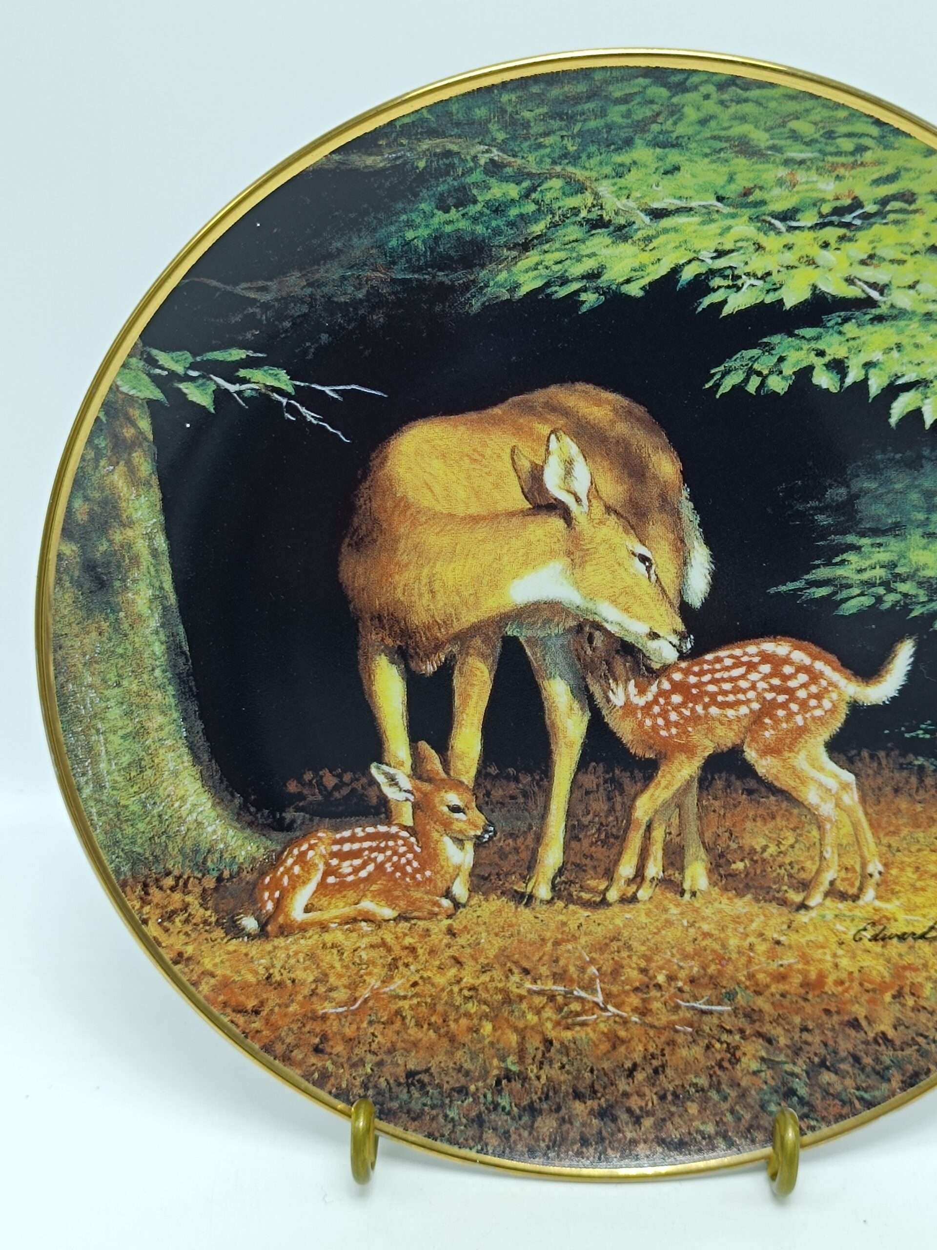 Винтажная декоративная коллекционная тарелка «Счастливый час. Олени». Фарфор, деколь. Диаметр 20. 5 см