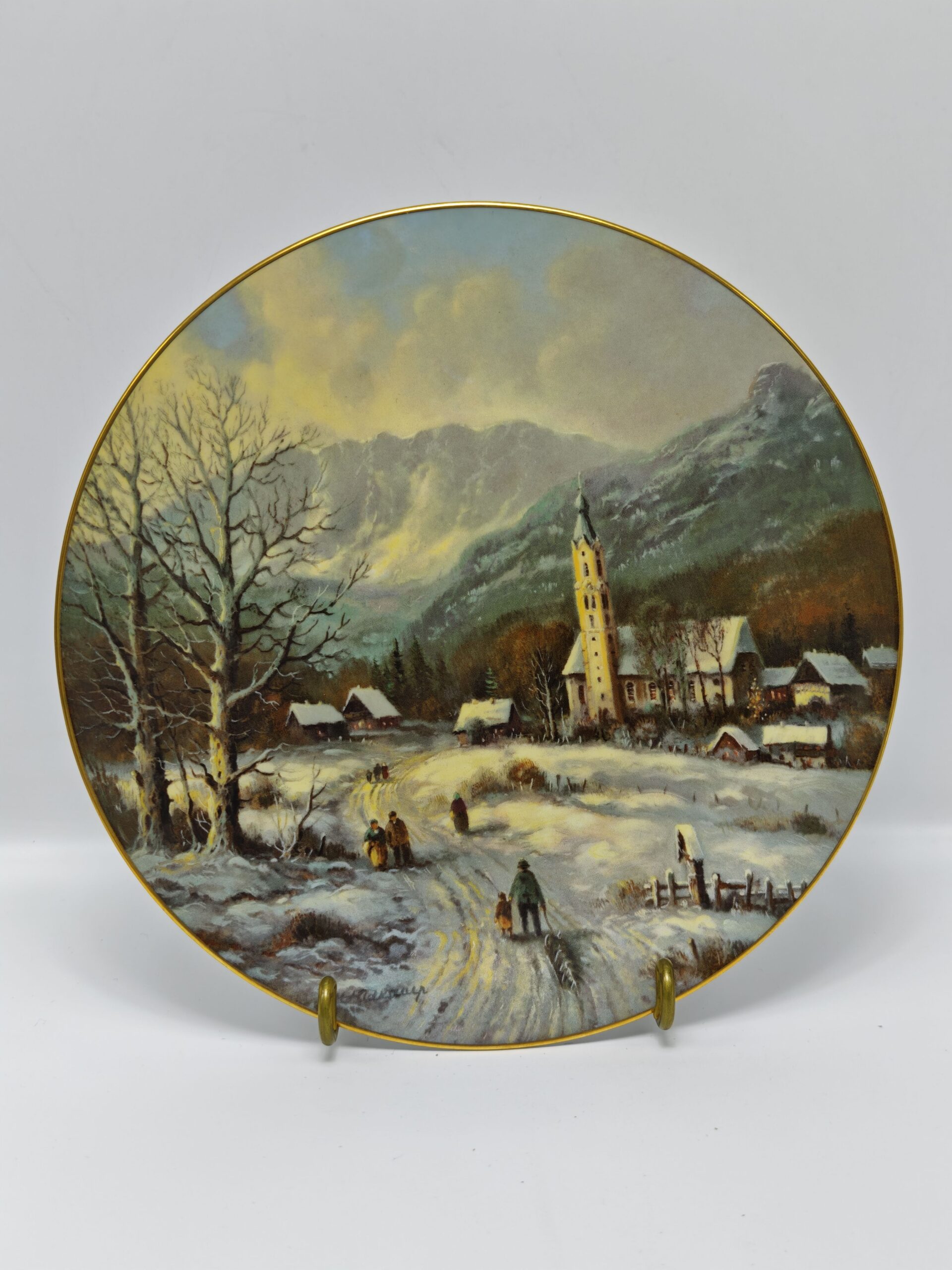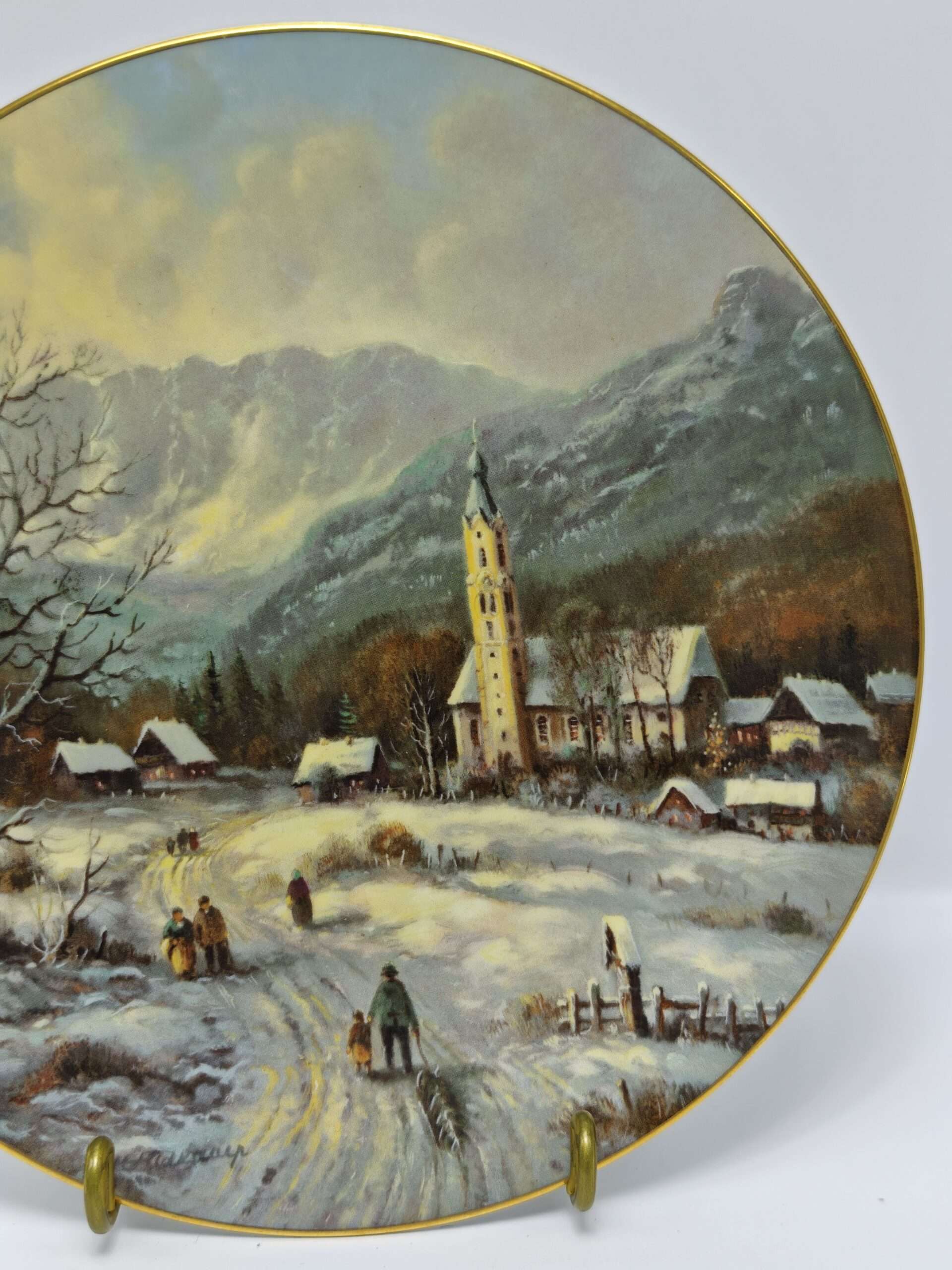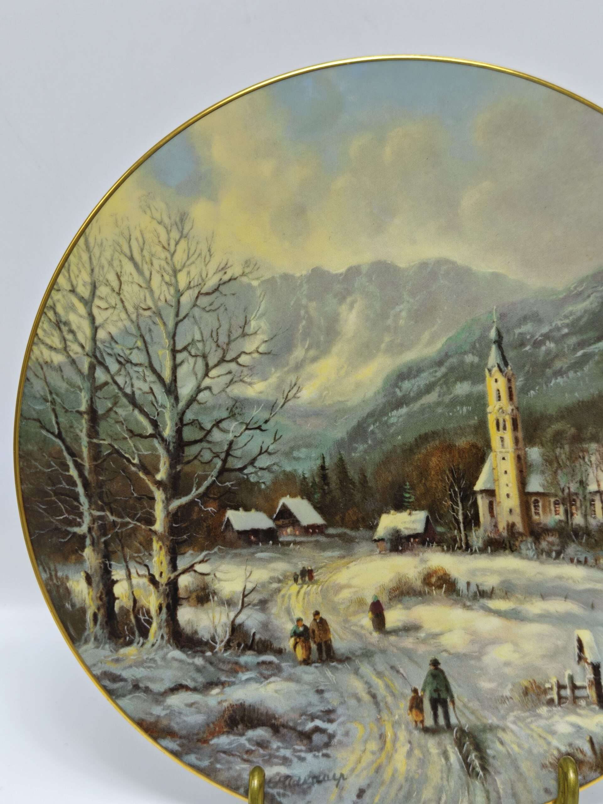 Винтажная декоративная настенная тарелка «Зима. Пейзаж. Рождество».