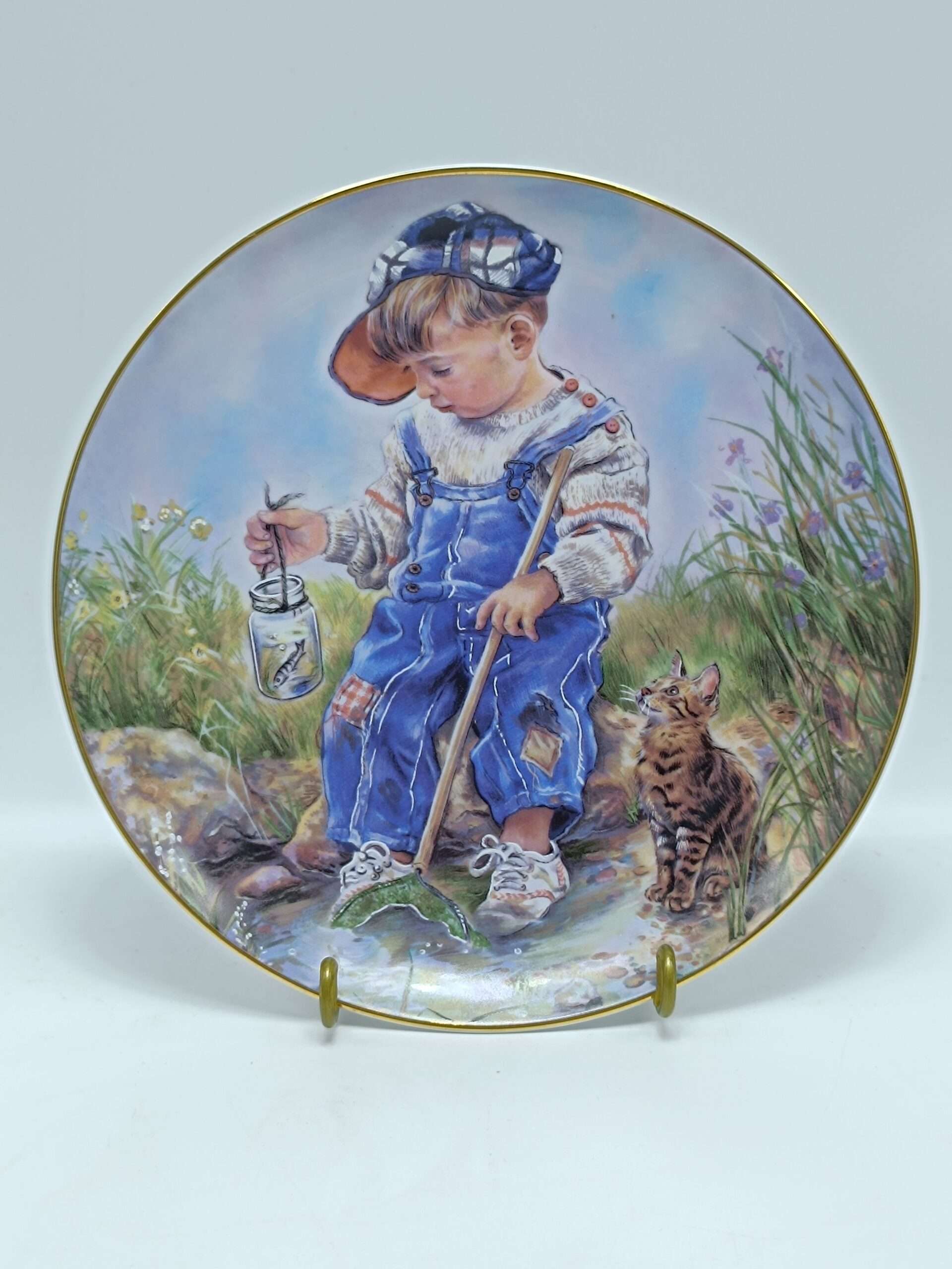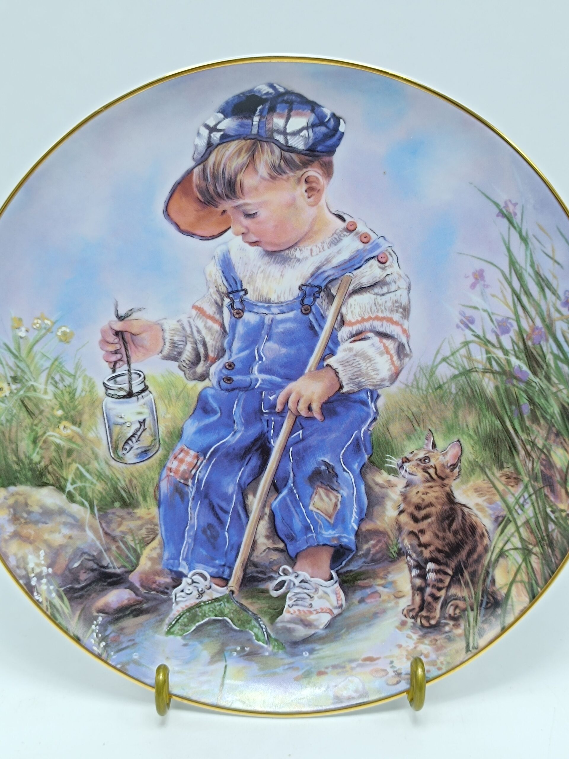 Винтажная декоративная тарелка «Дети. Мальчик с котенком на рыблке» Фарфор. Christine Haworth LEONARDO. Англия Диаметр 21 см