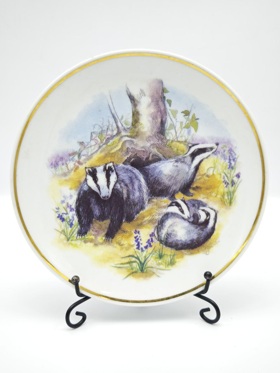 Главная // Интернет-магазин // Новинки // Винтажная декоративная тарелка "Дикая природа Британии: Барсуки" от Reader's Digest, 1970-е. Фарфор. Позолота.