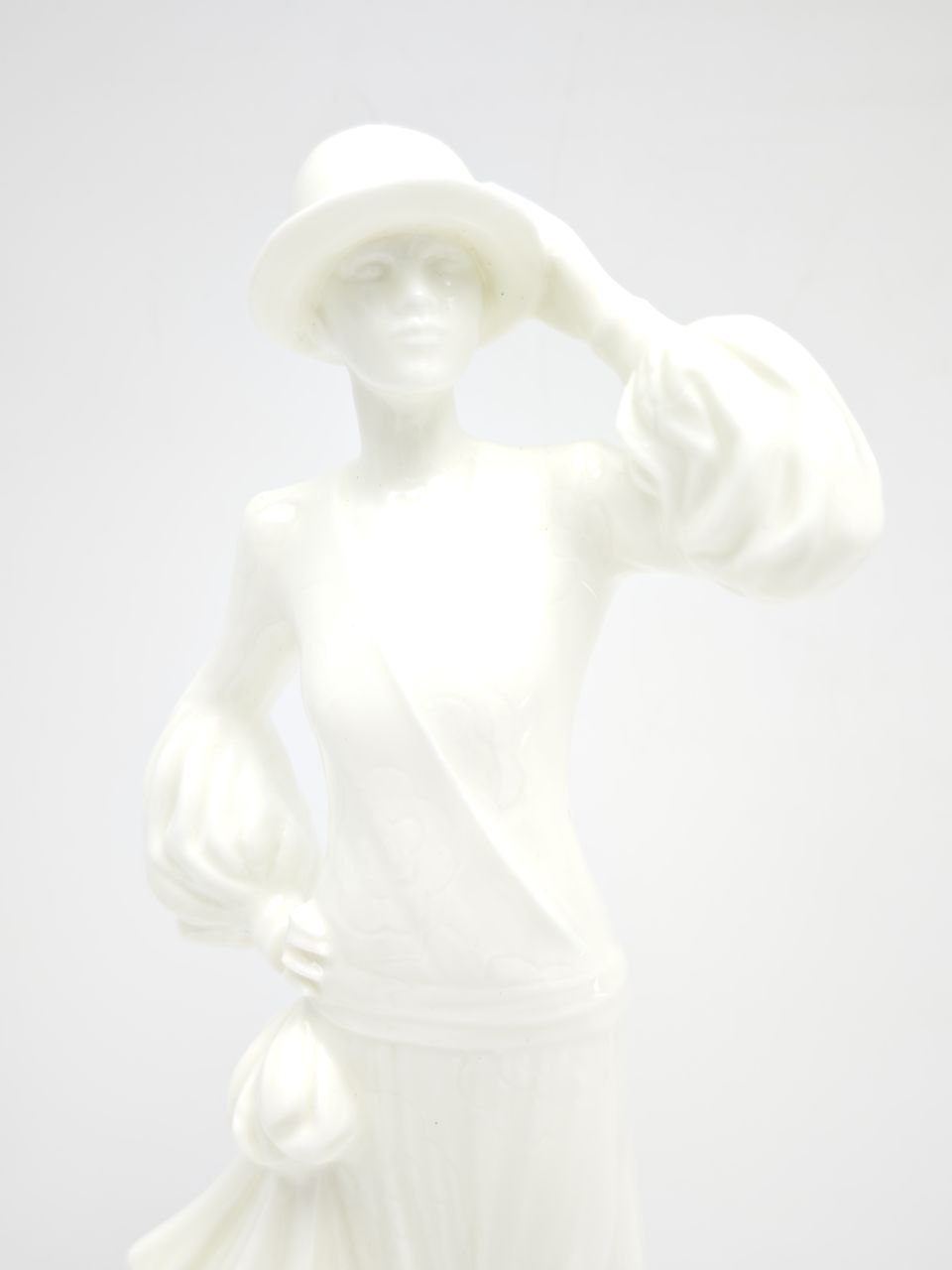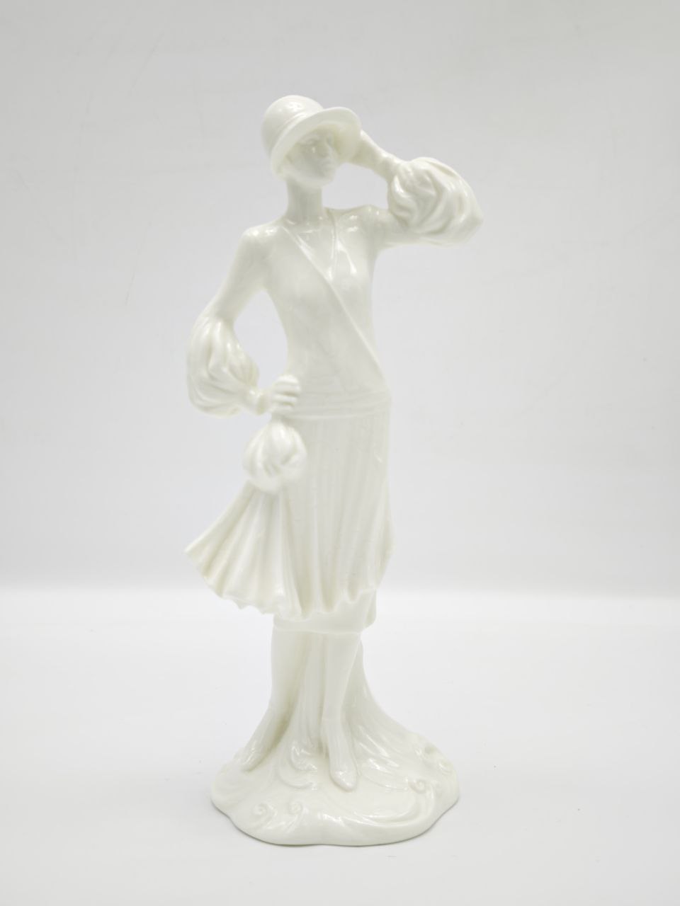 Представляем вашему вниманию редкую и изысканную винтажную фарфоровую статуэтку “Энни 1927”, выпущенную в рамках легендарной коллекции “The 1920s Vogue Collection” британским брендом Royal Worcester. Эта статуэтка — не просто предмет декора, а настоящий артефакт эпохи джаза, ар-деко и безудержного оптимизма двадцатых годов прошлого века. Ее создание было поручено мастерам Compton & Woodhouse Ltd, чья подпись и дата выпуска — 1992 год — красуются на оборотной стороне, что делает ее еще более ценной для коллекционеров.Статуэтка выполнена из тончайшего костяного фарфора, который придает ей неповторимый блеск и изящество. Фигурка изображает молодую женщину, воплощающую дух “flapper girl” — свободолюбивой, стильной и уверенной в себе. Она одета в платье с плиссированной юбкой, которое идеально передает динамику движения, а ее поза — одна рука на бедре, другая придерживает шляпку — полна грации и женственности. Каждая деталь, от складок ткани до изгиба рук, проработана с невероятным вниманием к деталям, что является отличительной чертой изделий Royal Worcester.Созданная в 1992 году, эта статуэтка является частью ограниченной серии, посвященной культурному наследию 1920-х годов, и представляет собой не только художественную ценность, но и историческую. Она станет центральным элементом в интерьере в стиле ар-деко, ретро или даже современного минимализма, добавляя ему нотку утонченности и истории. Такой предмет идеально подойдет в качестве подарка для ценителей антиквариата, любителей моды или коллекционеров фарфора.Изделие находится в отличном состоянии, без видимых повреждений или сколов. Его можно использовать как самостоятельный элемент декора или включить в композицию с другими предметами того же периода. Это не просто статуэтка — это история, застывшая в фарфоре, напоминание о времени, когда мир был полон надежд и новых возможностей. Приобретите этот уникальный экземпляр, чтобы сделать свой интерьер по-настоящему особенным и наполненным смыслом.
