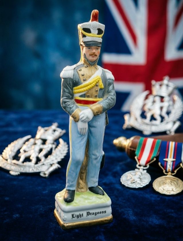 Ручная роспись и позолота подчёркивают качество исполнения. Отличный экземпляр для коллекционеров военной миниатюры и ценителей британской кавалерии.