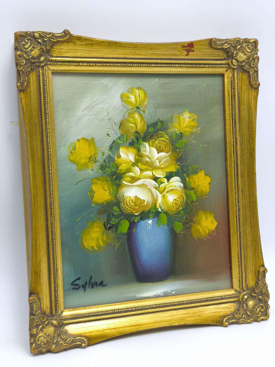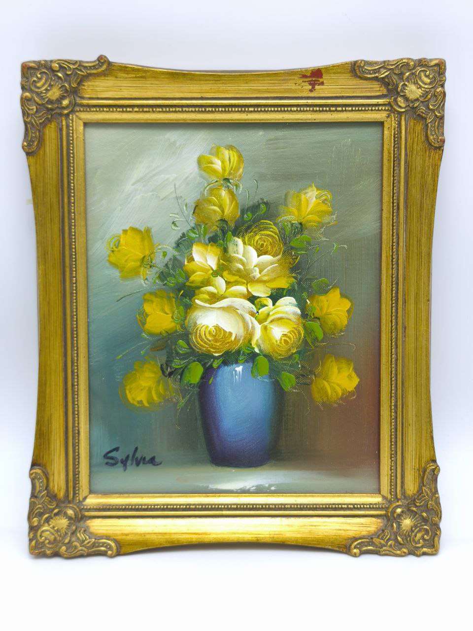 Представляем вашему вниманию уникальную винтажную картину маслом на холсте «Букет жёлтых роз в синей вазе», размер 32х27 см, выполненную в неповторимом стиле второй половины XX века. Этот предмет искусства станет идеальным дополнением вашего интерьера, привнеся в него утонченную атмосферу и ретро-шарм.Картина изображает великолепный букет жёлтых роз, которые символизируют радость, счастье и дружбу. Искусно выполненные мазки и изящная техника художника, подписавшего работу как «Sylva», создают эффект объемности и глубины, подчеркивая мастерство исполнения.Синяя ваза, в которую помещен букет, ставит яркий акцент на произведении, приглашая смотреть из любой точки комнаты. Контраст синего и жёлтого дополняет художественную композицию, придавая ей гармоничность и уникальность. Оттенки зеленого листвы создают ощущение свежести и естественности, каждый элемент картины выполнен с вниманием к деталям.Рама картины, выполненная из дерева с изысканным золочением, подчеркивает её классический стиль и делает произведение настоящей достопримечательностью в вашем доме. Выдержанная в традициях классического декоративного искусства, рама добавляет картине особую значимость, придавая ей завершенный и законченный вид.Картина станет превосходным акцентом в любом интерьере, будь то традиционный, современный или ретро. Она способна украсить гостиную, спальню или кабинет, добавляя нотки изысканности и привлекательности.Этот предмет искусства будет отлично смотреться в коллекции ценителей живописи, а также станет запоминающимся подарком для любого любителя искусства. Исключительный стиль исполнения не оставит равнодушным даже самого искушенного зрителя.Погрузитесь в мир искусства и насладитесь каждым мазком выдающегося мастера, чья работа сохранит свою актуальность и оставит отпечаток в сердцах на долгие годы.