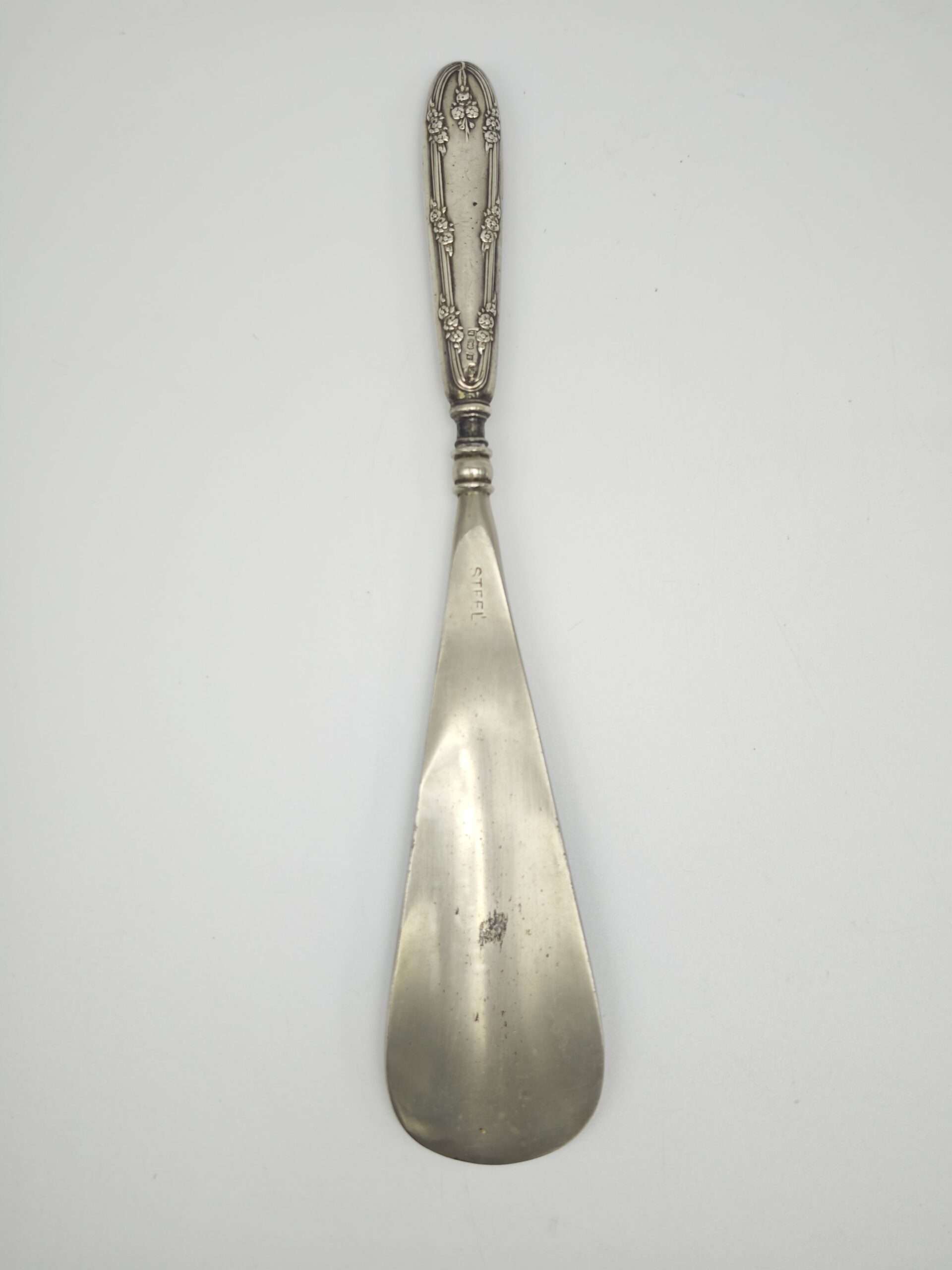 Винтажная ложка , рожок для обуви. Серебро. Сталь. Англия 1940 года Длина 21 см