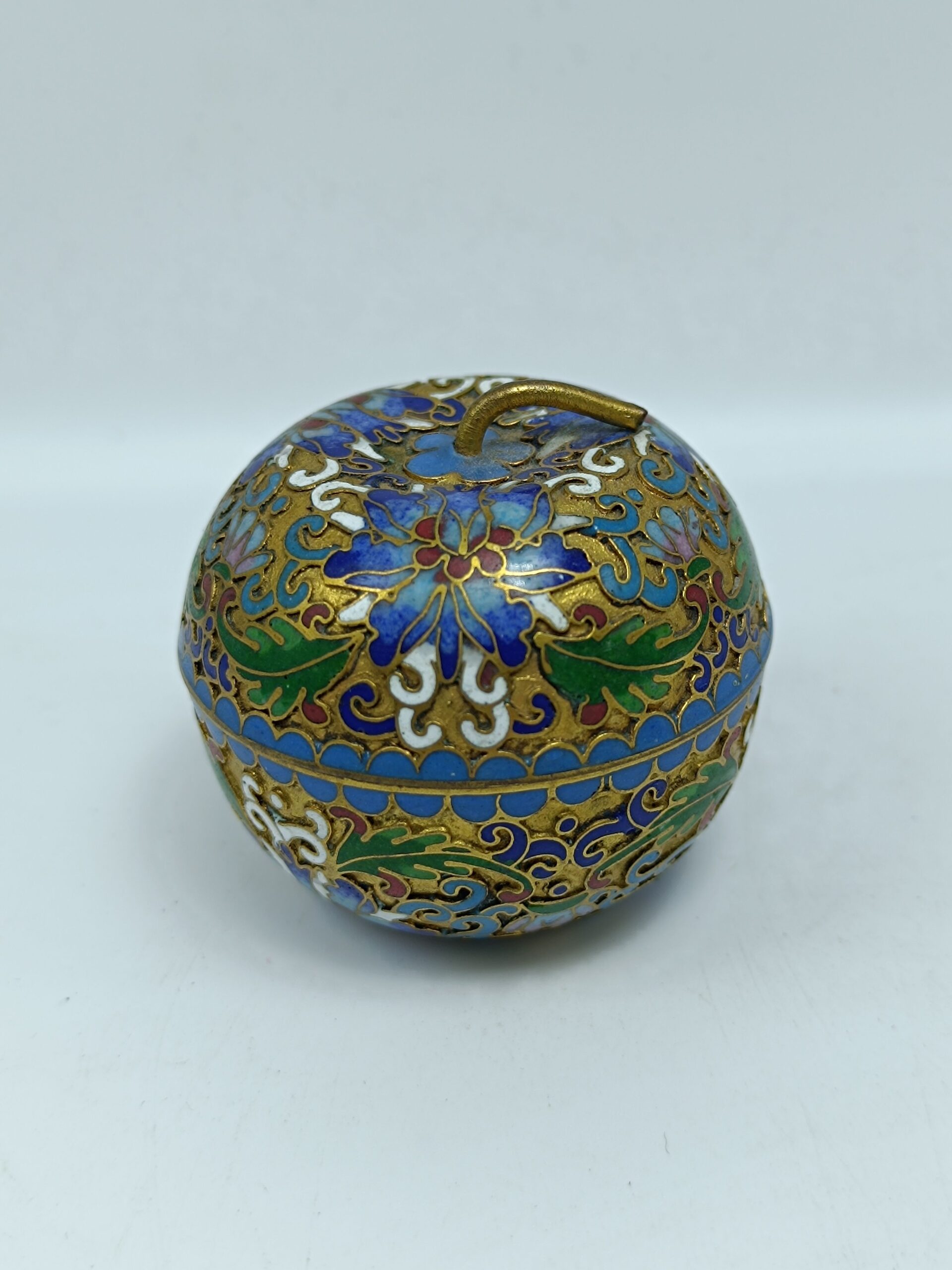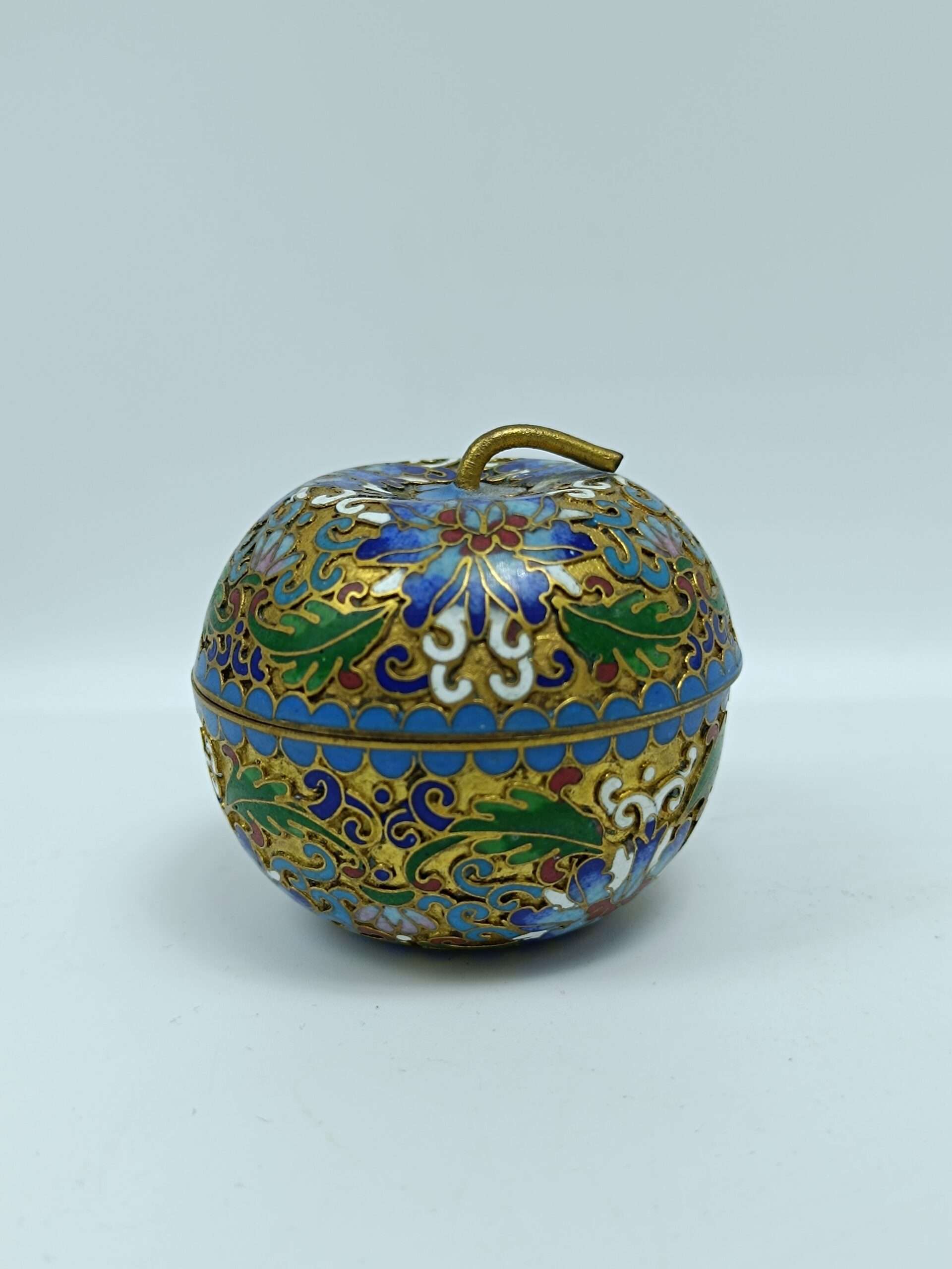 Винтажная миниатюрная шкатулка в виде яблока. Эмаль клуазоне. 1950-1980 гг. Размер 5.5х4.5 см Состояние очень хорошее
