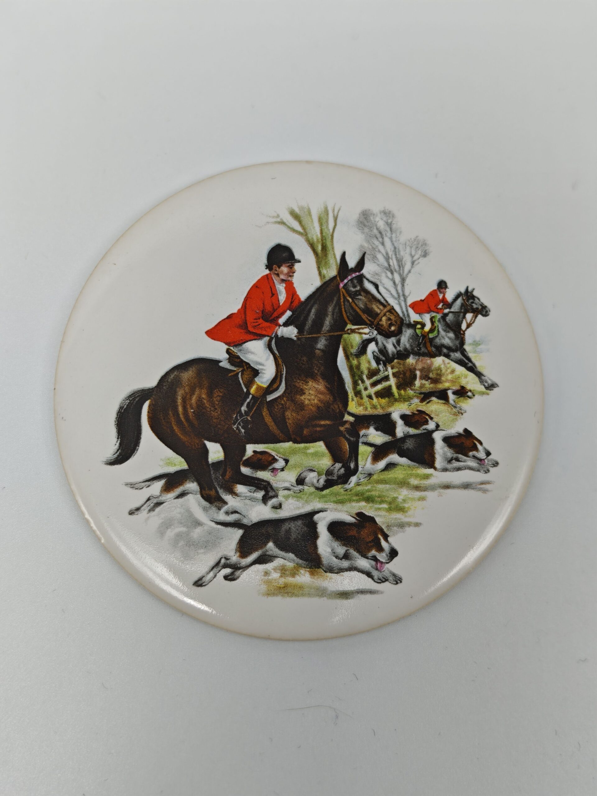 Винтажная подставка под горячее/костер из фарфора. Англия. Охота. H R Jonson ltd Диаметр 9 см