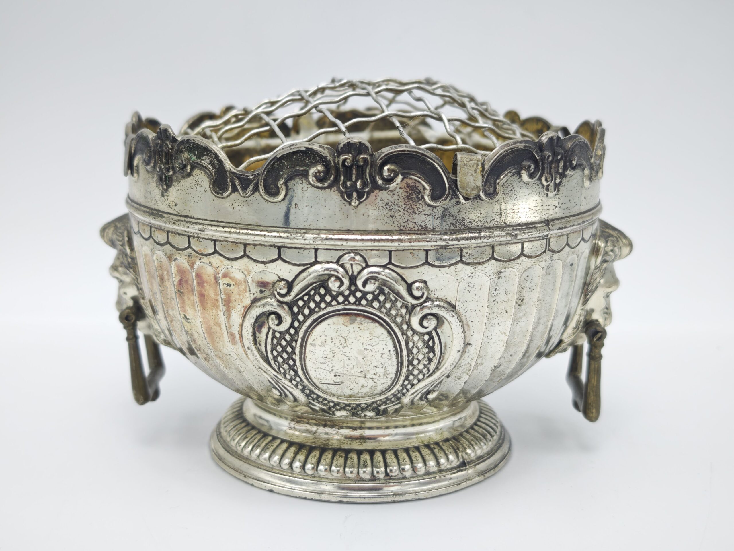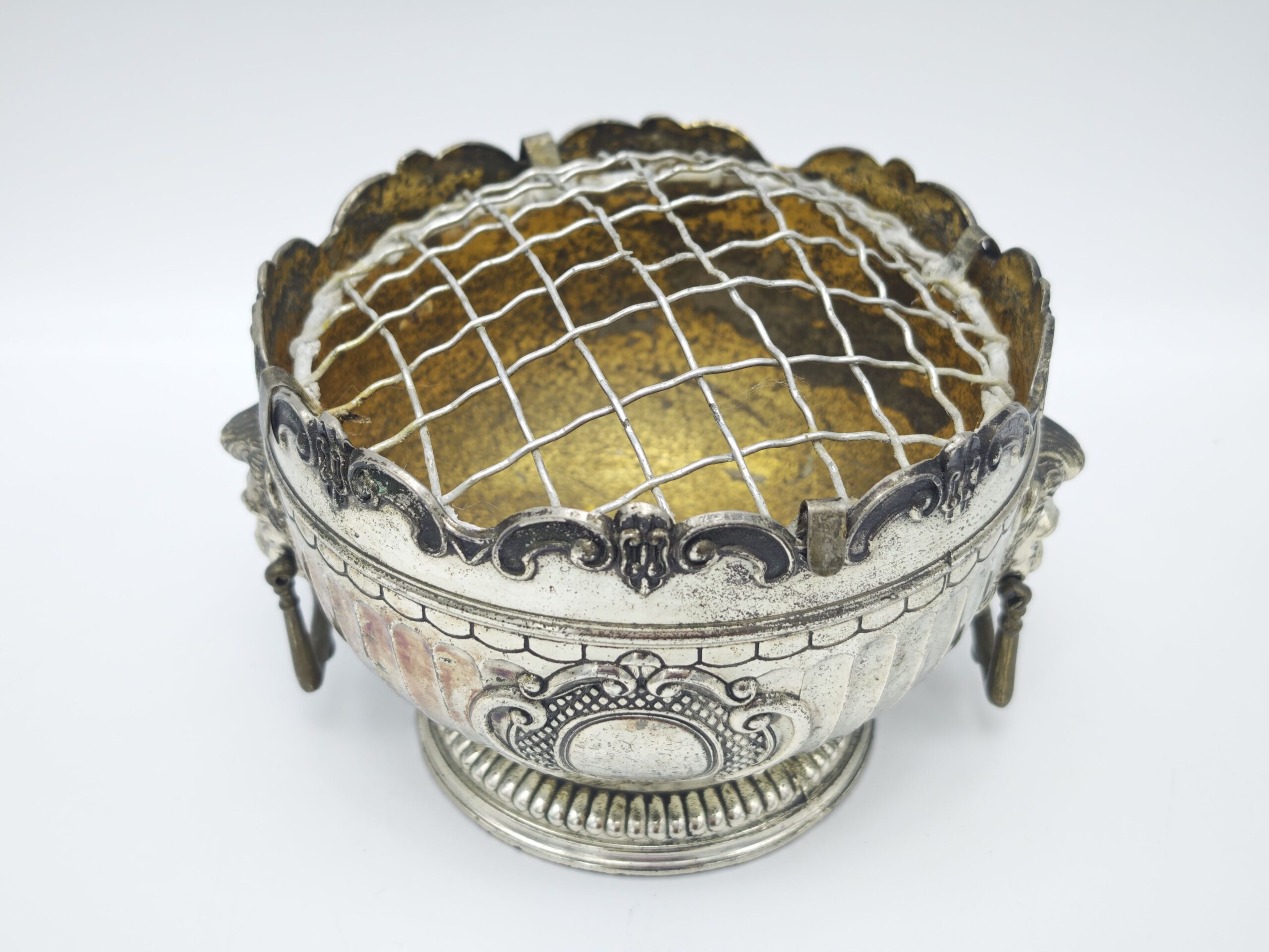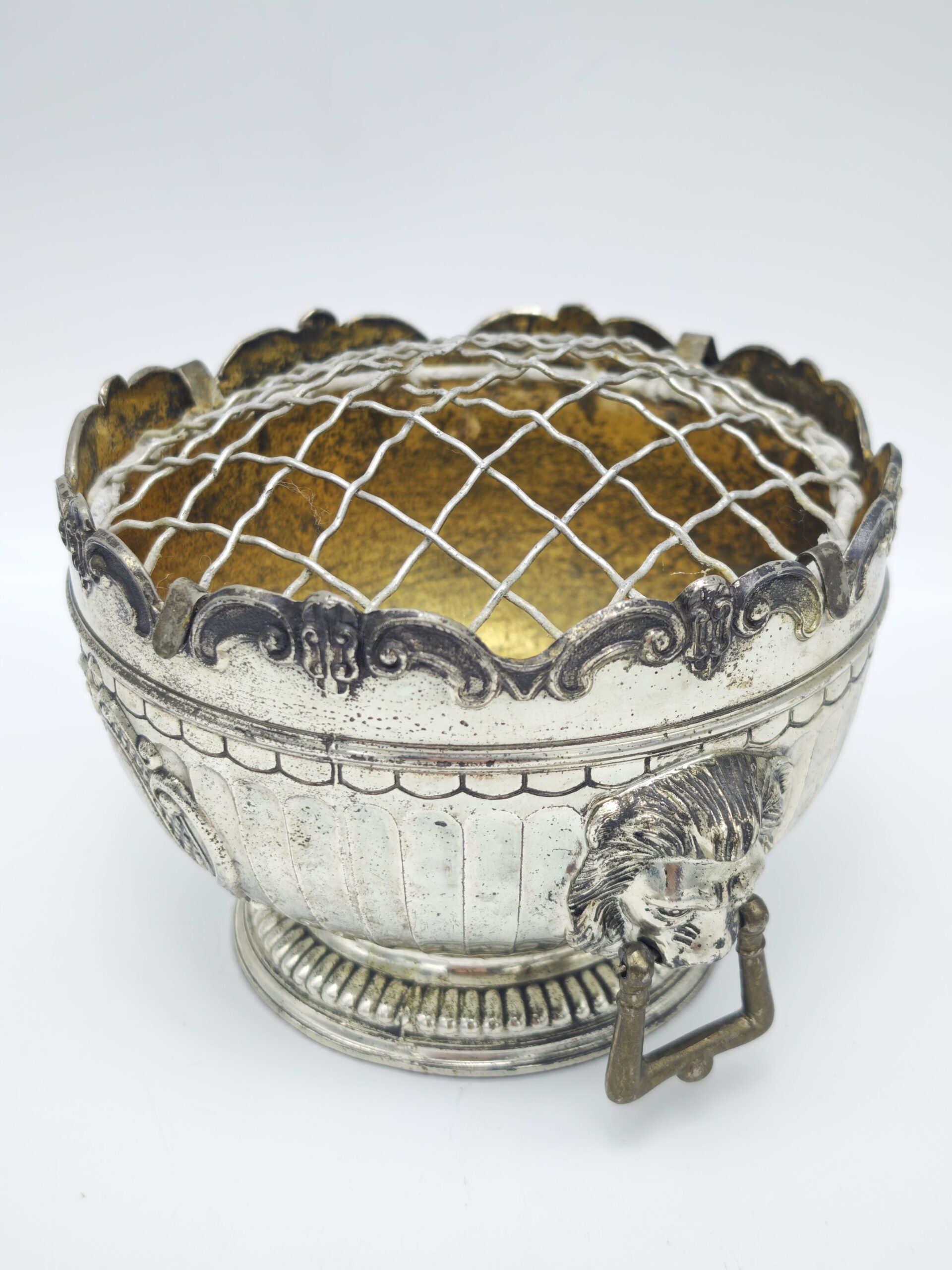 Утонченная винтажная посеребренная ваза с сеткой для цветов. Носит название Роузбоул.