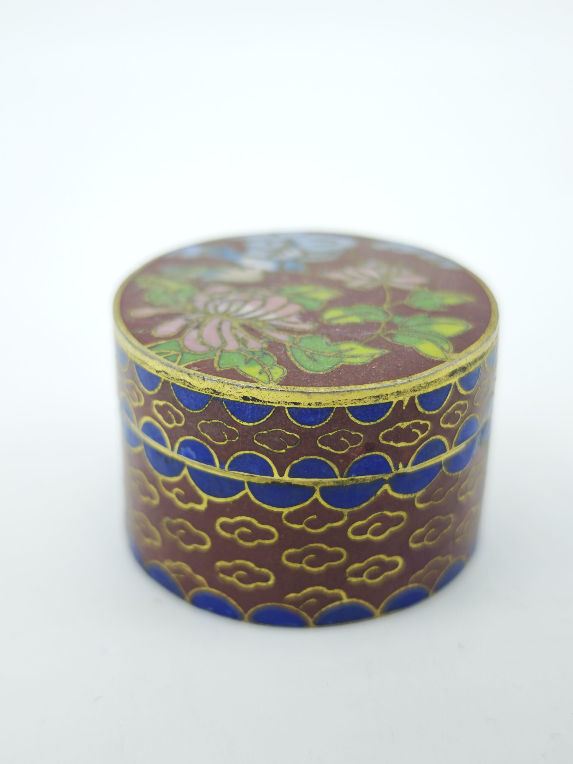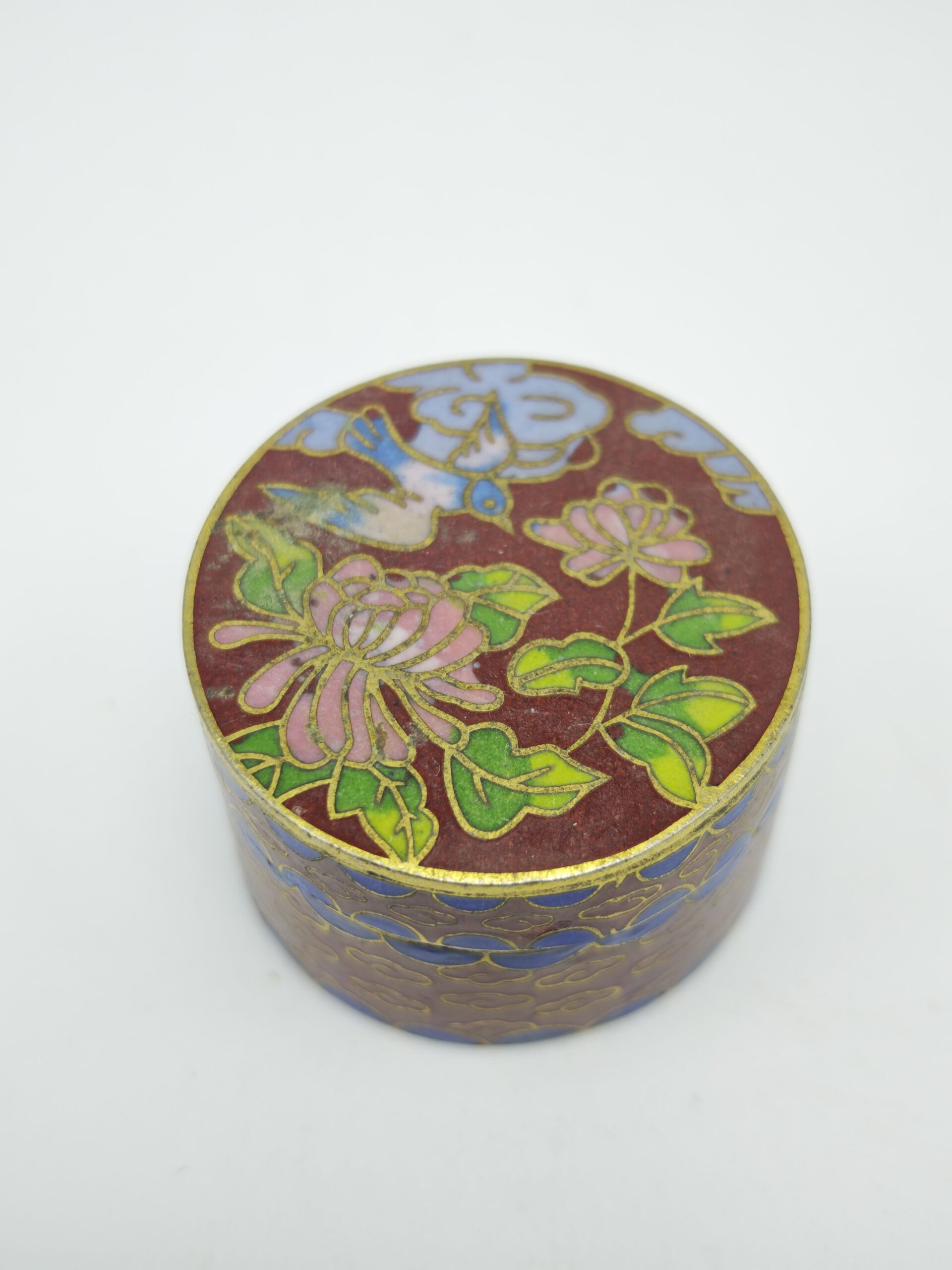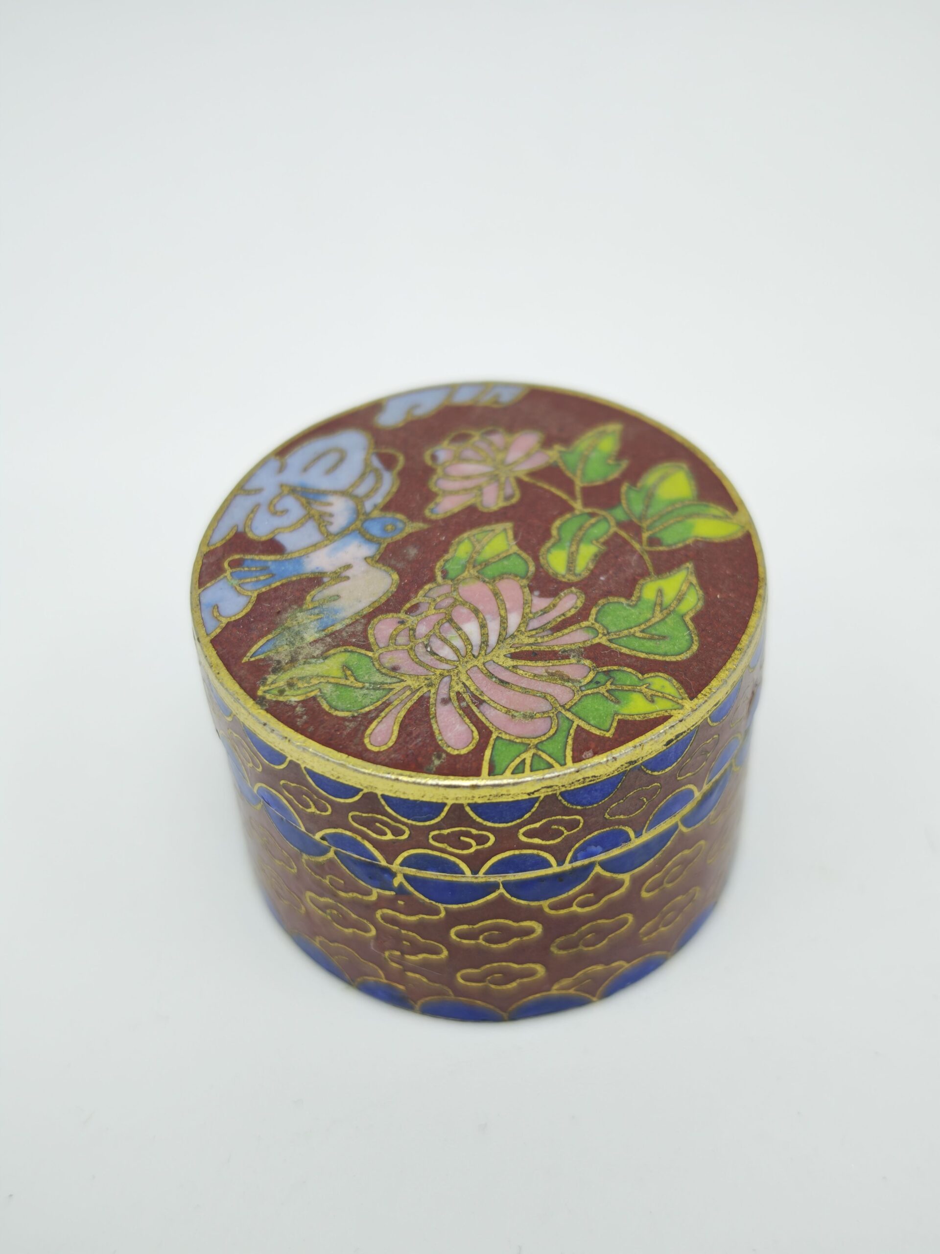 Винтажная шкатулка таблетница. Эмаль клуазоне. 1950-1970 гг. Диаметр 3.5 см. Высота 2.5 см Крышка не закручивается Состояние отличное