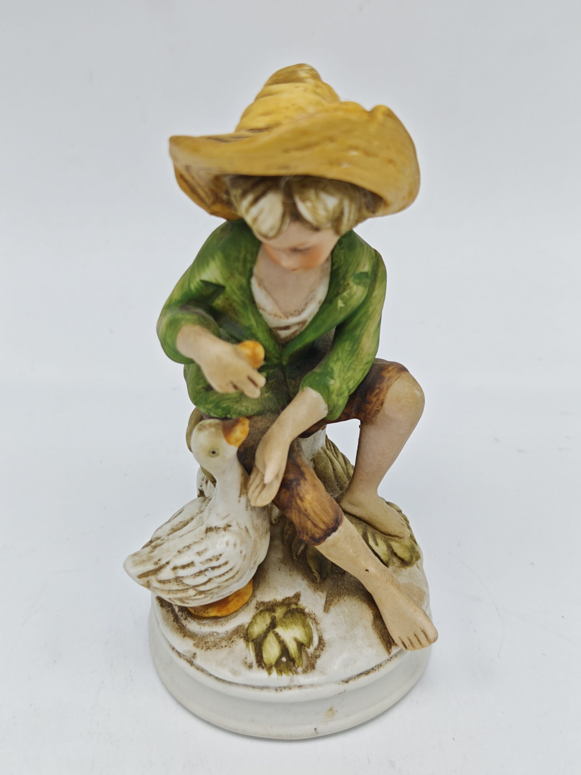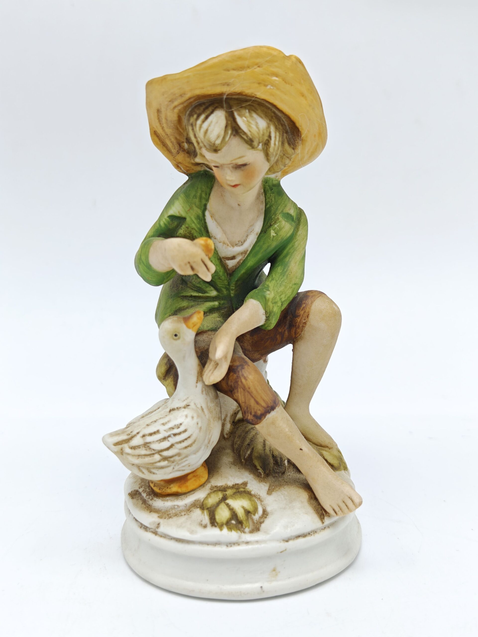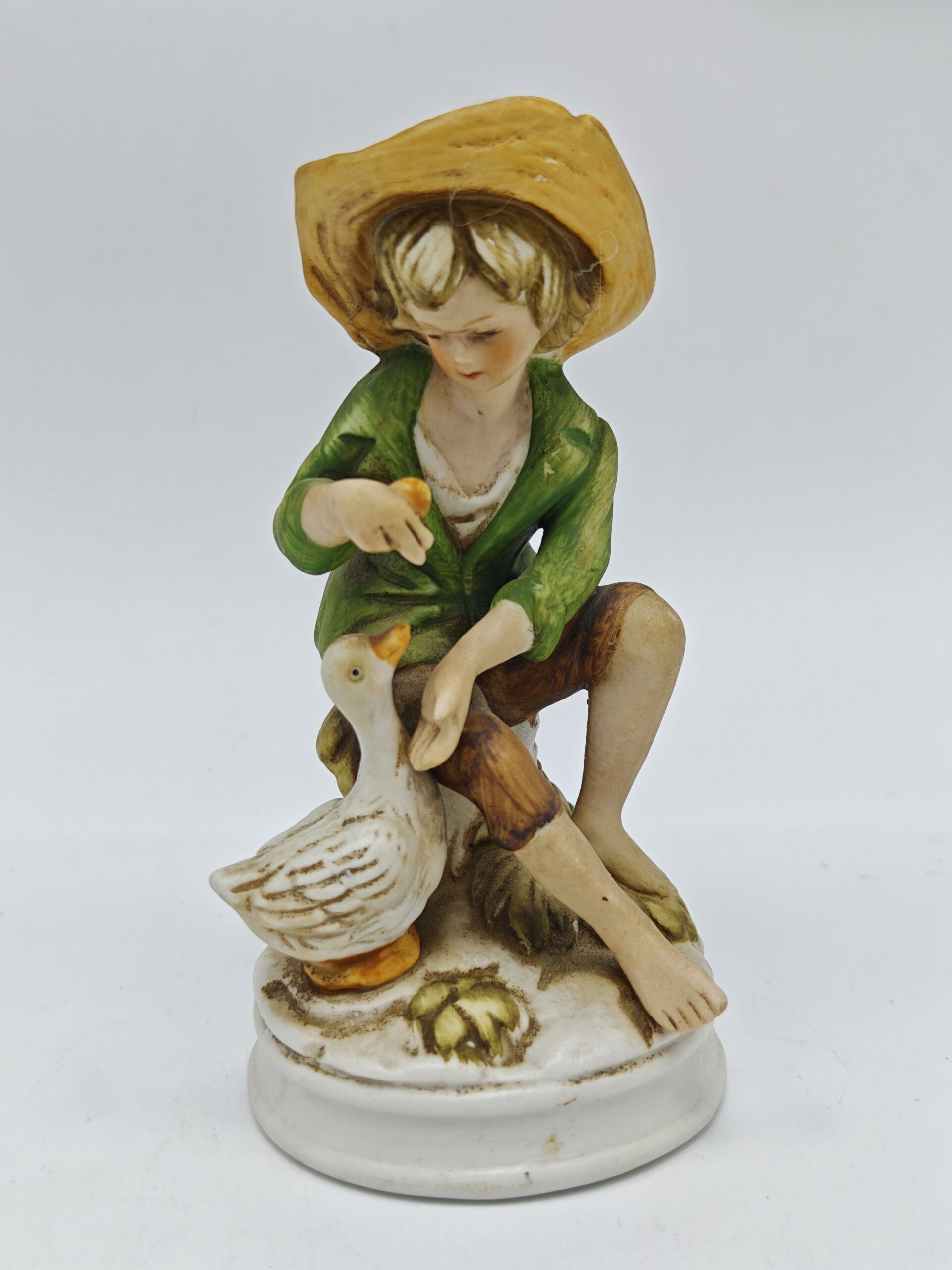 Винтажная статуэтка «Мальчик с гусем». Фарфор. Европа вторая половина 20 века Высота 13 см Сохранность очень хорошая