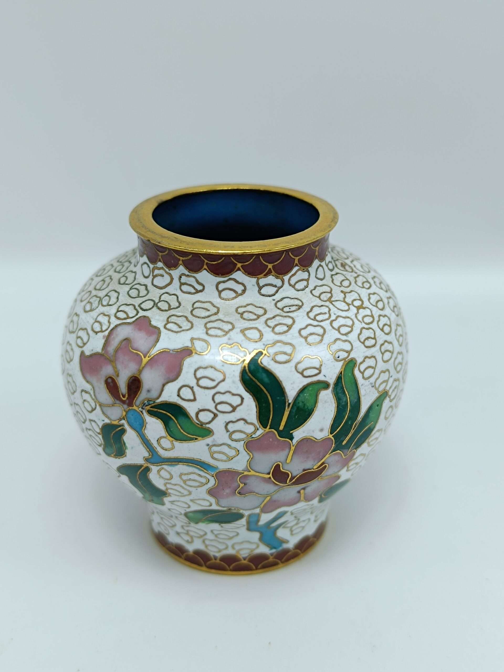 Винтажная ваза для цветов, выполненная в технике клуазоне, латунь, эмаль.