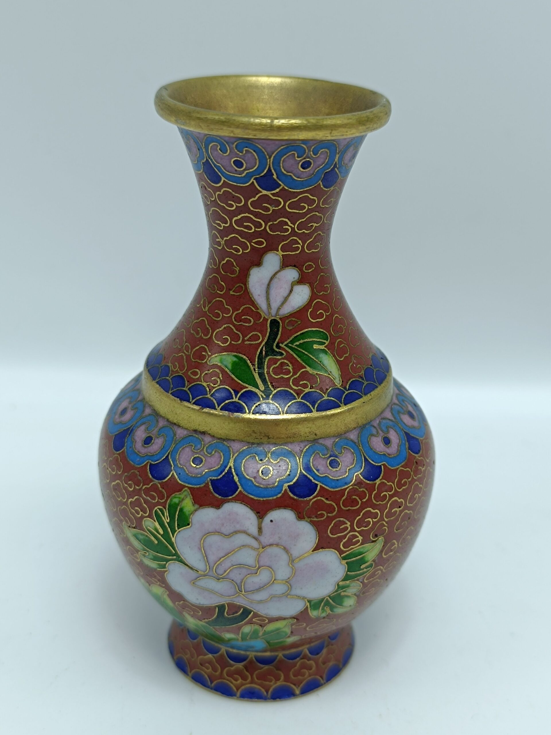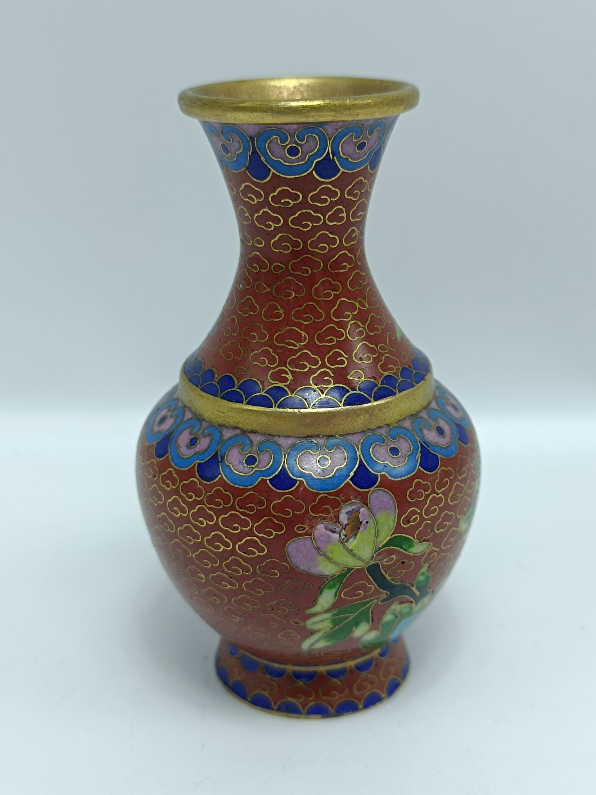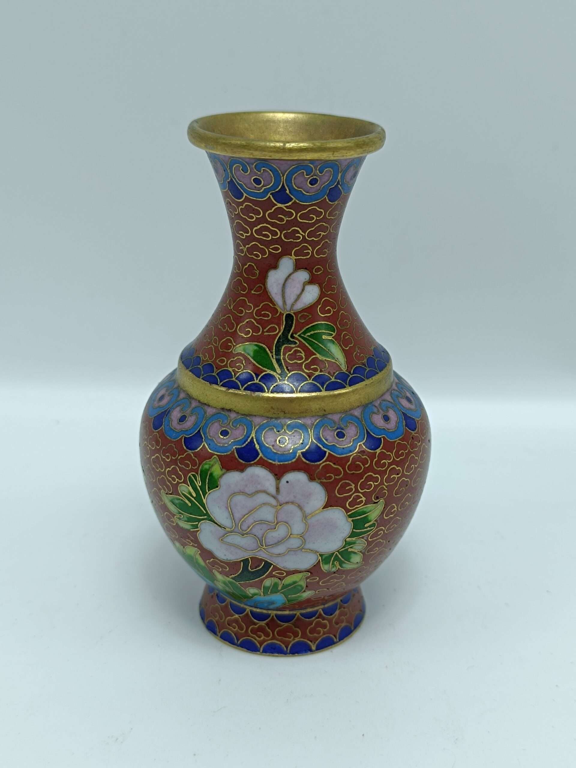 Винтажная ваза для цветов, выполненная в технике клуазоне, латунь, эмаль.