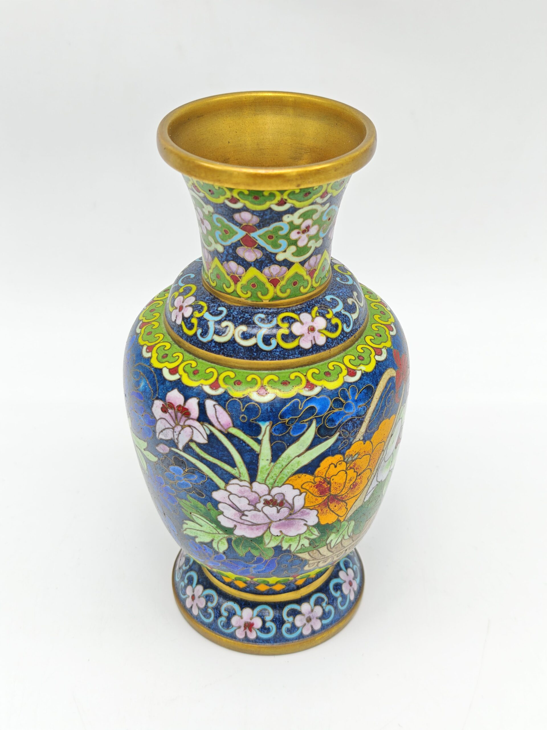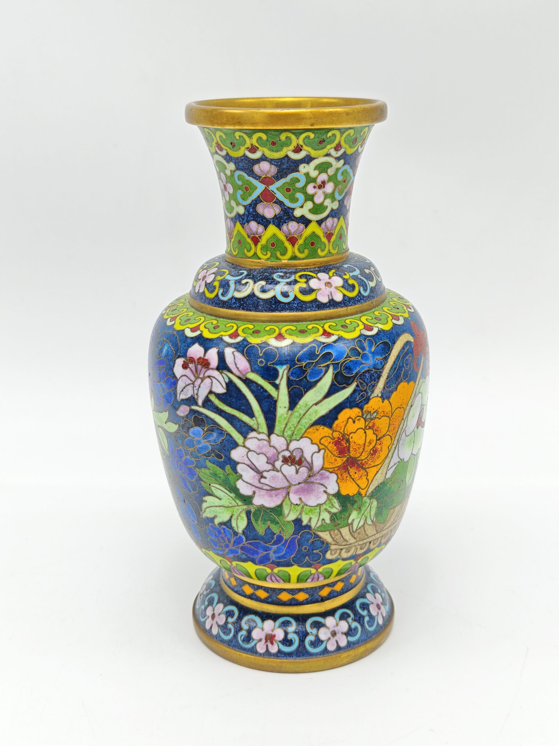 Винтажная ваза для цветов, выполненная в технике клуазоне, латунь, эмаль. Высота 18 см