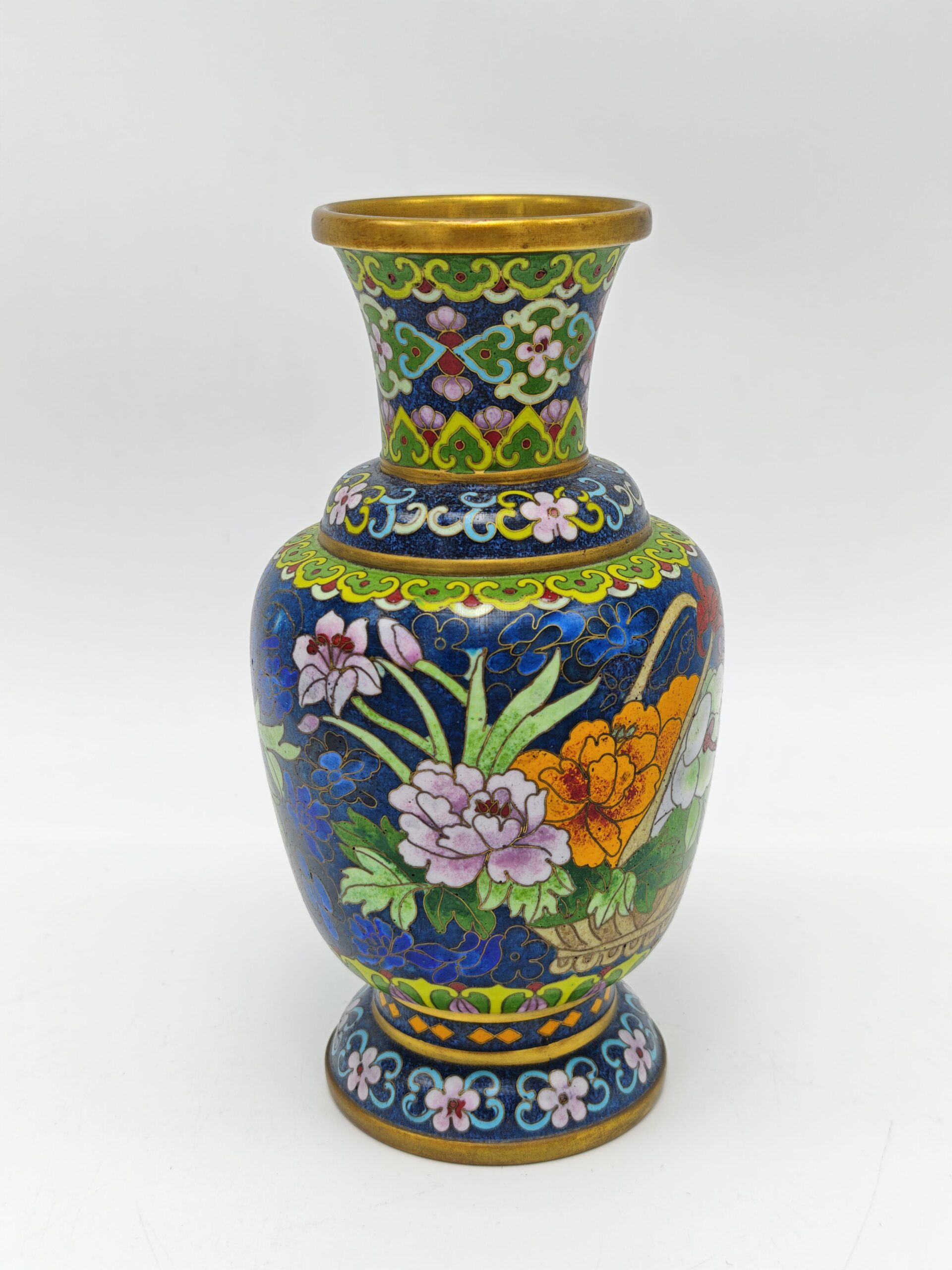 Главная // Интернет-магазин // Новинки // Винтажная ваза для цветов, выполненная в технике клуазоне, латунь, эмаль. Высота 18 см