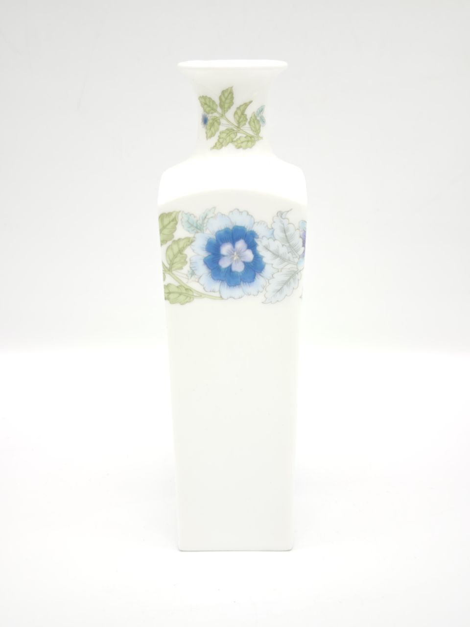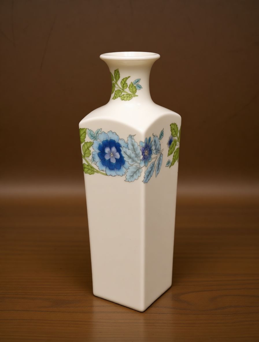 Представляем вашему вниманию редкую и изысканную винтажную вазу от легендарного бренда Wedgwood, коллекция “Clementine”. Это не просто предмет интерьера, а настоящее произведение искусства, воплощающее вековые традиции английского фарфорового мастерства. Ваза изготовлена из высококачественного костяного фарфора, что придает ей неповторимую белизну, прозрачность и звонкость, свойственные только лучшим образцам. Ее геометрическая форма — четкий квадратный силуэт с плавно переходящим в узкое горлышко — является классическим дизайном, который идеально сочетается как с классическими, так и с современными интерьерами.Декор вазы выполнен вручную с невероятной точностью и вниманием к деталям. На ее поверхности раскинулся элегантный цветочный орнамент, где яркие синие и лавандовые цветы, возможно, гортензии или анемоны, гармонично переплетаются с нежными зелеными листьями и стеблями. Каждый элемент рисунка проработан до мельчайших штрихов, создавая ощущение живой природы, застывшей на белоснежной поверхности фарфора. Цветовая палитра — спокойная и благородная, с акцентом на холодных тонах — идеально подходит для создания атмосферы уюта и элегантности в любом помещении.На дне вазы вы найдете фирменный клеймо Wedgwood с изображением амфоры, а также надпись “Bone China”, “MADE IN ENGLAND” и название коллекции “CLEMENTINE”, что подтверждает ее подлинность и происхождение. Это не просто маркировка — это история, свидетельство того, что ваша ваза была создана в Англии, в одном из самых знаменитых фарфоровых заводов мира, чья репутация строилась на веках безупречного качества и изысканного вкуса.Такая ваза станет центральным элементом любого интерьера — будь то гостиная, спальня или даже офис. Она прекрасно дополнит собой коллекцию антиквариата или станет роскошным подарком для ценителя изящных вещей. Ваза не требует особого ухода, но ее стоит беречь от ударов и резких перепадов температур, чтобы сохранить первозданную красоту на долгие годы. Приобретая эту вазу, вы не просто покупаете предмет декора — вы становитесь обладателем части истории, кусочка английской культуры и искусства, которое будет радовать глаз и восхищать гостей на протяжении многих поколений.