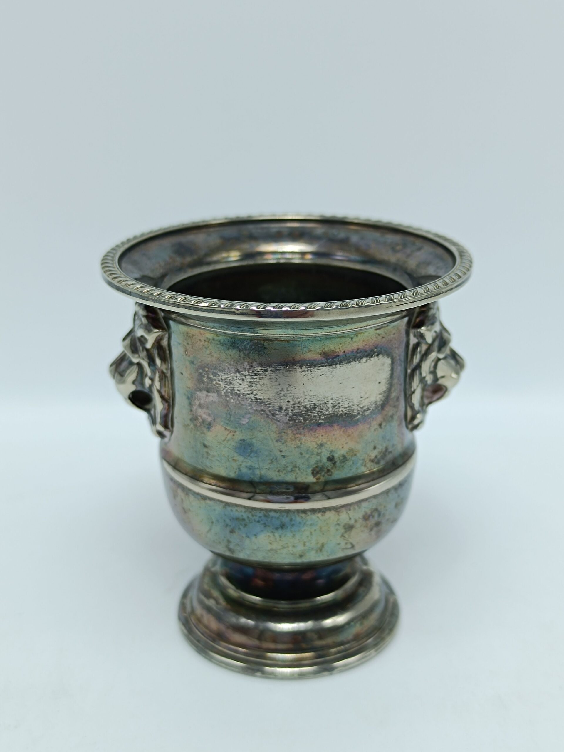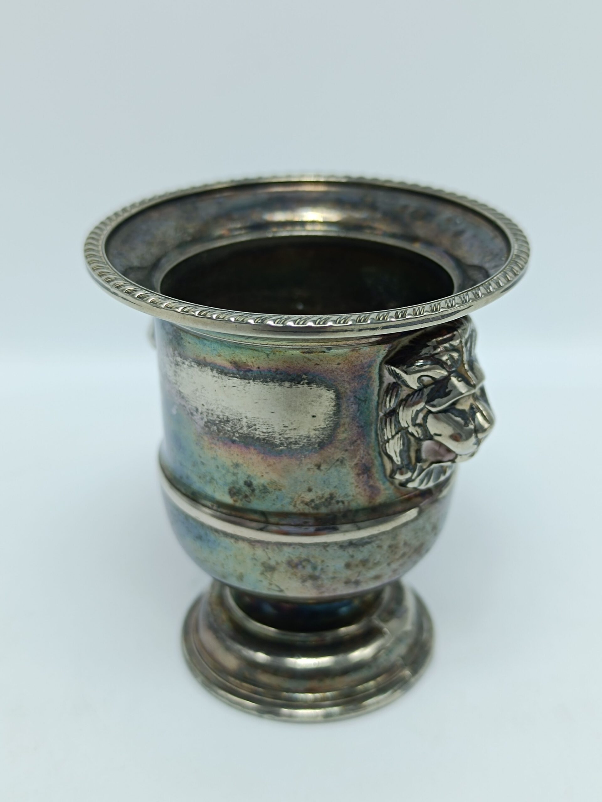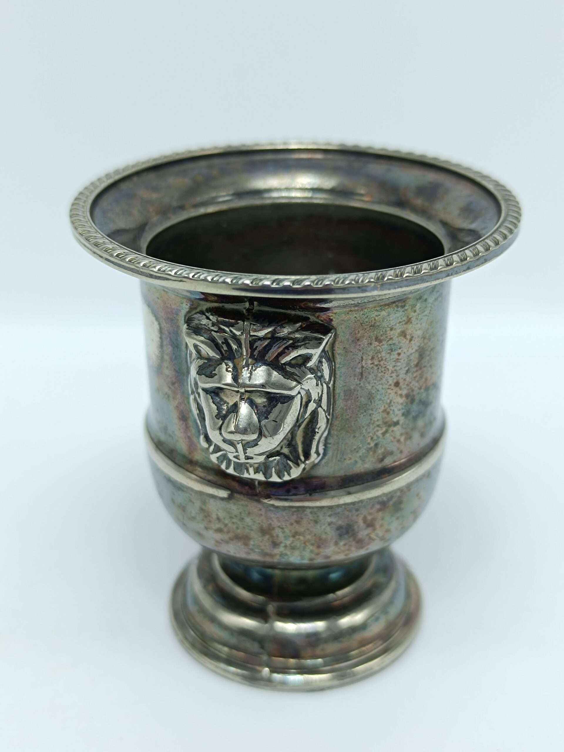 Винтажная вазочка для зубочисток с львиными головами, серебрение. Viners, Англия 1970 года